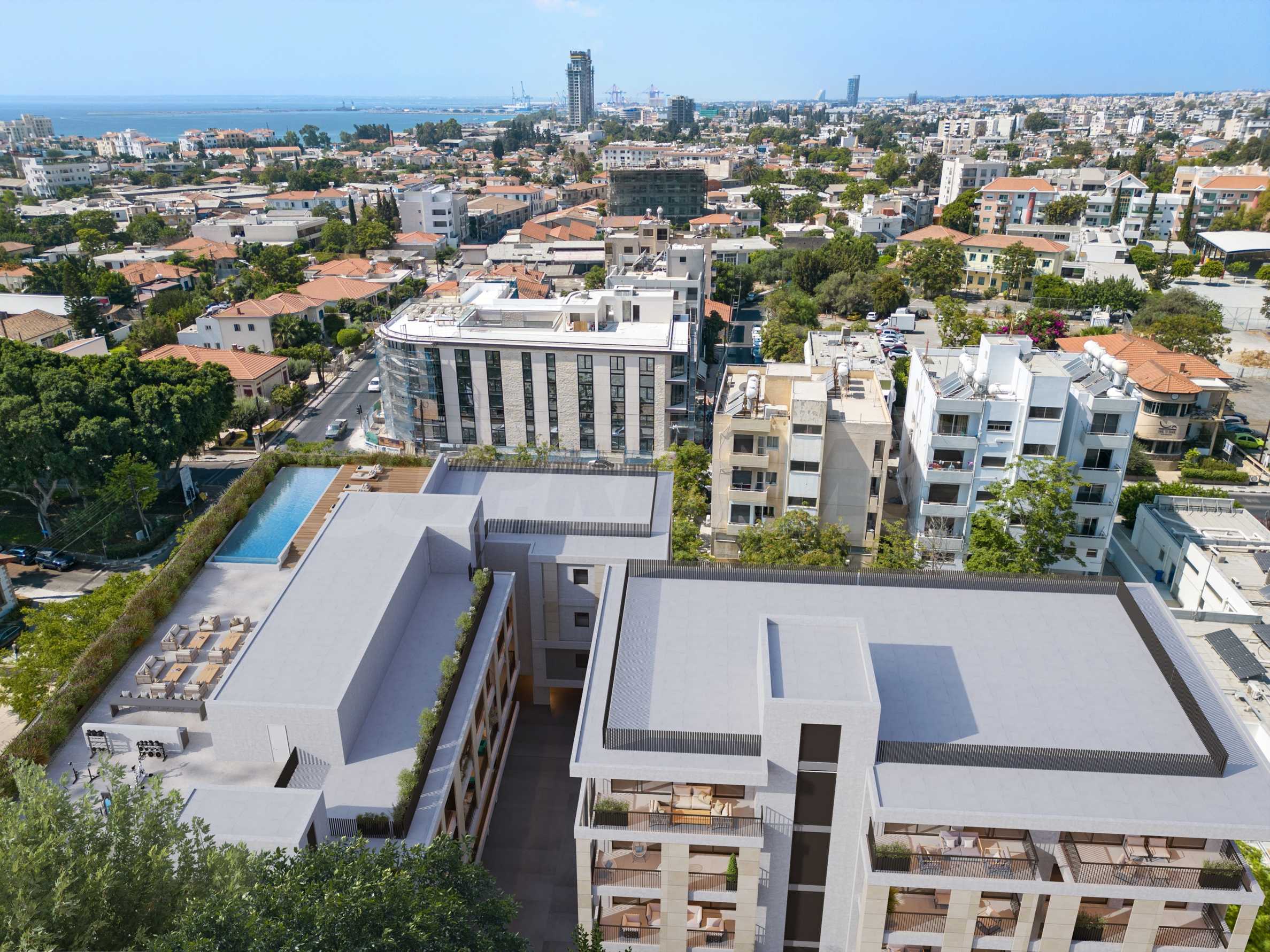 Introducing a two-bedroom apartment in Centro Limassol – a new boutique residential project located in the very center of Limassol – between the old town and the sea. Just 1 km from the beach and in close proximity to Limassol Marina, The Oval and Trilogy Limassol Seafront, the complex offers an exceptional combination of urban energy, style and convenience.