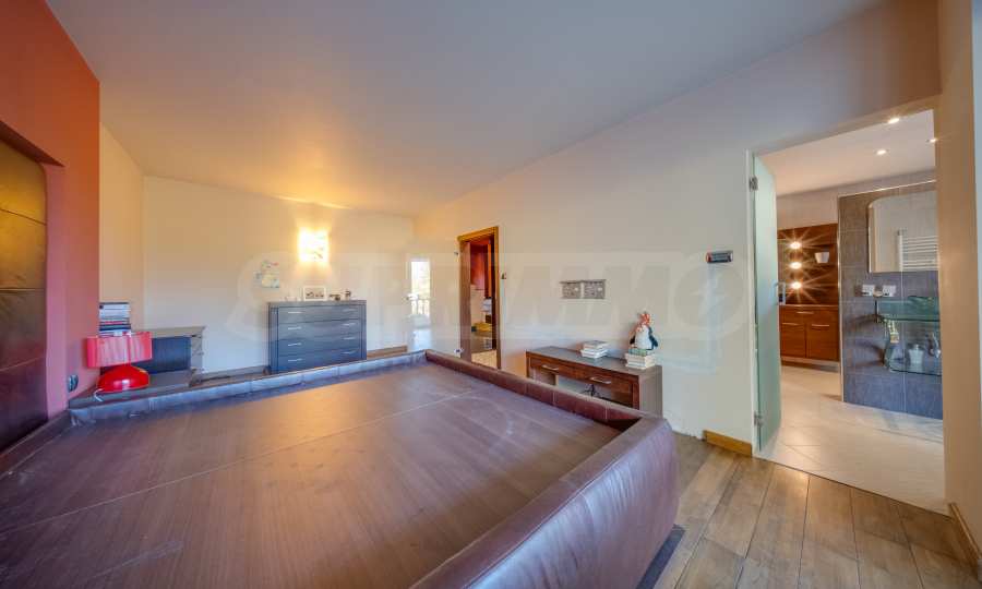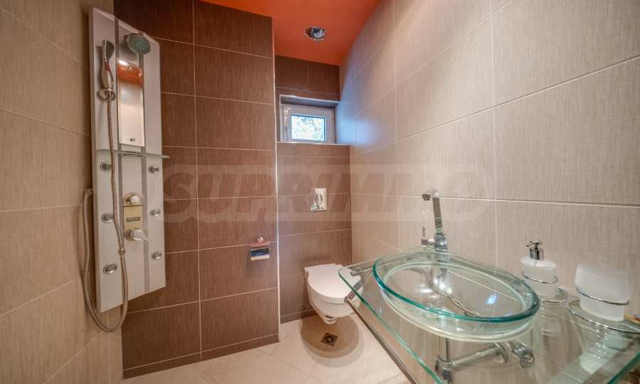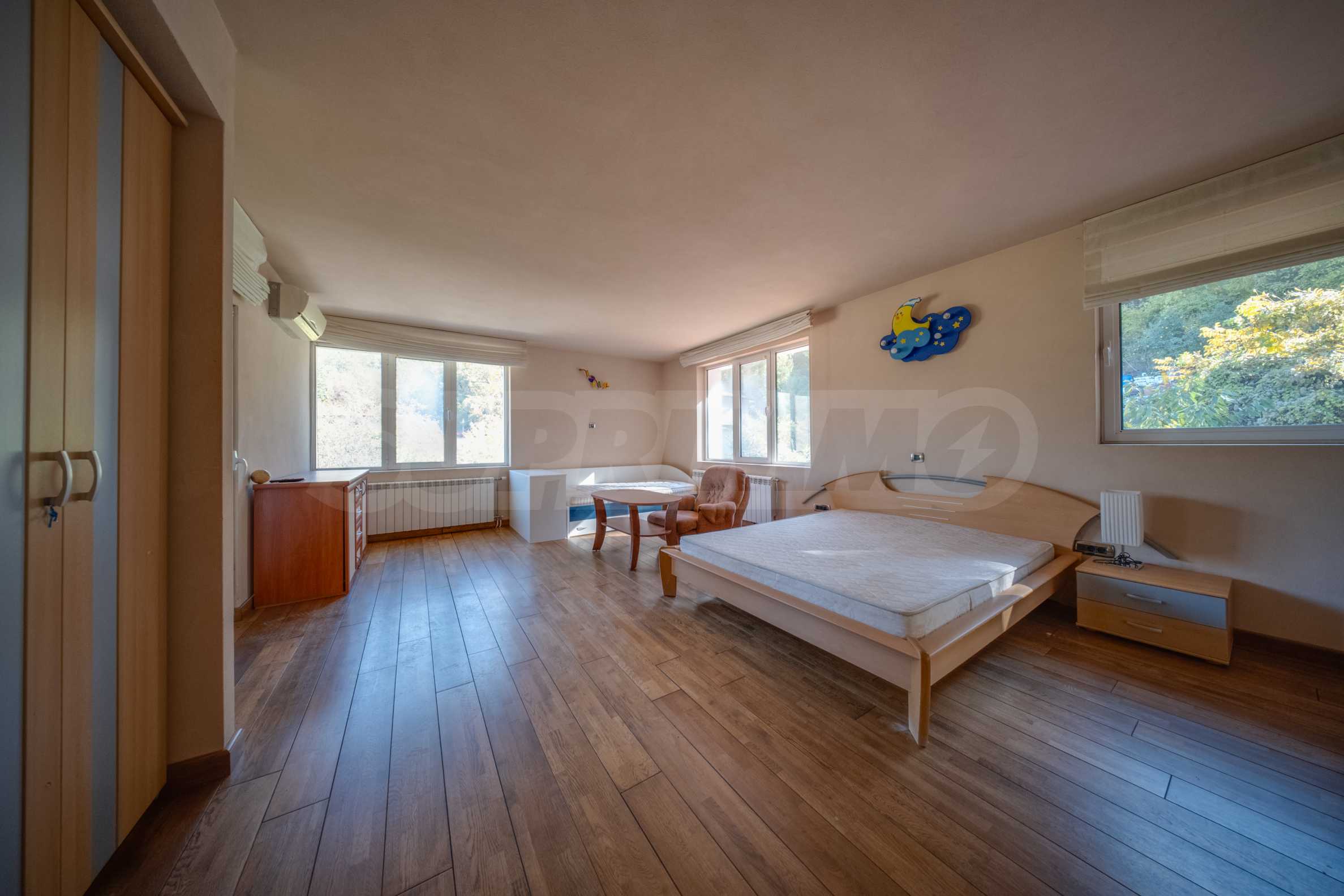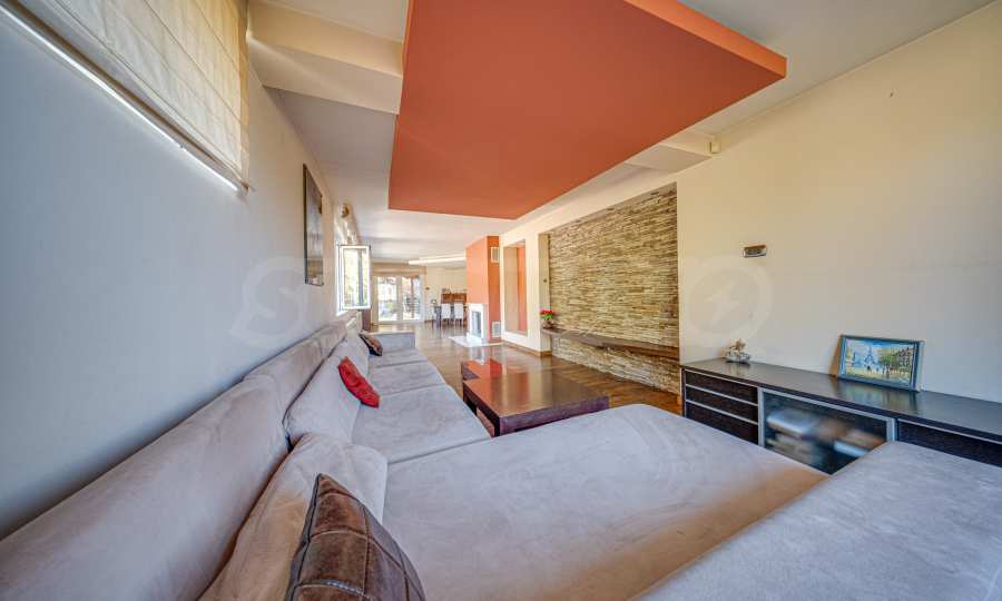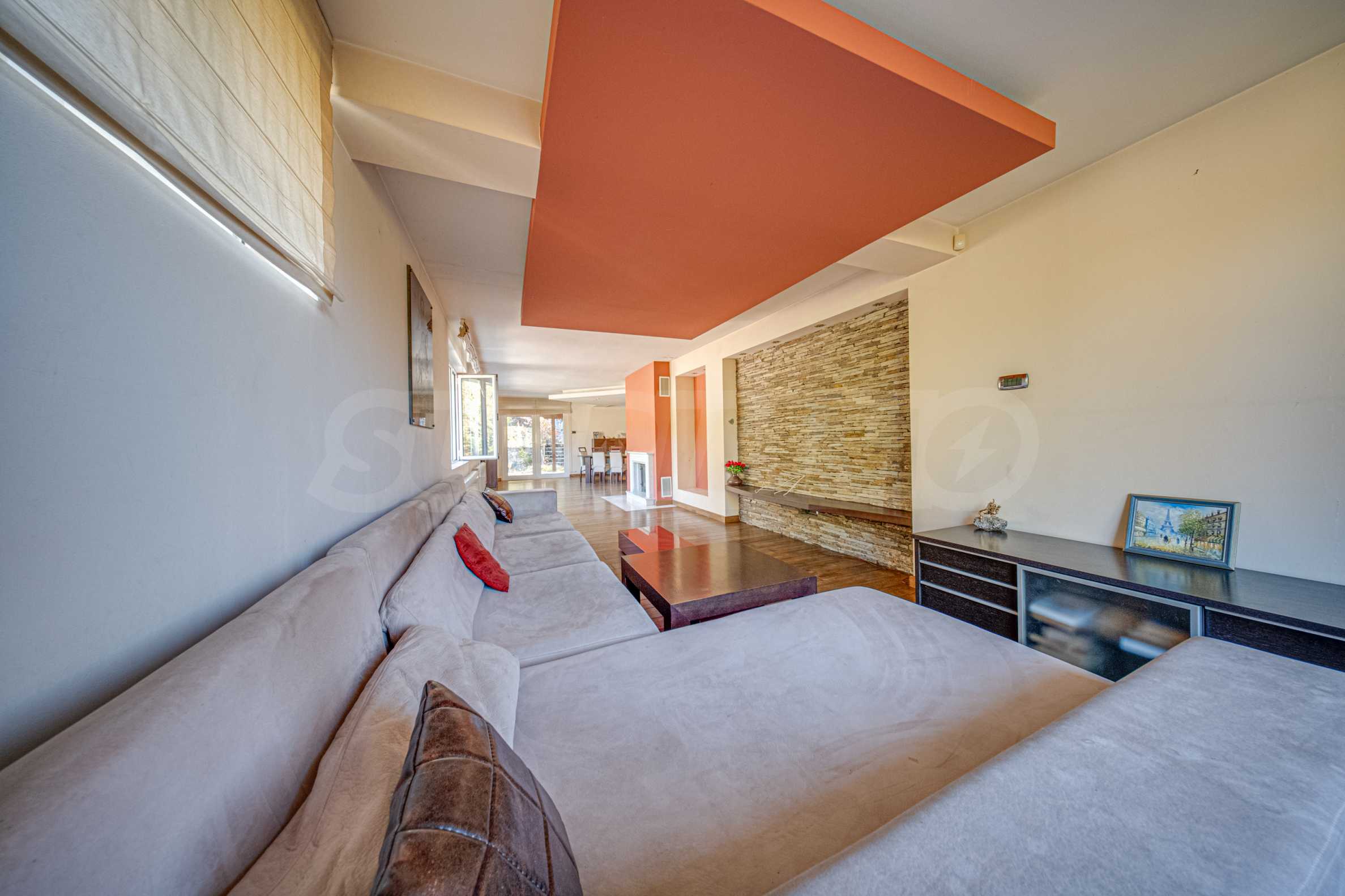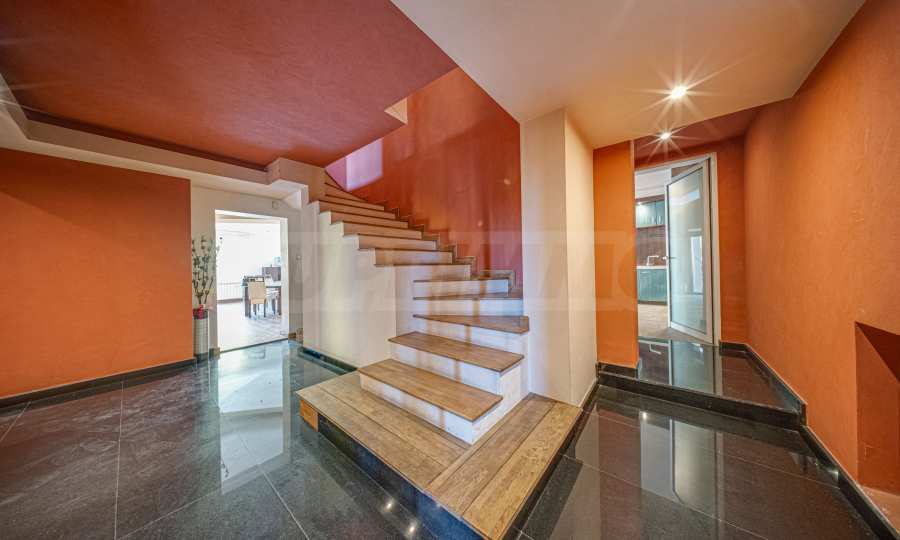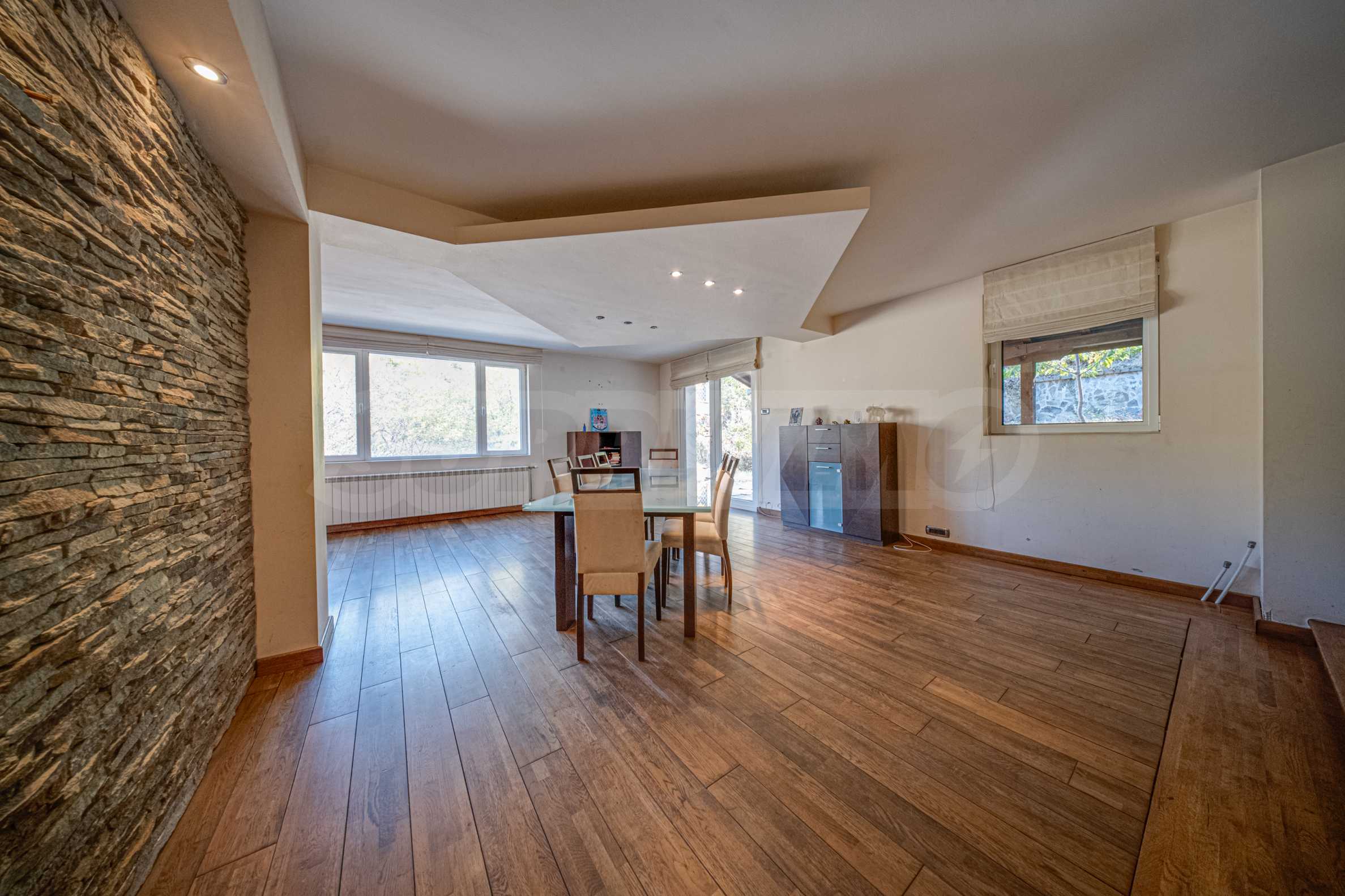 The house has a total area of 490 sq m and has a large yard of 1 decare, terraced on four levels, with lawns, century-old trees and panoramic views of Vitosha Mountain. The property has a spacious outdoor recreation area with a wooden shed, barbecue, children's playground and decorative waterfall - for a true feeling of privacy and comfort.