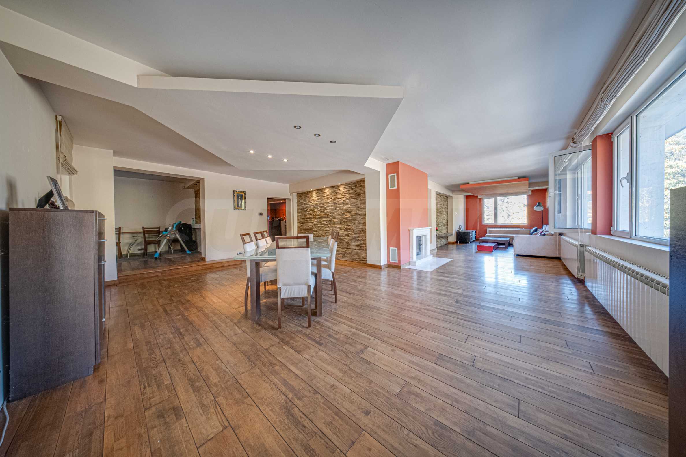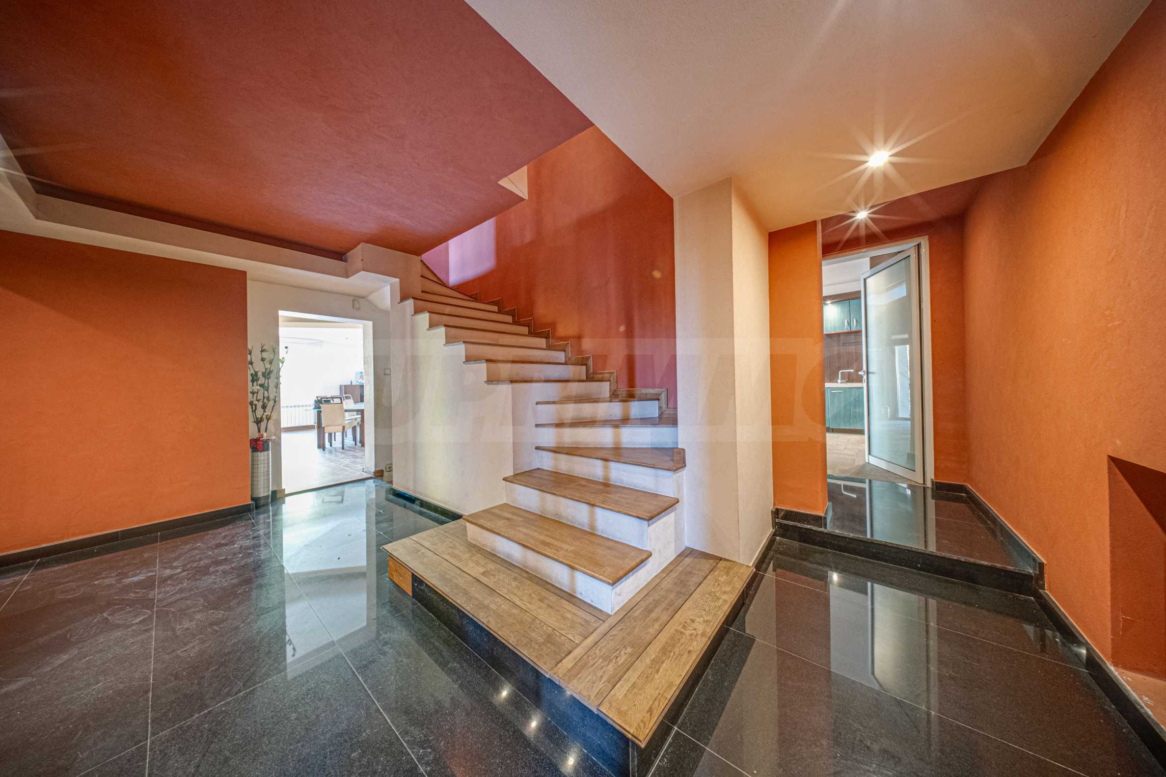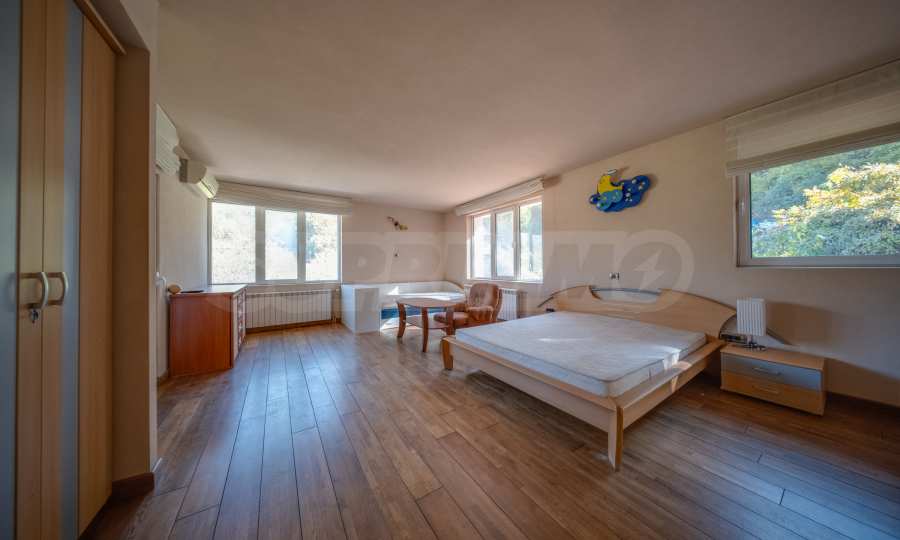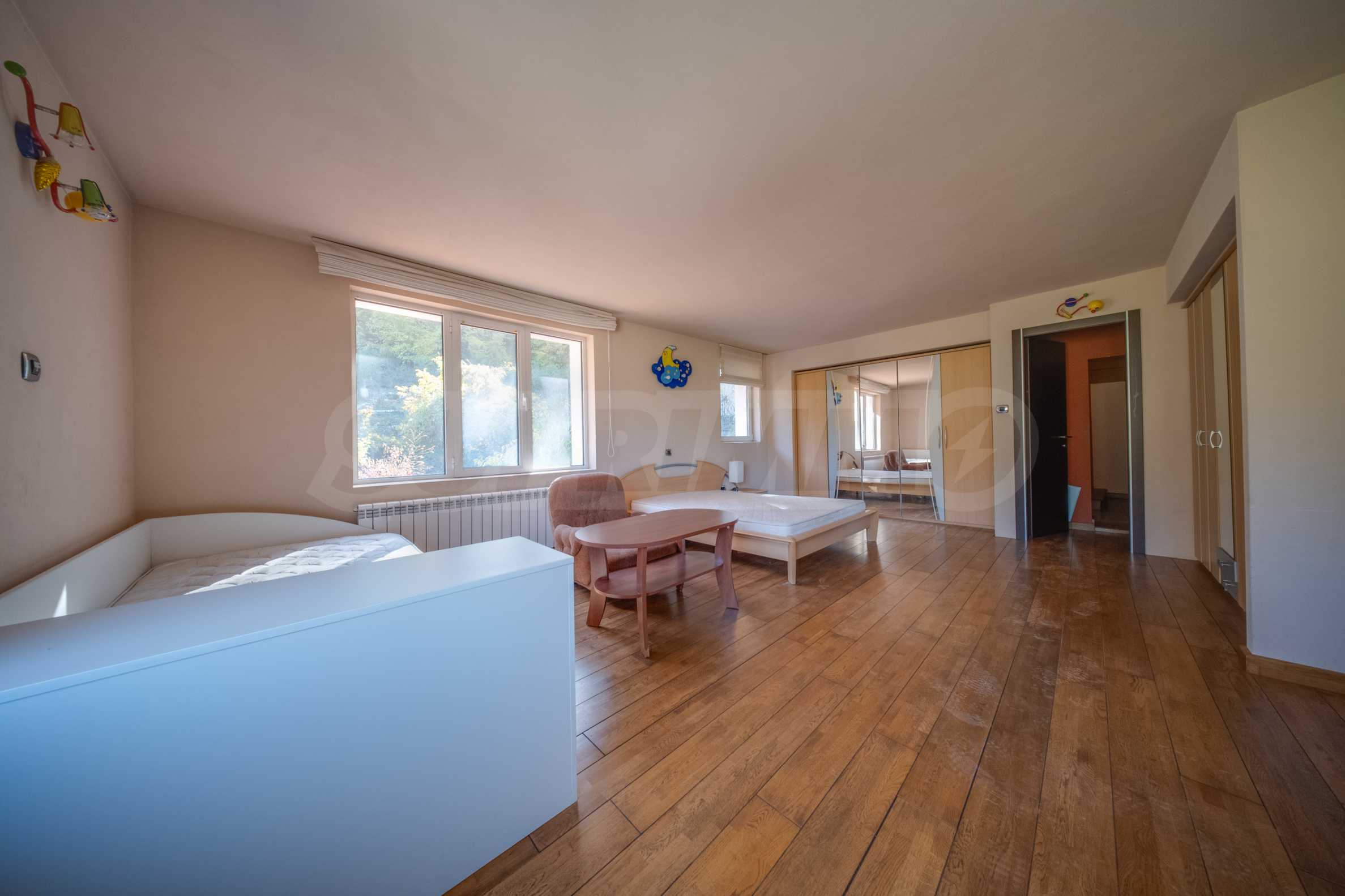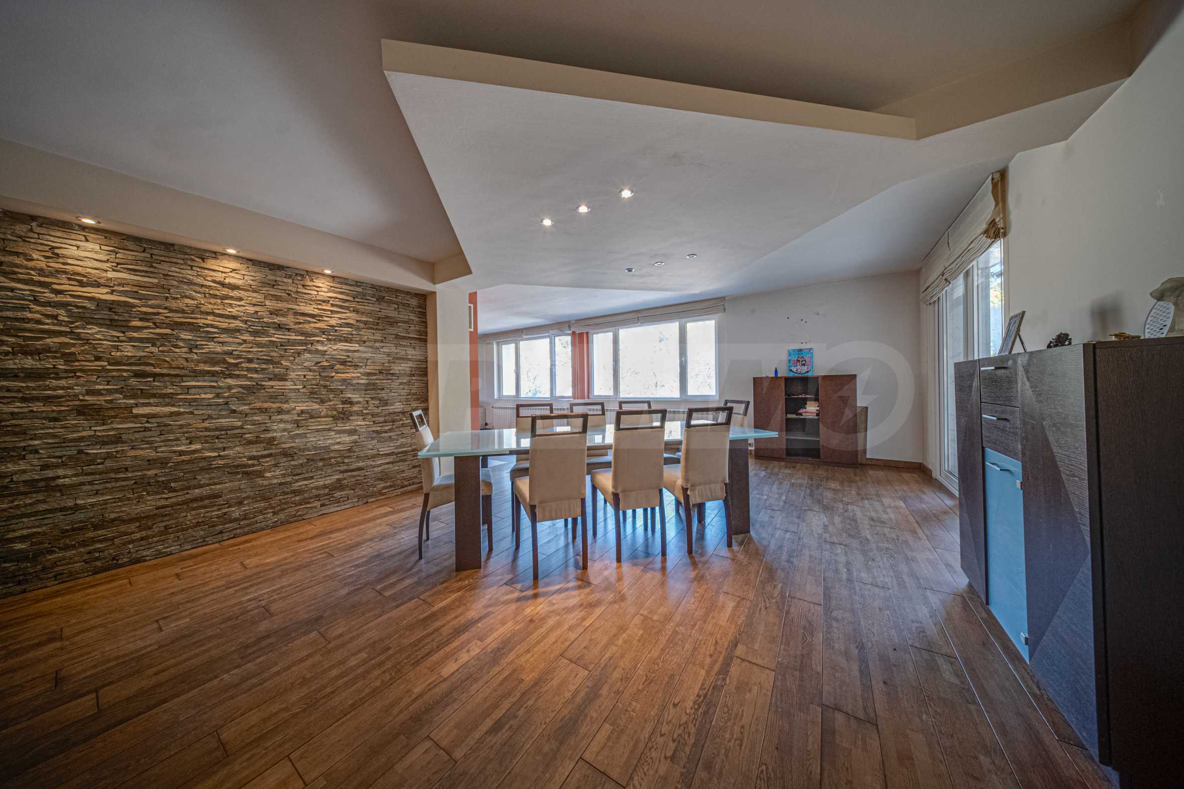 The house has a total area of 490 sq m and has a large yard of 1 decare, terraced on four levels, with lawns, century-old trees and panoramic views of Vitosha Mountain. The property has a spacious outdoor recreation area with a wooden shed, barbecue, children's playground and decorative waterfall - for a true feeling of privacy and comfort.