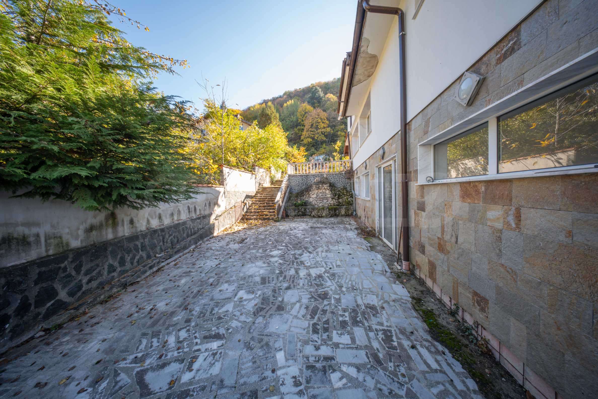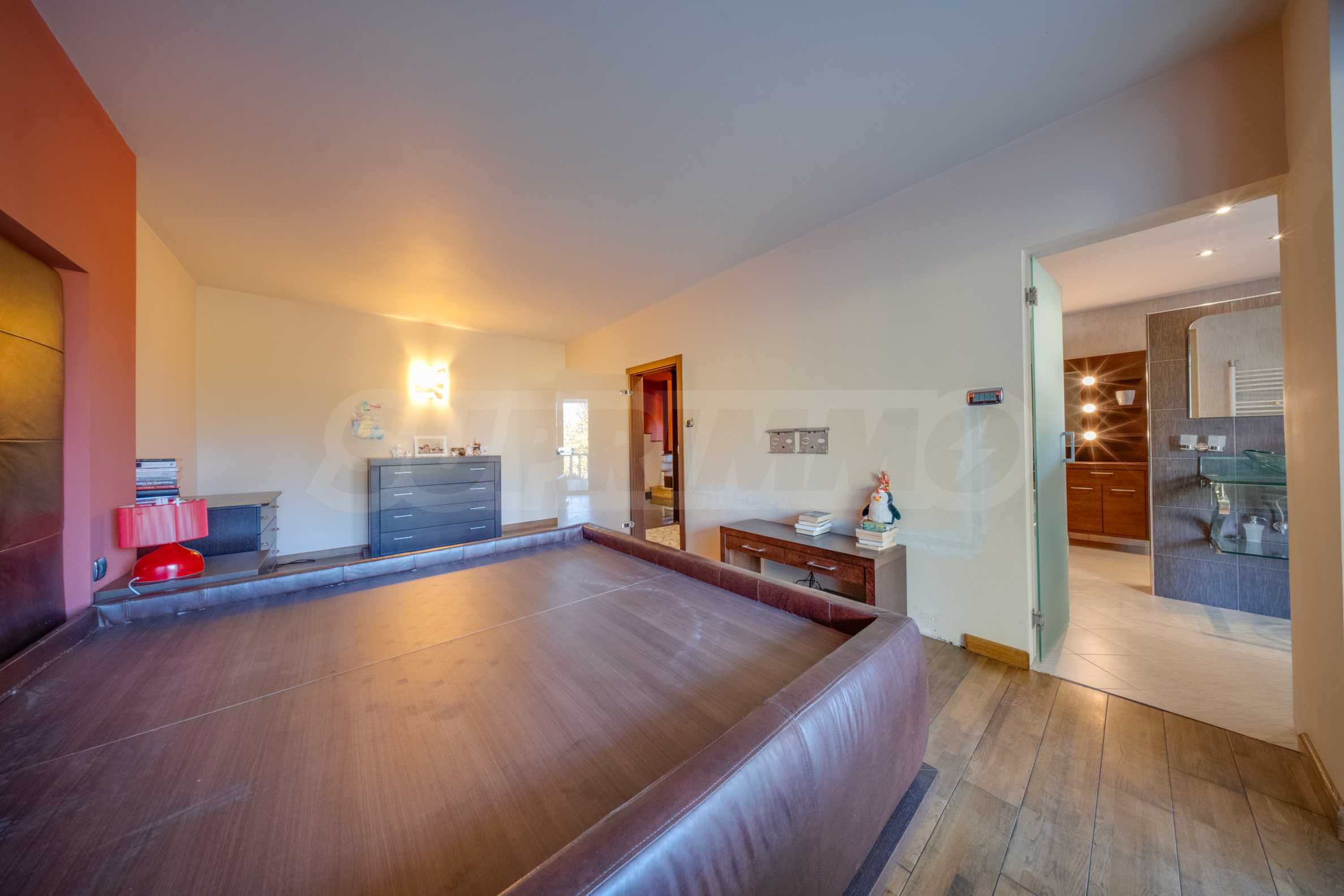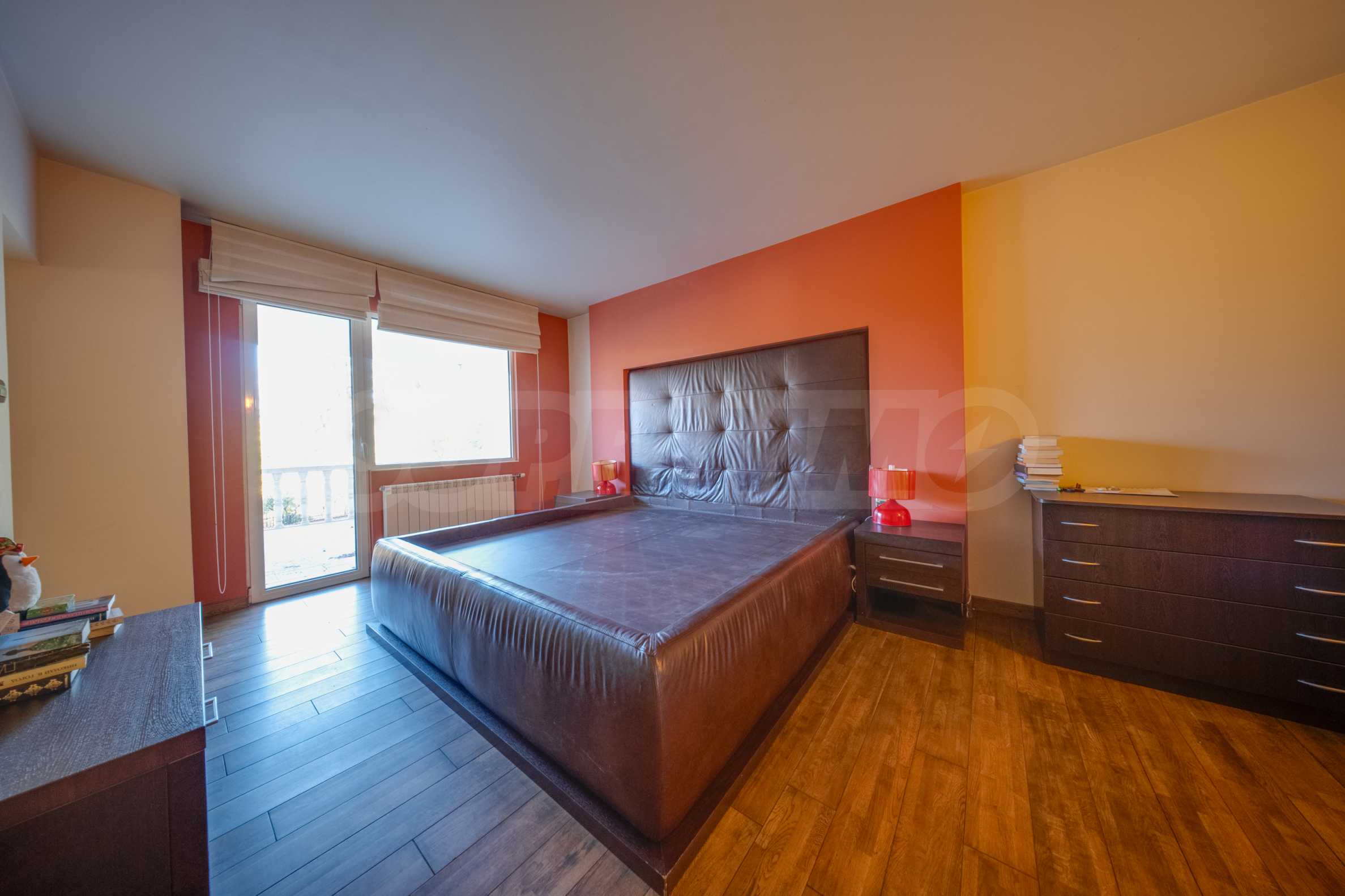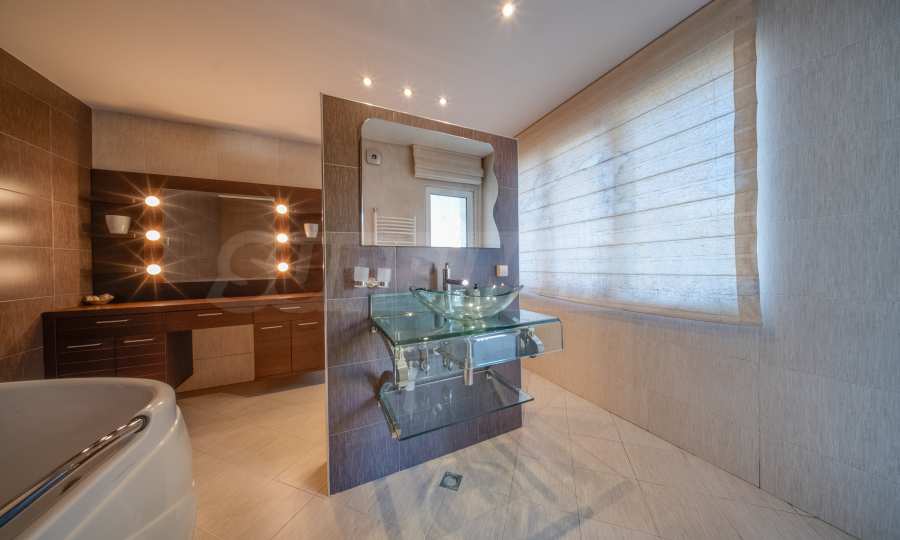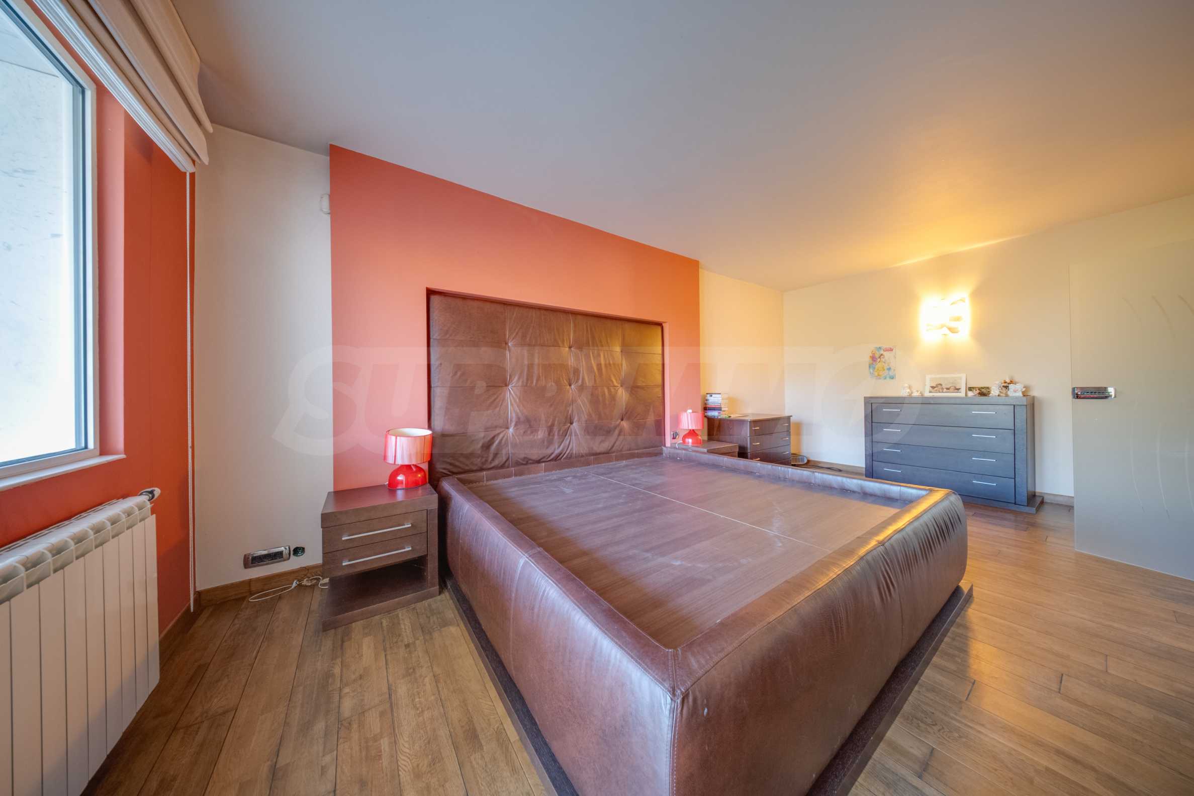 The house has a total area of 490 sq m and has a large yard of 1 decare, terraced on four levels, with lawns, century-old trees and panoramic views of Vitosha Mountain. The property has a spacious outdoor recreation area with a wooden shed, barbecue, children's playground and decorative waterfall - for a true feeling of privacy and comfort.