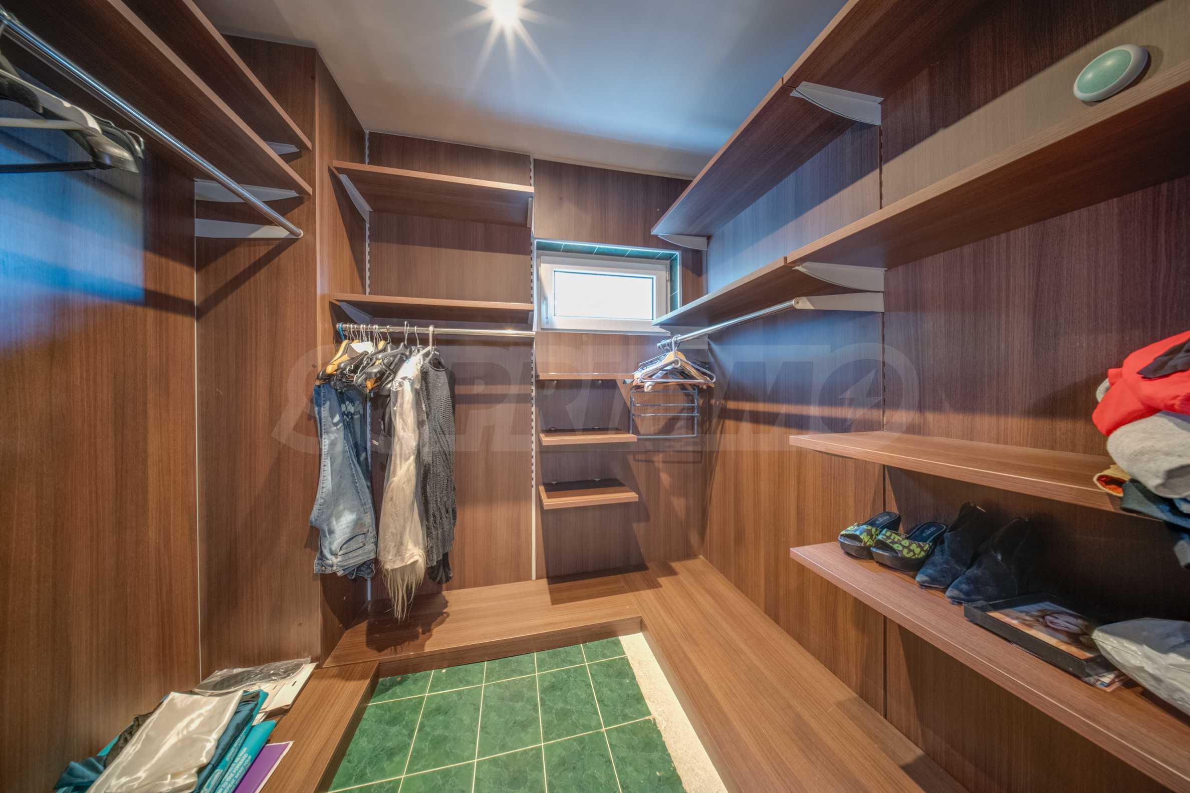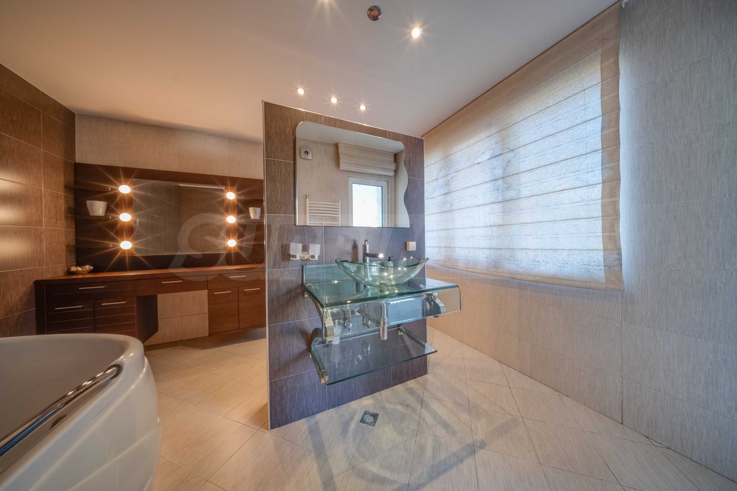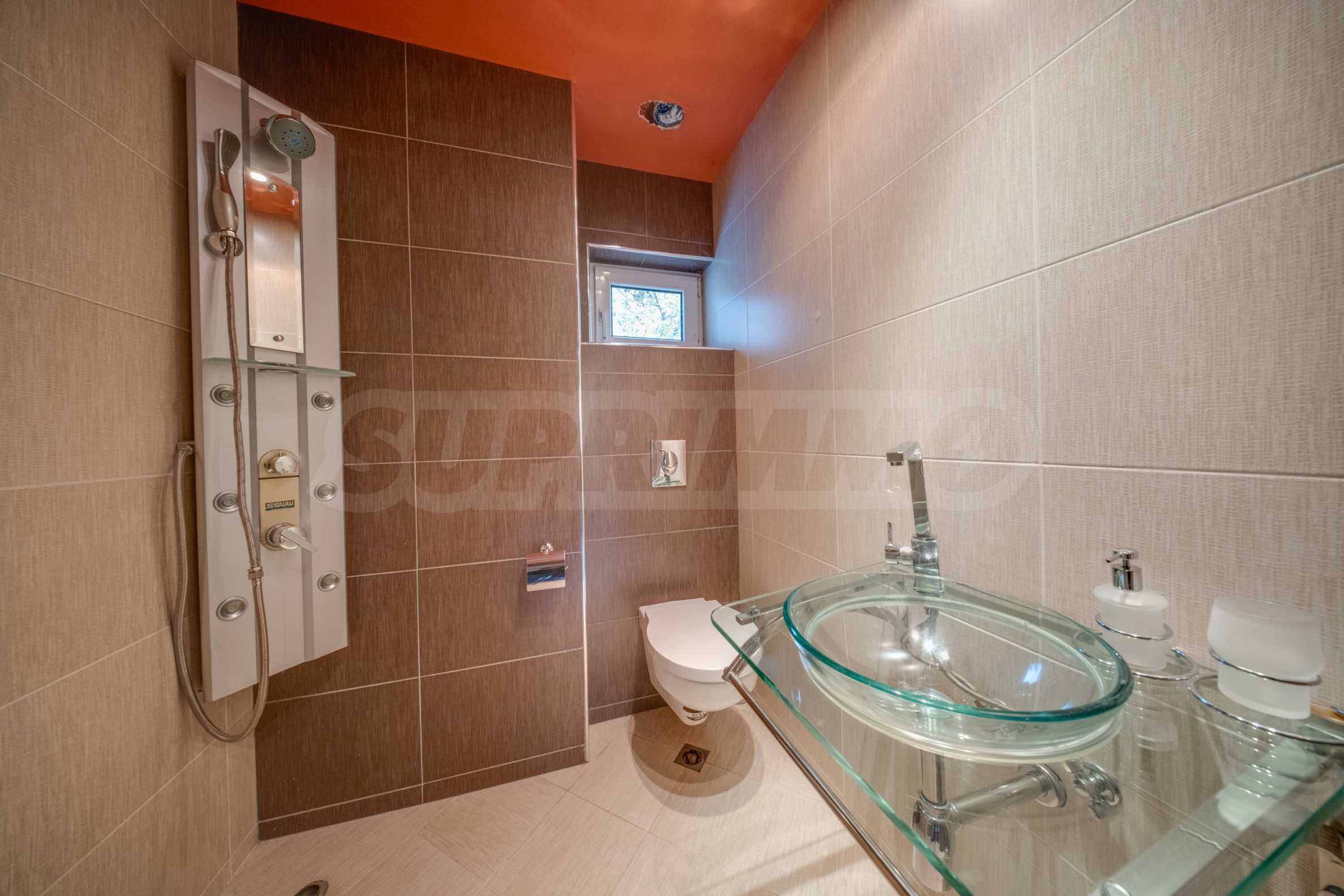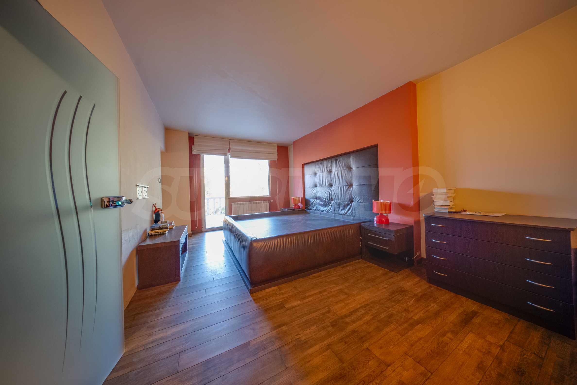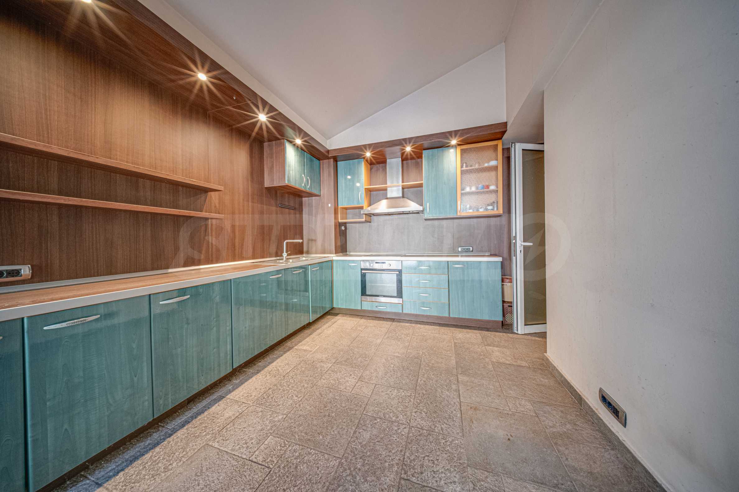 The house has a total area of 490 sq m and has a large yard of 1 decare, terraced on four levels, with lawns, century-old trees and panoramic views of Vitosha Mountain. The property has a spacious outdoor recreation area with a wooden shed, barbecue, children's playground and decorative waterfall - for a true feeling of privacy and comfort.