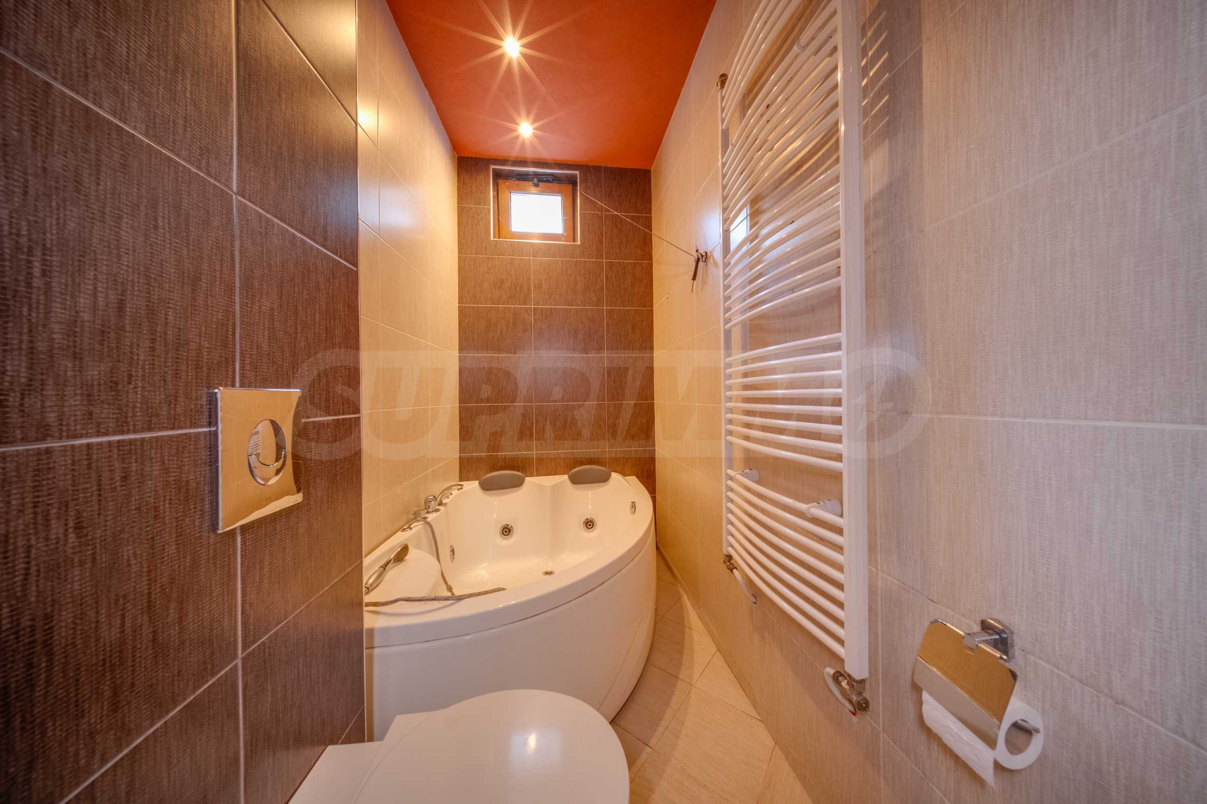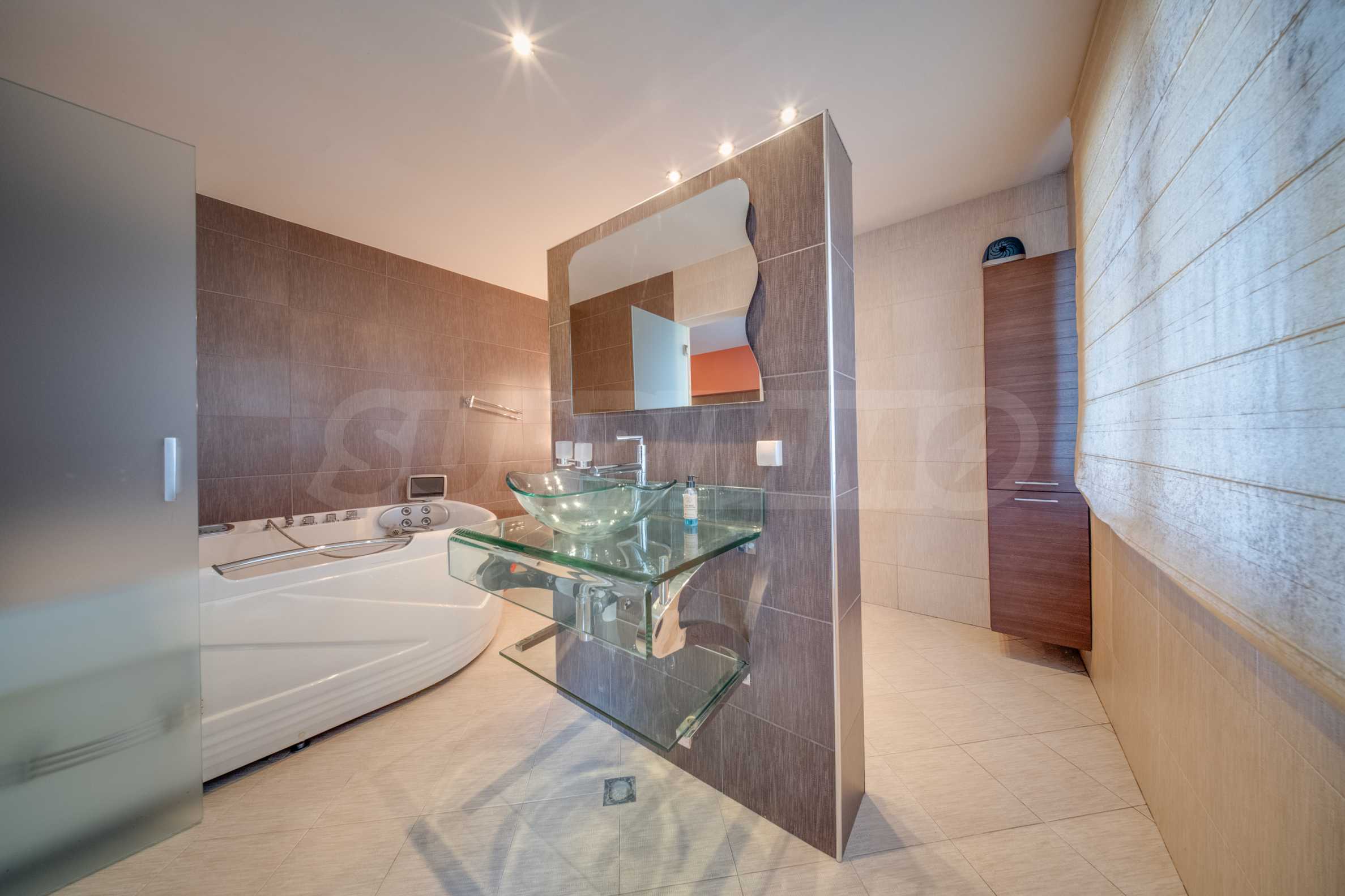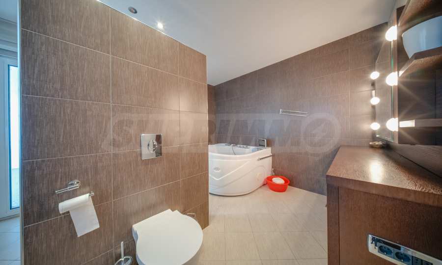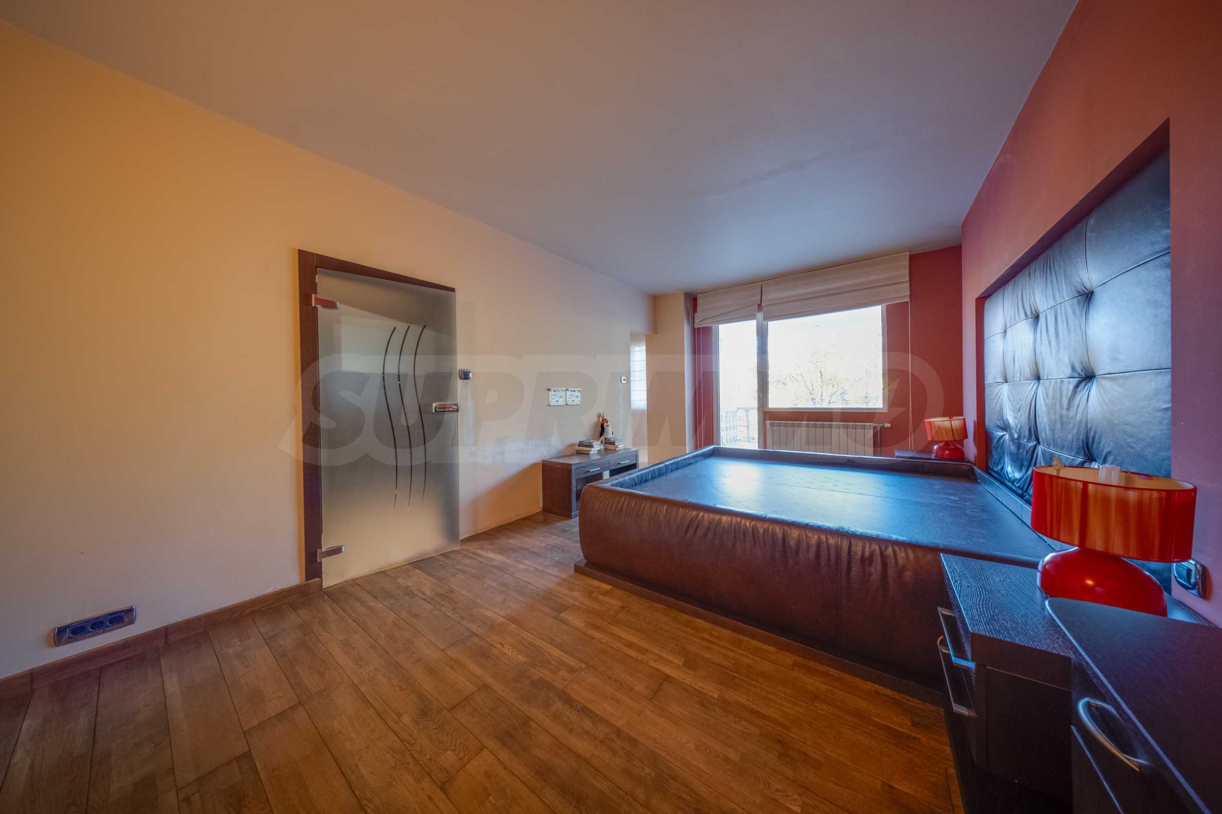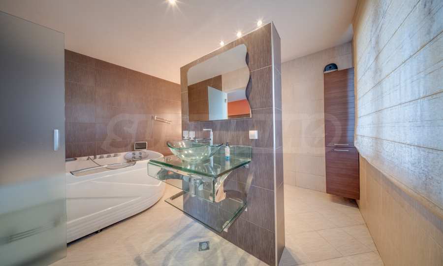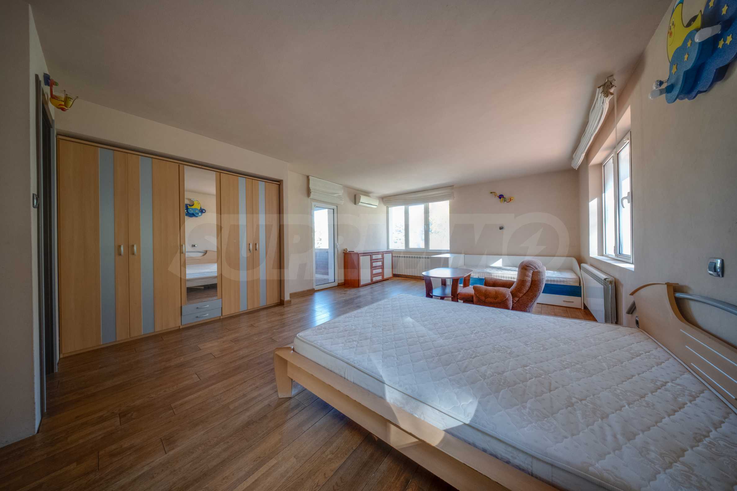 The house has a total area of 490 sq m and has a large yard of 1 decare, terraced on four levels, with lawns, century-old trees and panoramic views of Vitosha Mountain. The property has a spacious outdoor recreation area with a wooden shed, barbecue, children's playground and decorative waterfall - for a true feeling of privacy and comfort.