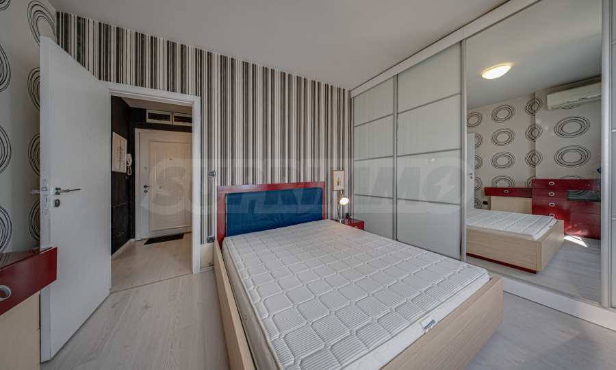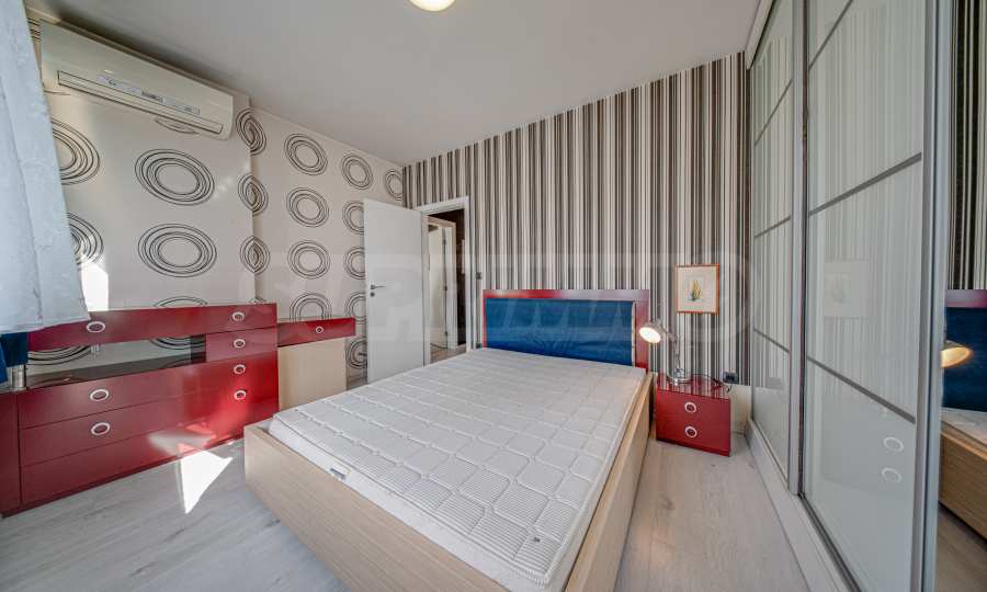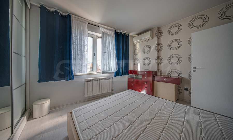 We present a bright and cozy one-bedroom apartment for rent, located in a modern and secure building with 24-hour security and access control, in one of the most preferred and developed areas of Sofia - nearby the "Mandarin" grocery store, Bulgaria Mall, "Bulgaria" metro station and "Krasno Selo" market.