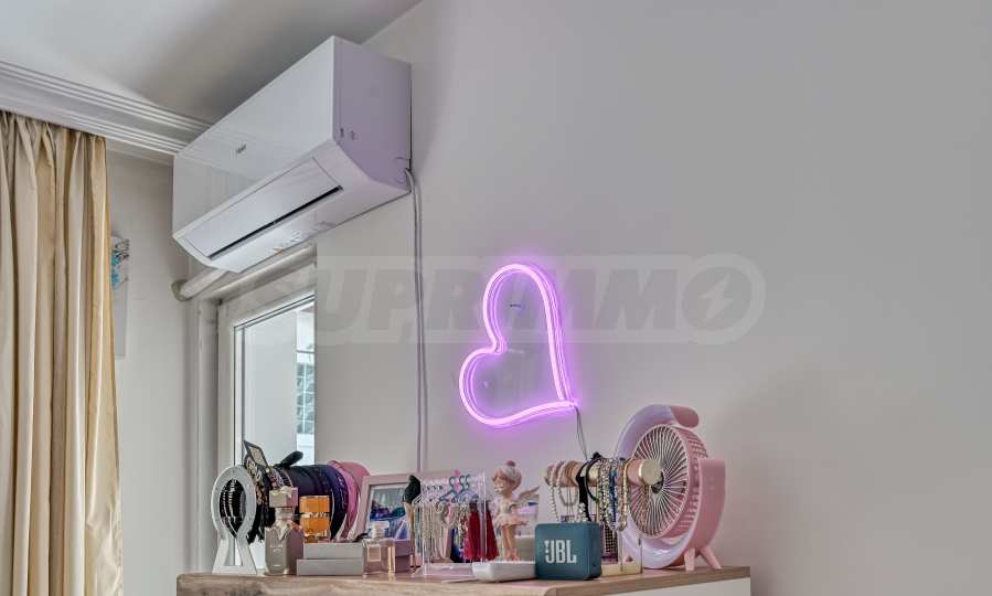 Heating and furnitures: The apartment is heated by central heating, with air conditioners installed in the bedroom and the large living room. The apartment is offered fully furnished and equipped - ready to move in. A boiler is also installed in case of an emergency.