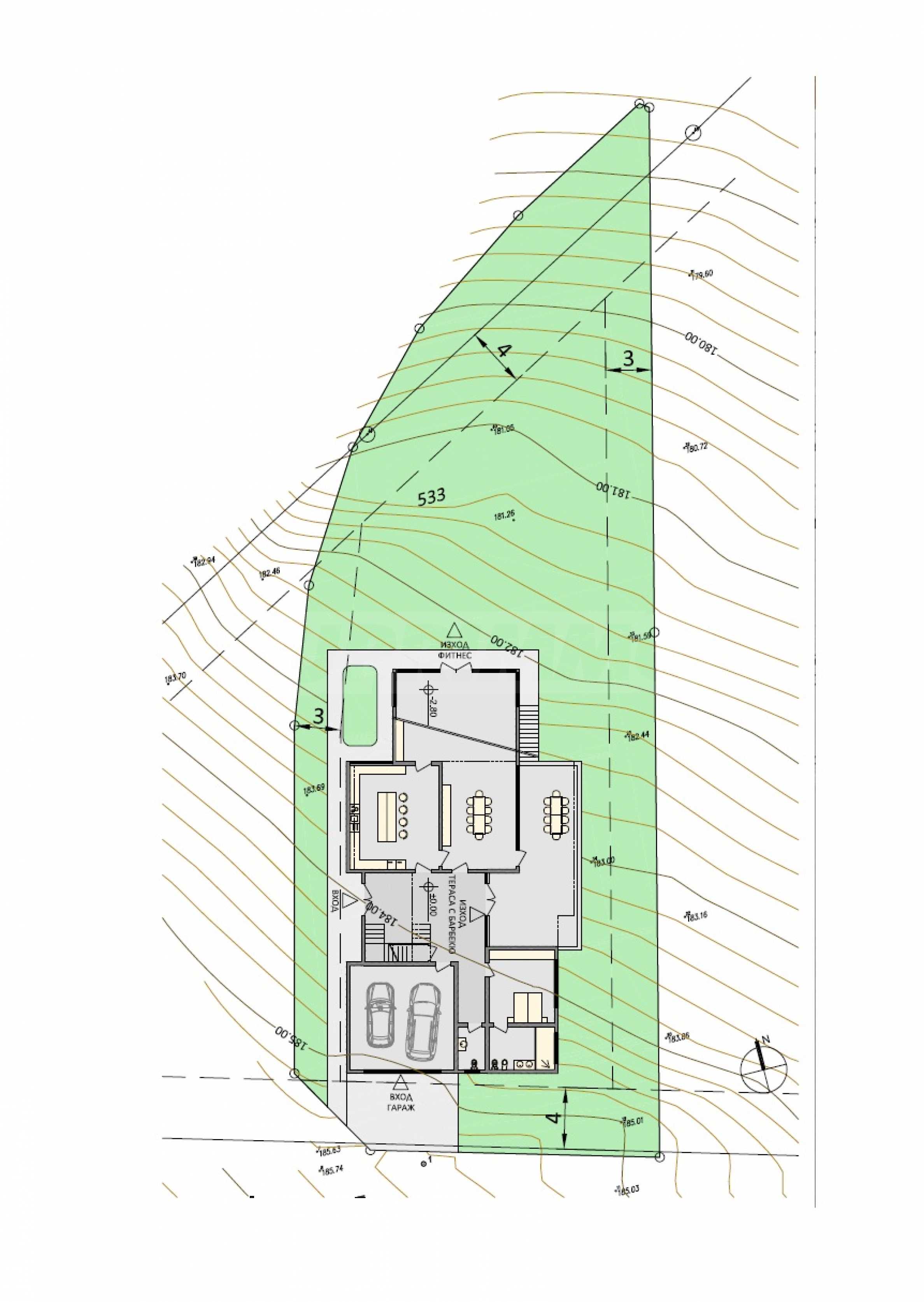 The plot borders a new complex of single-family houses and a cherry orchard, which provides a quiet, green and pleasant environment, suitable for both permanent living and a vacation property.