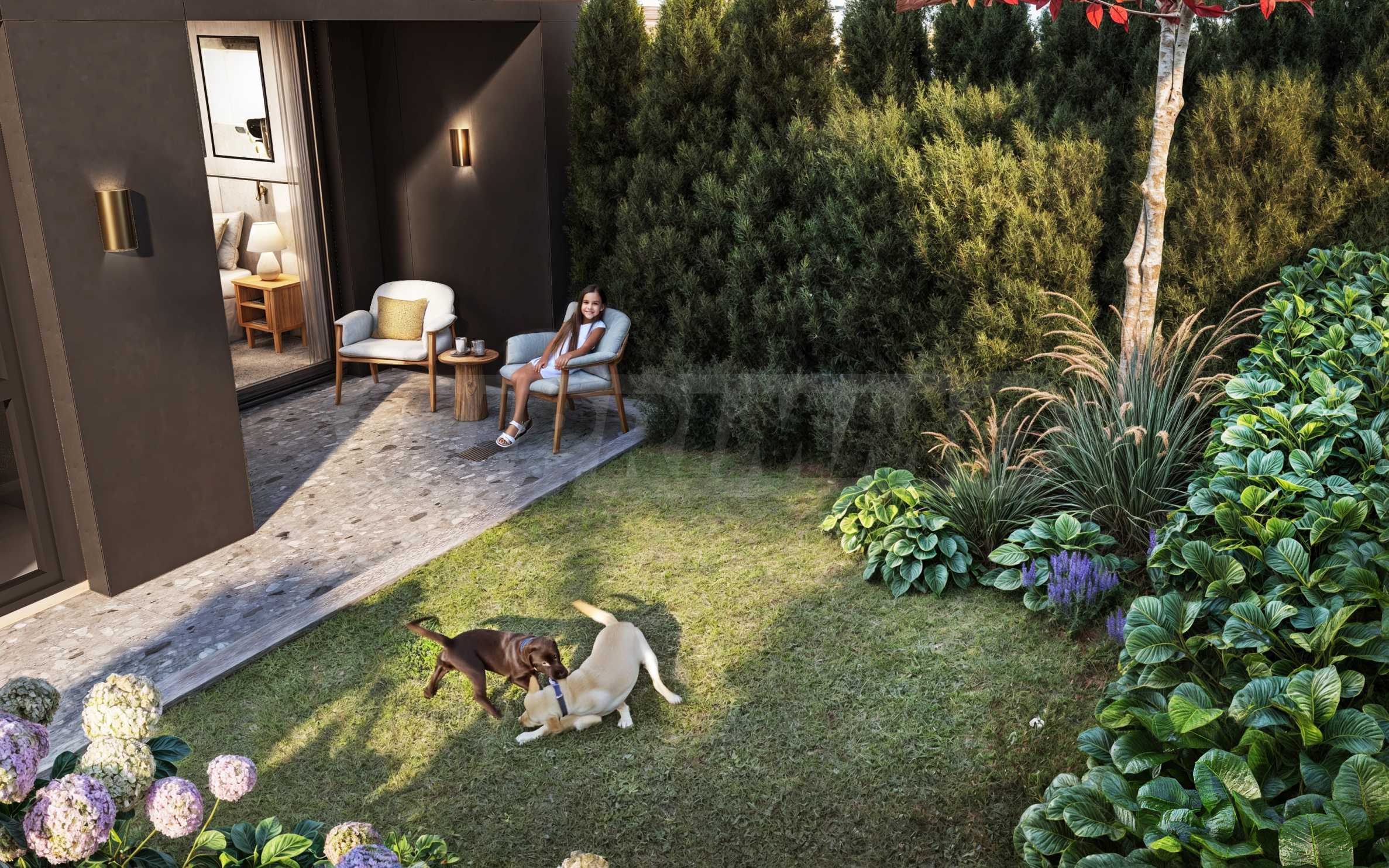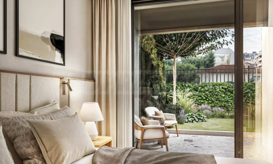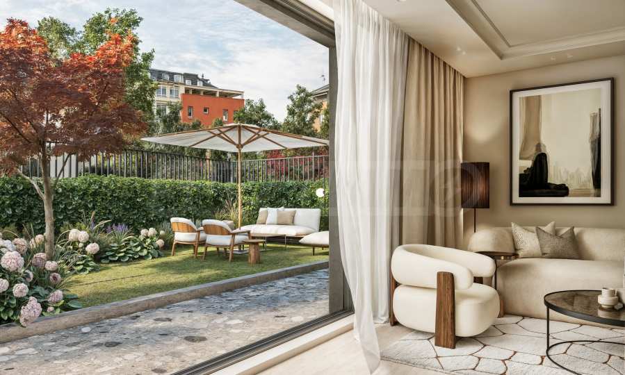 The building offers a limited selection of apartments, including one-bedroom and two-bedroom units, as well as a premium four-bedroom penthouse, providing an exceptional sense of privacy and refined luxury. All residences are thoughtfully designed to ensure optimal use of space, while entrance halls eliminate the need for transitional rooms — guaranteeing comfort and discretion for all residents. The apartments on the ground floor feature private yard areas, creating the feeling of living in a house and offering wonderful places for outdoor relaxation.
