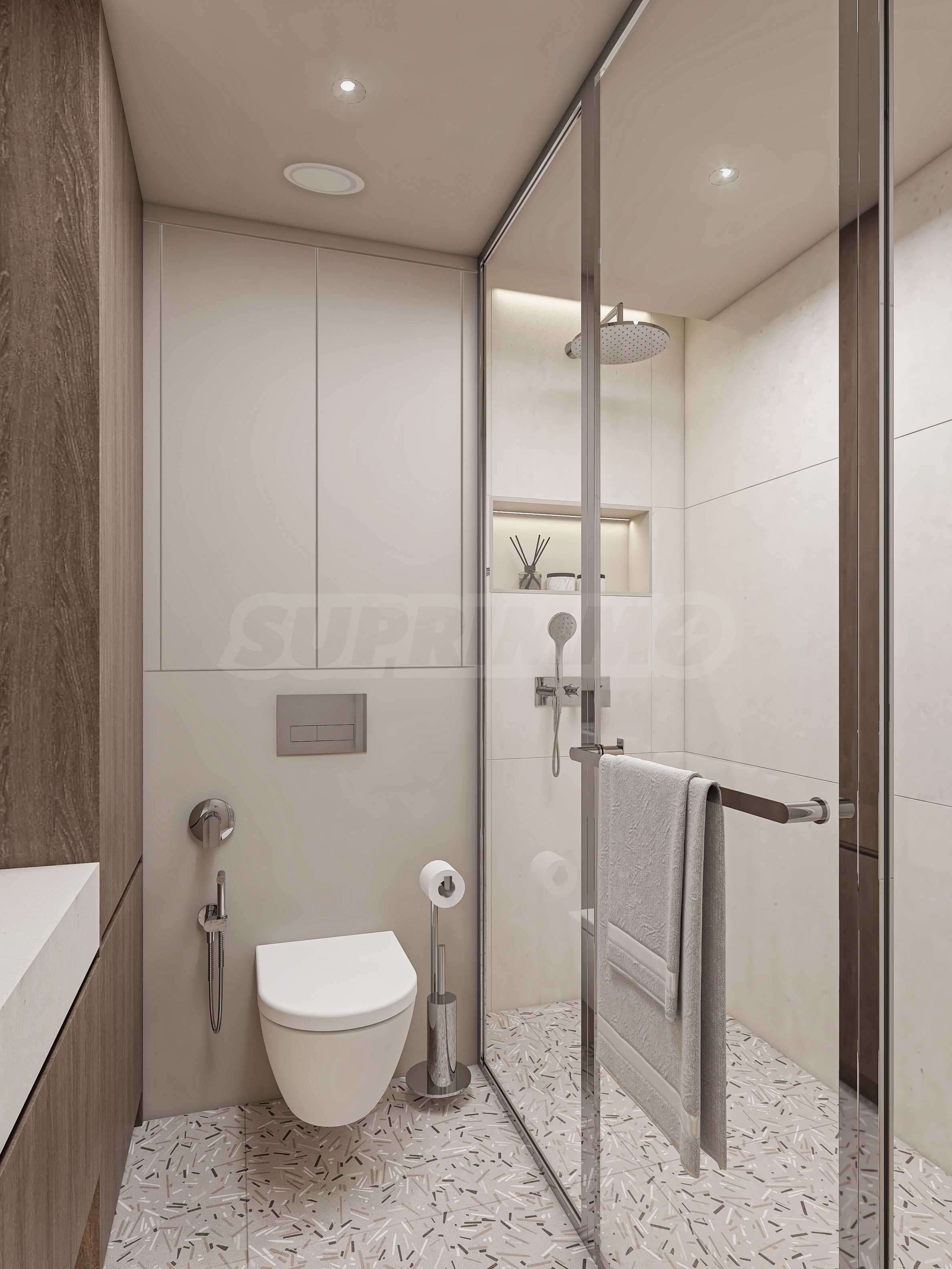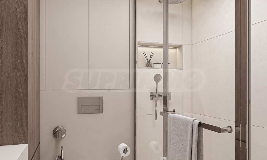 The units are delivered according to Bulgarian State Standard (on plaster and screed). The window systems are high-class aluminum frames — easy to maintain, extremely resistant to weather conditions, protected against corrosion, and preserving their color over time.