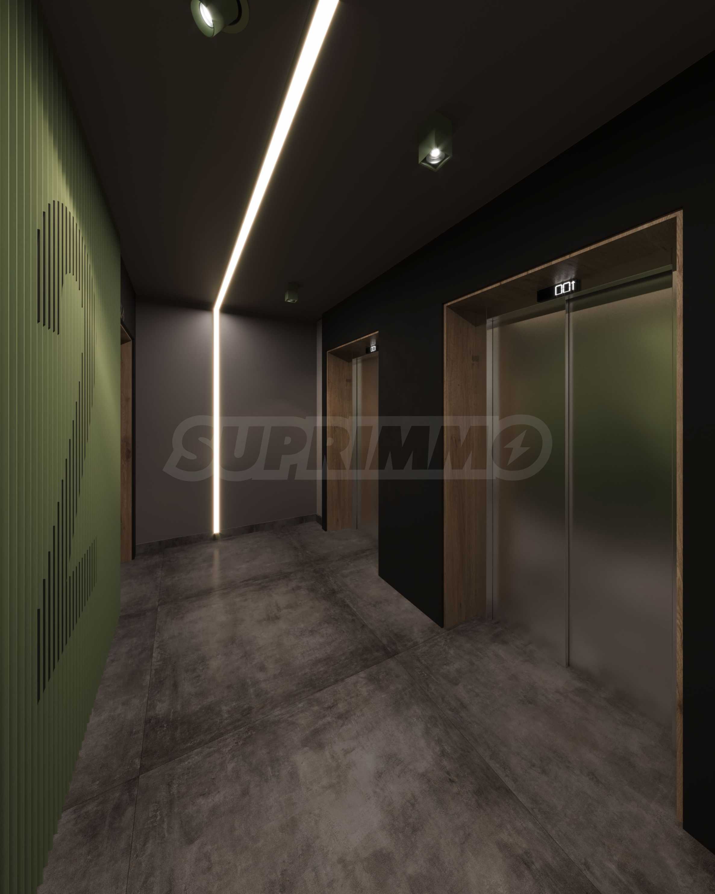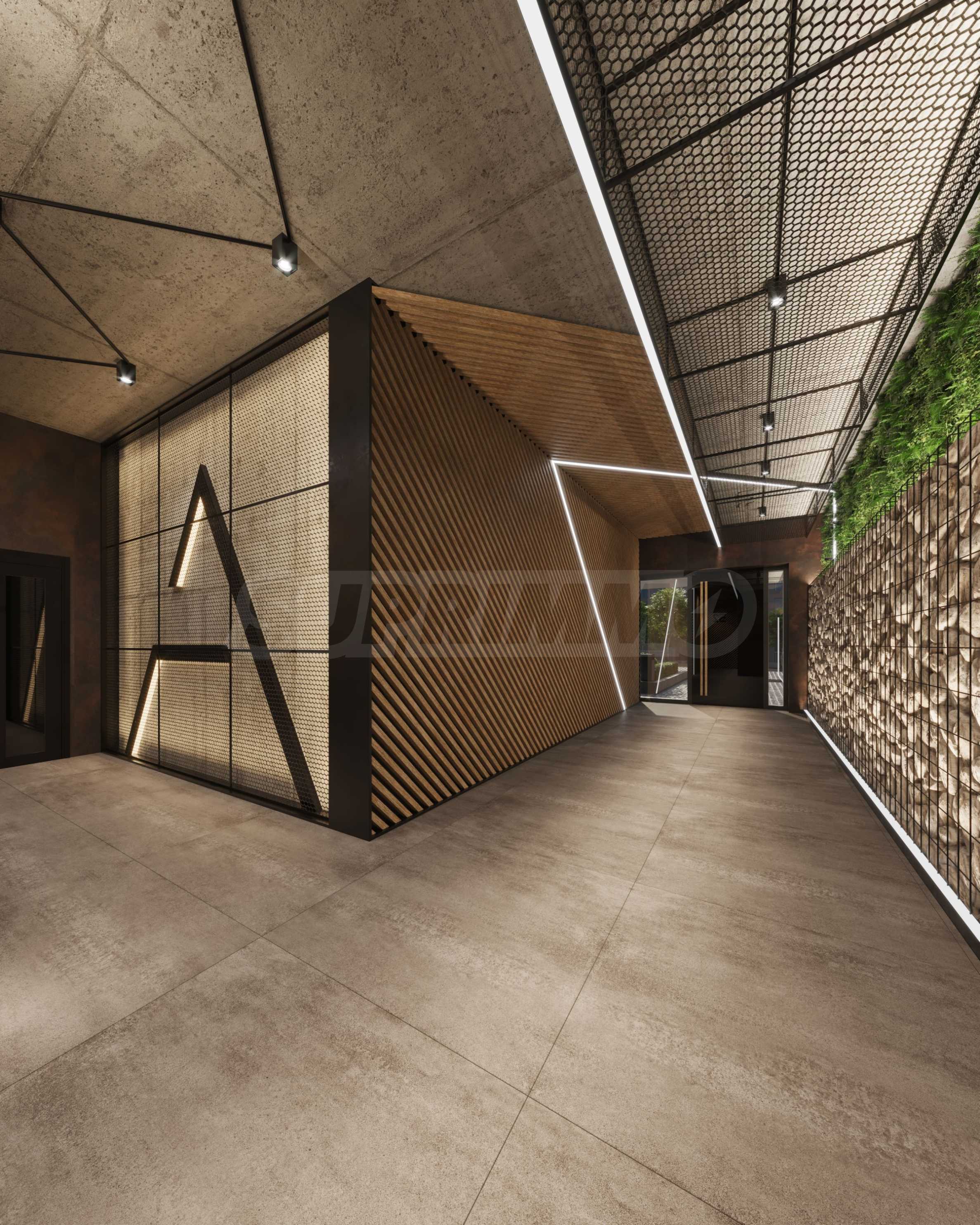 • Foyers and corridors – floor - cement screed and granite flooring, walls - paneling and cladding according to interior design, suspended ceilings with plasterboard, painted with latex on gypsum putty, with designer lighting according to the project.