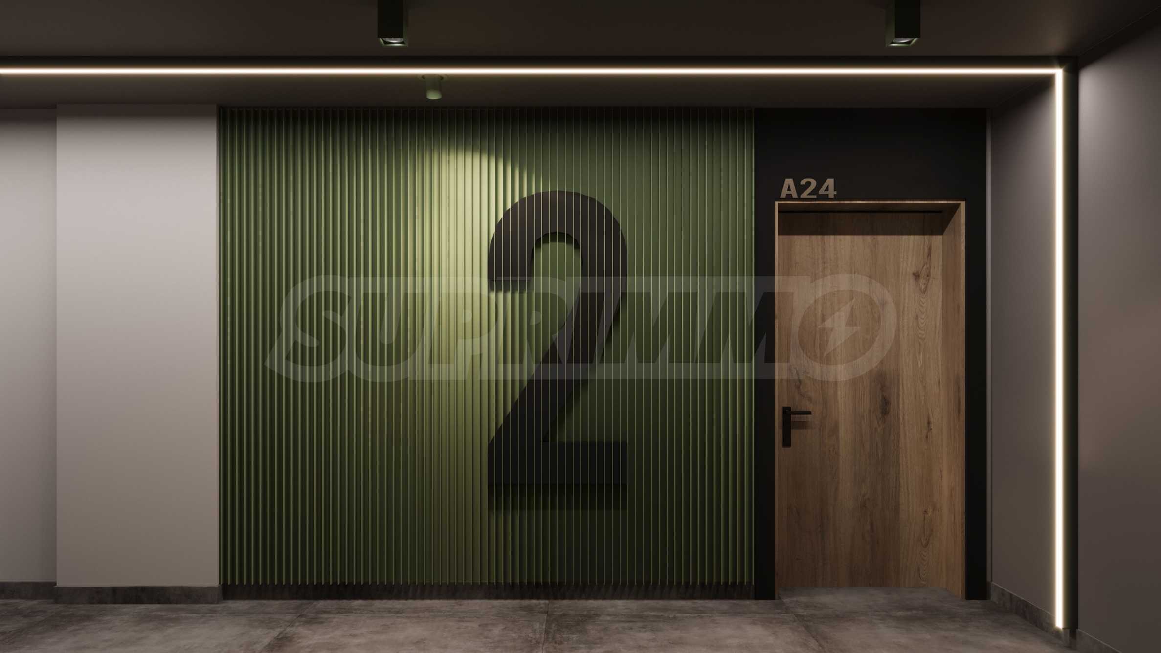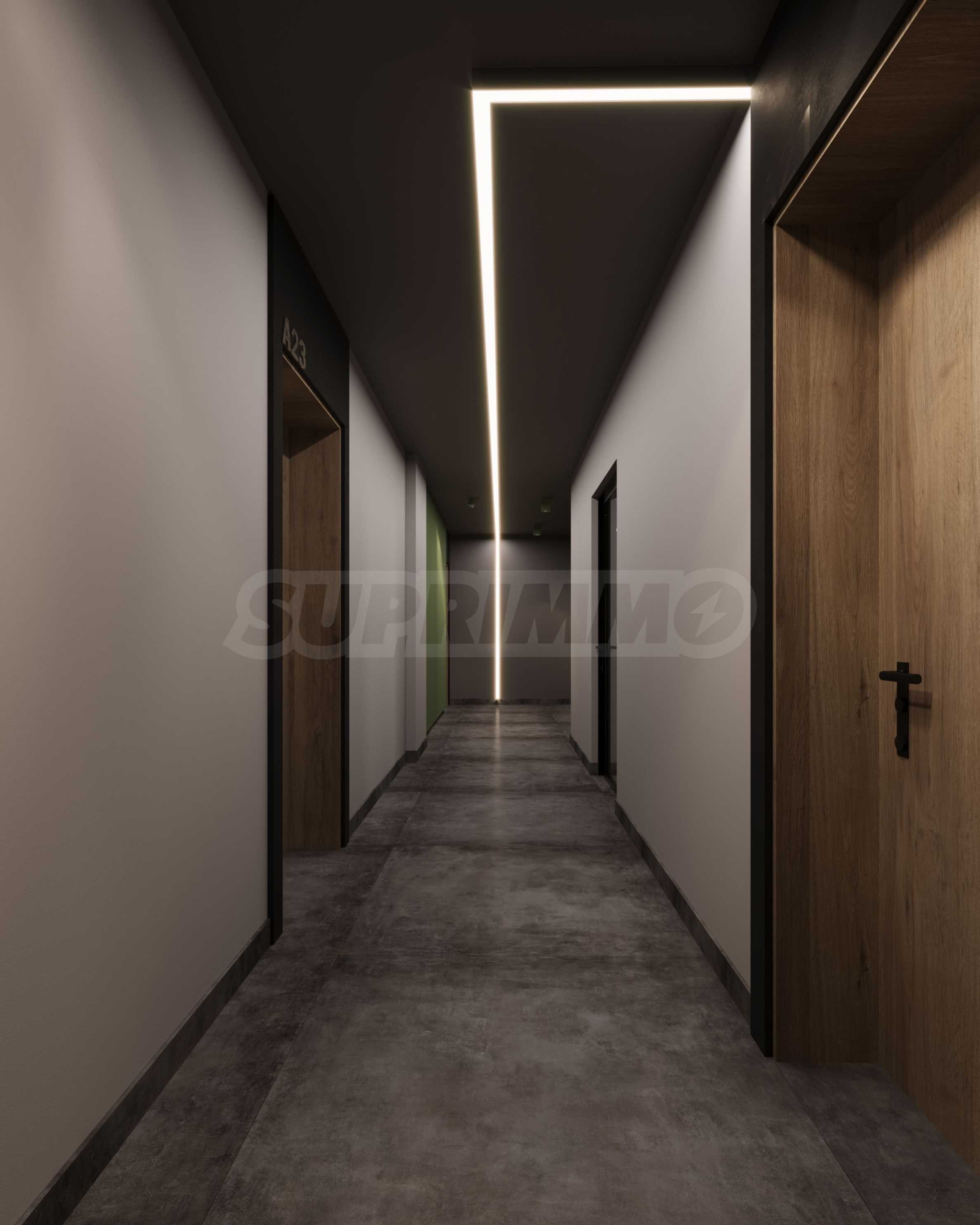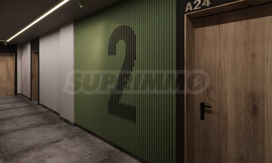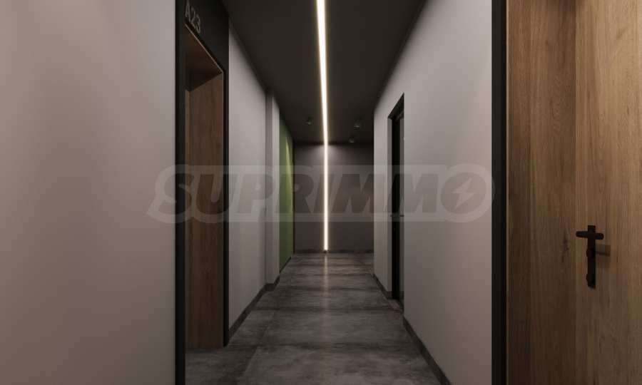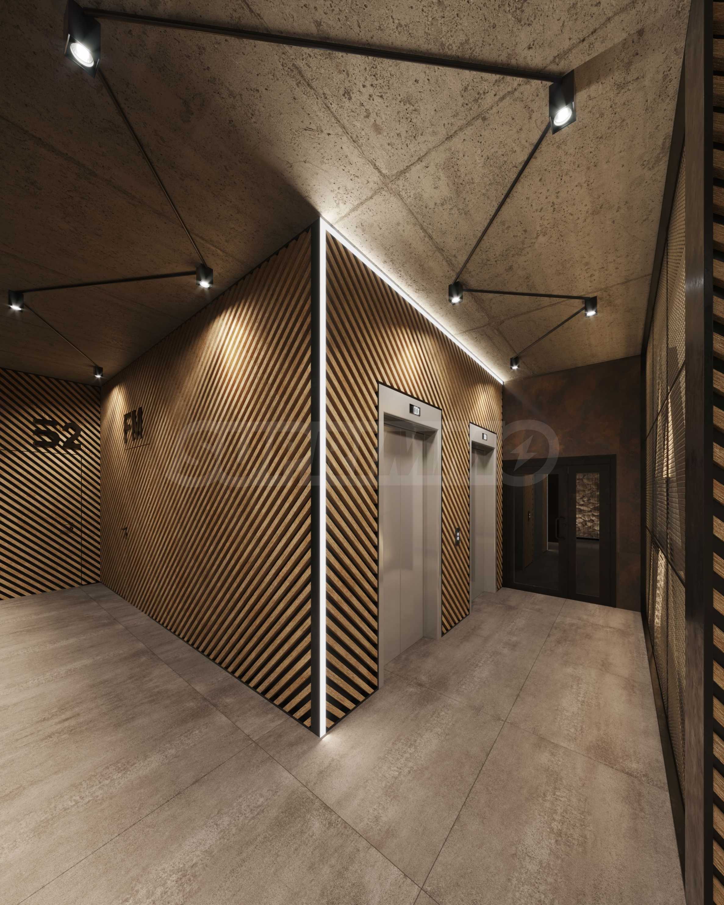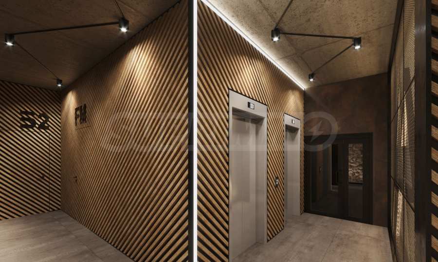 • Stairs and landings – floor - cement screed and granite flooring, metal railing and handrail, walls - painted with latex on gypsum putty, ceilings - painted with latex on gypsum putty, with designer lighting according to the project.