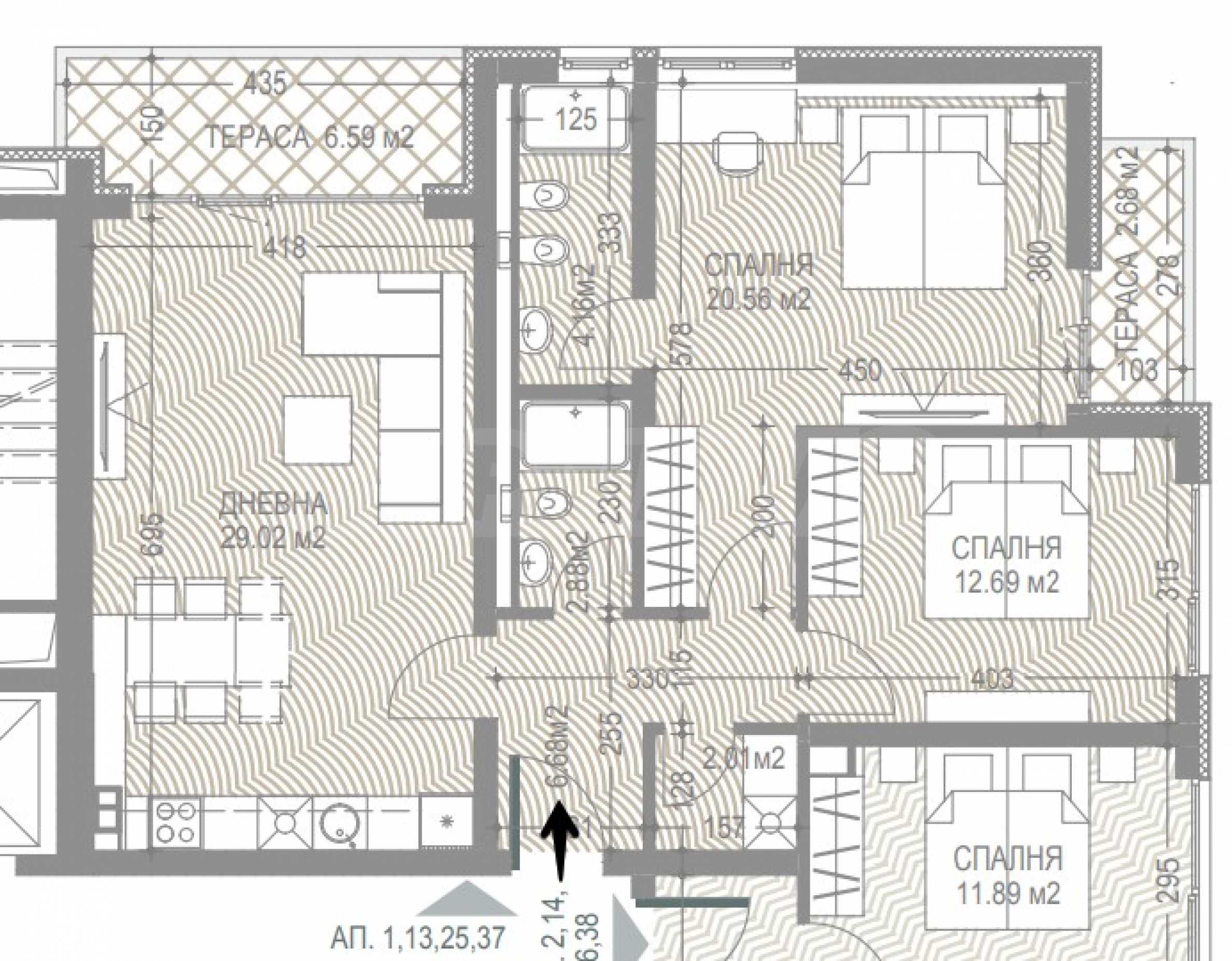 The property comes with the option to purchase an underground parking space at a price of 33,000 euros (64,541.40 BGN).