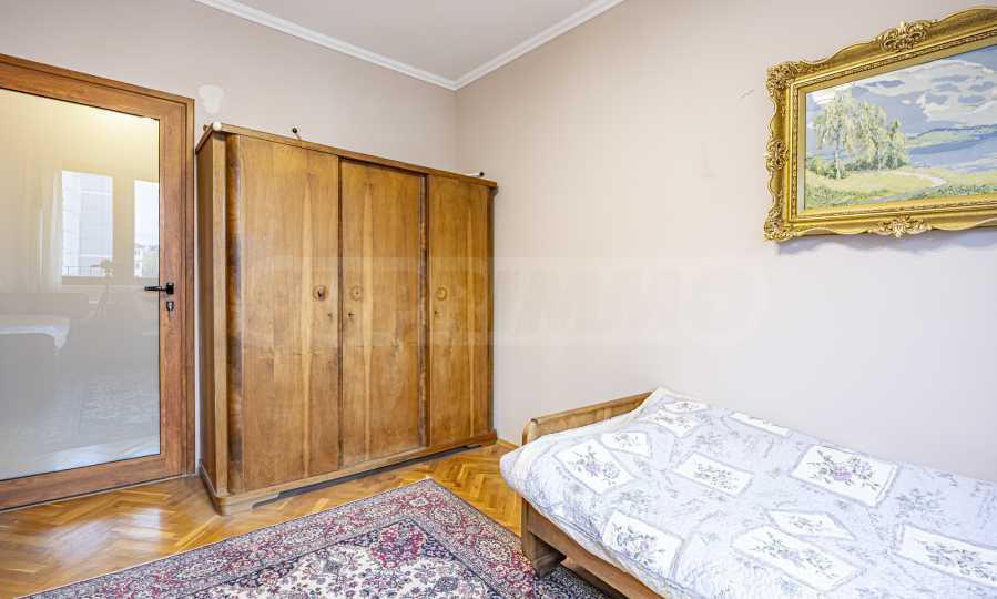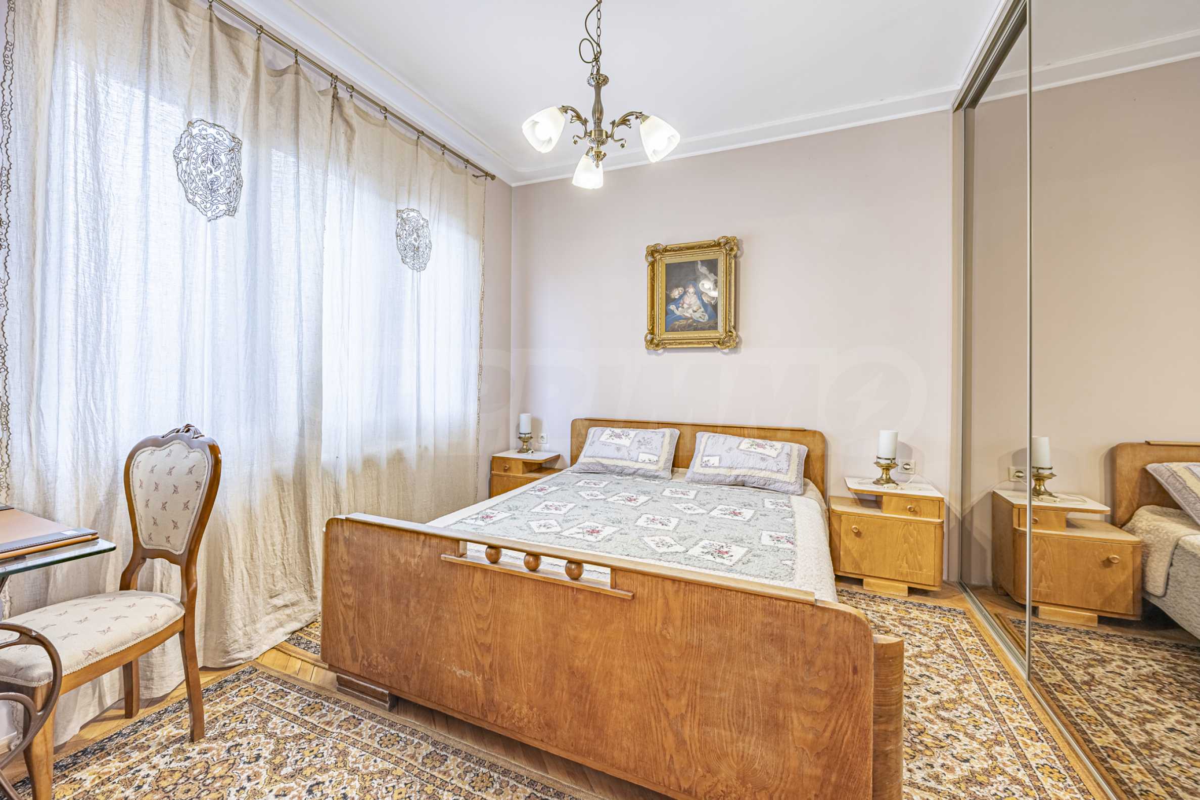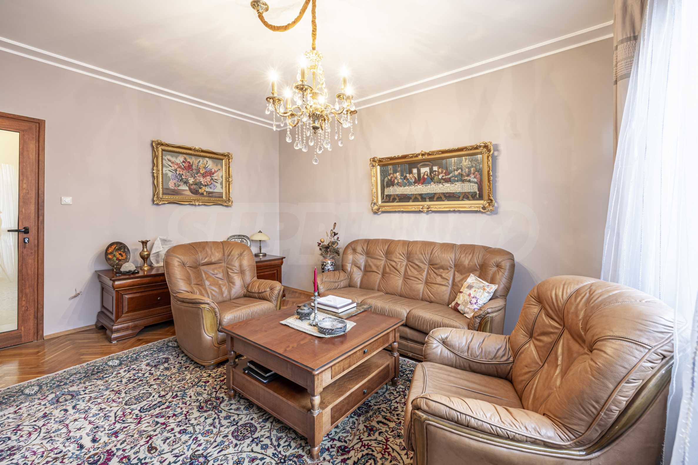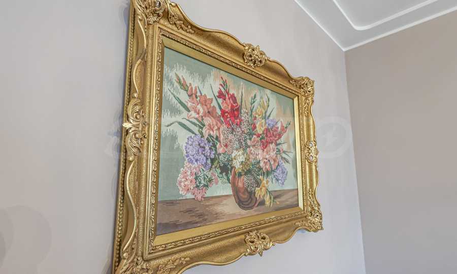 The property has 88 sq m of net living area, a basement – 25 sq m and an attic – 20 sq m, included in the price. It is suitable for both personal use and for renting out, thanks to the practical layout and central location. Furnished in a classic style with solid wood furniture, the apartment is maintained and offers a comfortable, peaceful atmosphere. The heating is by central heating, and air conditioning and a boiler are also available.