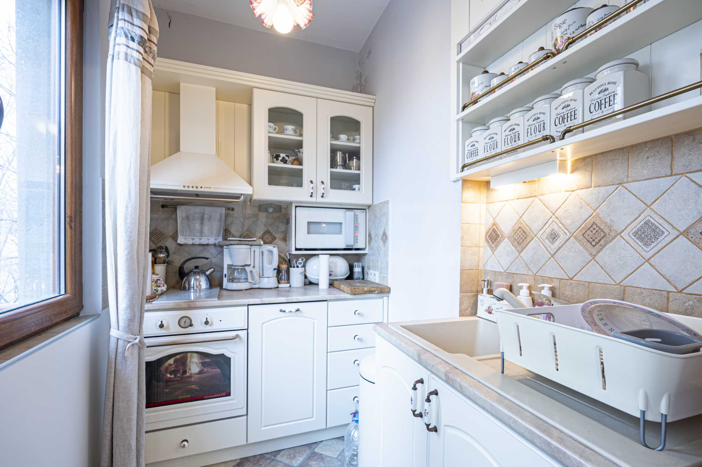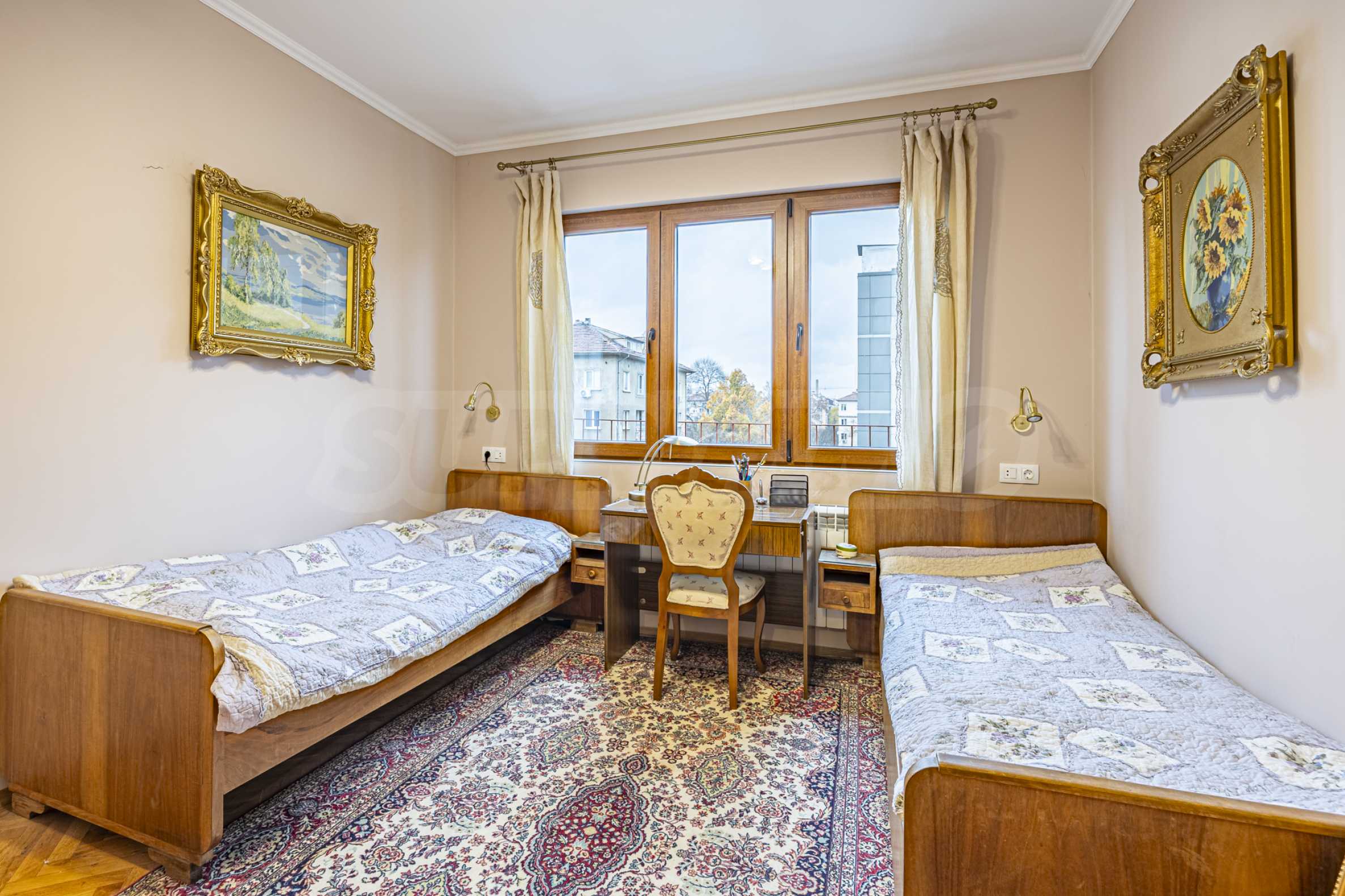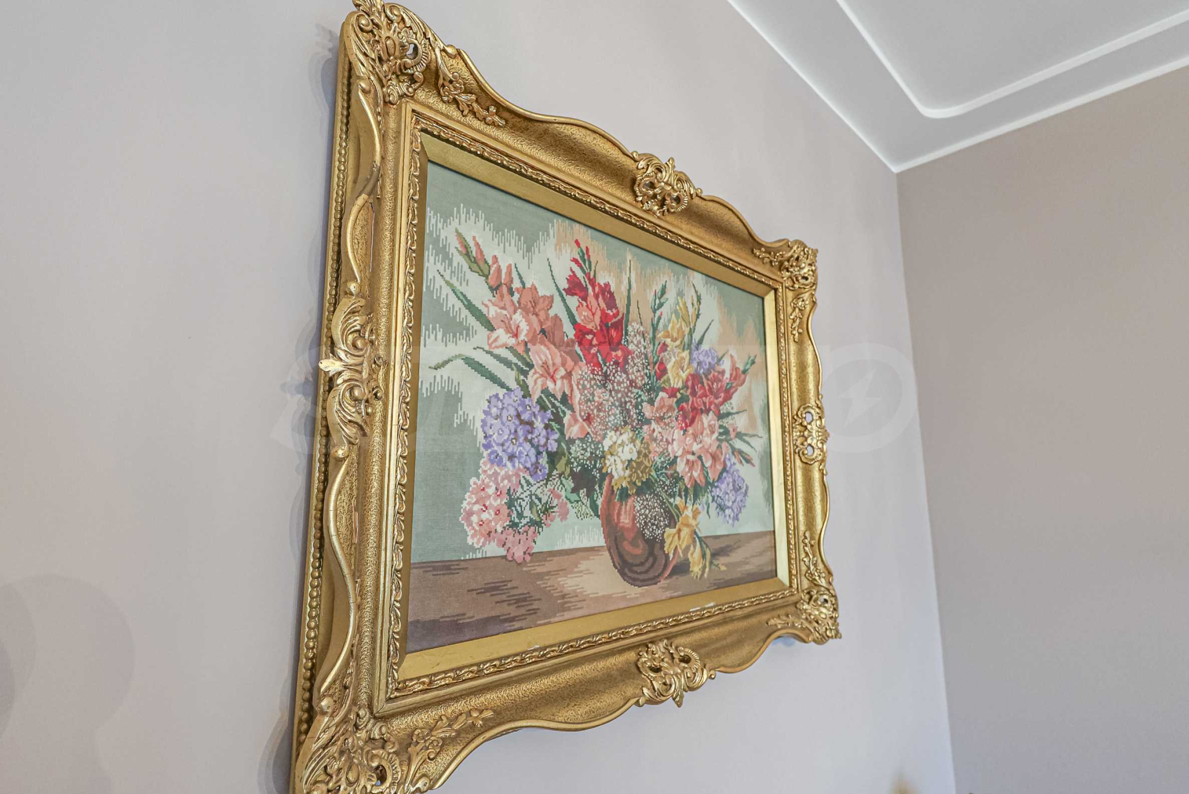 The property has 88 sq m of net living area, a basement – 25 sq m and an attic – 20 sq m, included in the price. It is suitable for both personal use and for renting out, thanks to the practical layout and central location. Furnished in a classic style with solid wood furniture, the apartment is maintained and offers a comfortable, peaceful atmosphere. The heating is by central heating, and air conditioning and a boiler are also available.