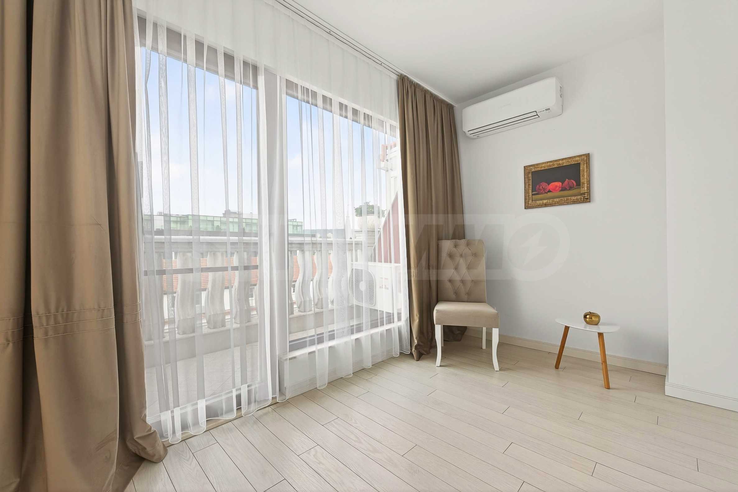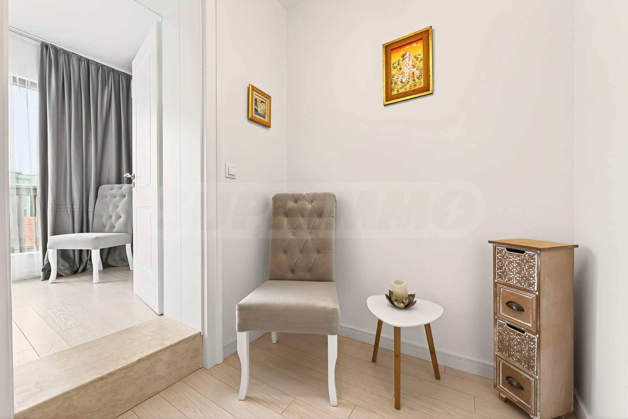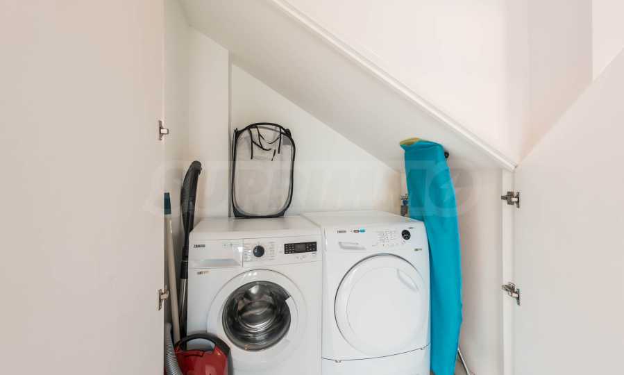 • first level - entrance hall/corridor, spacious bathroom, laundry room /with dryer/, large closet, two spacious and very bright bedrooms with access to a huge terrace with sofas. Currently the second bedroom is unfurnished. The new tenant can choose whether to use it as an office/study or as a bedroom /it will be furnished with a bed/;
