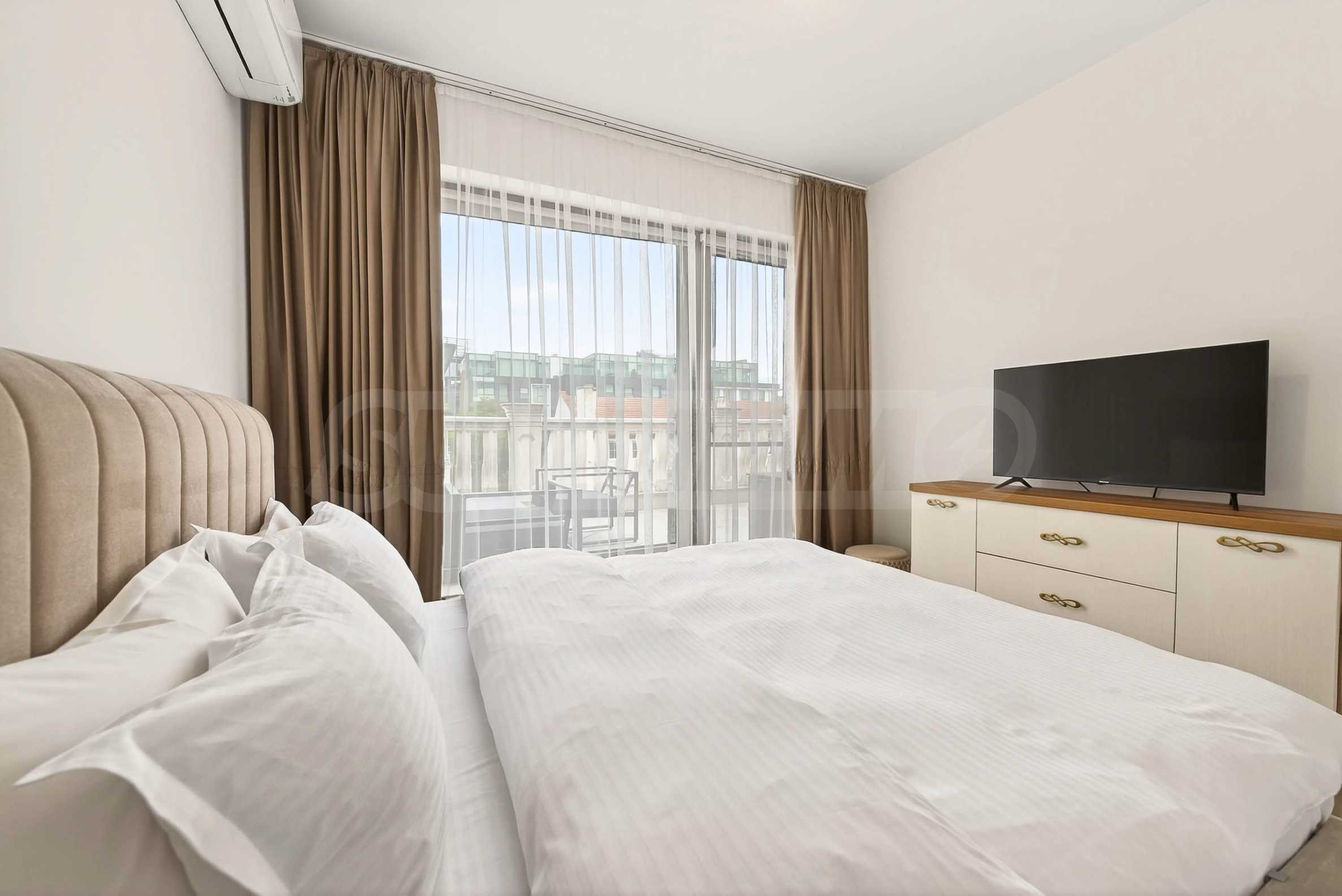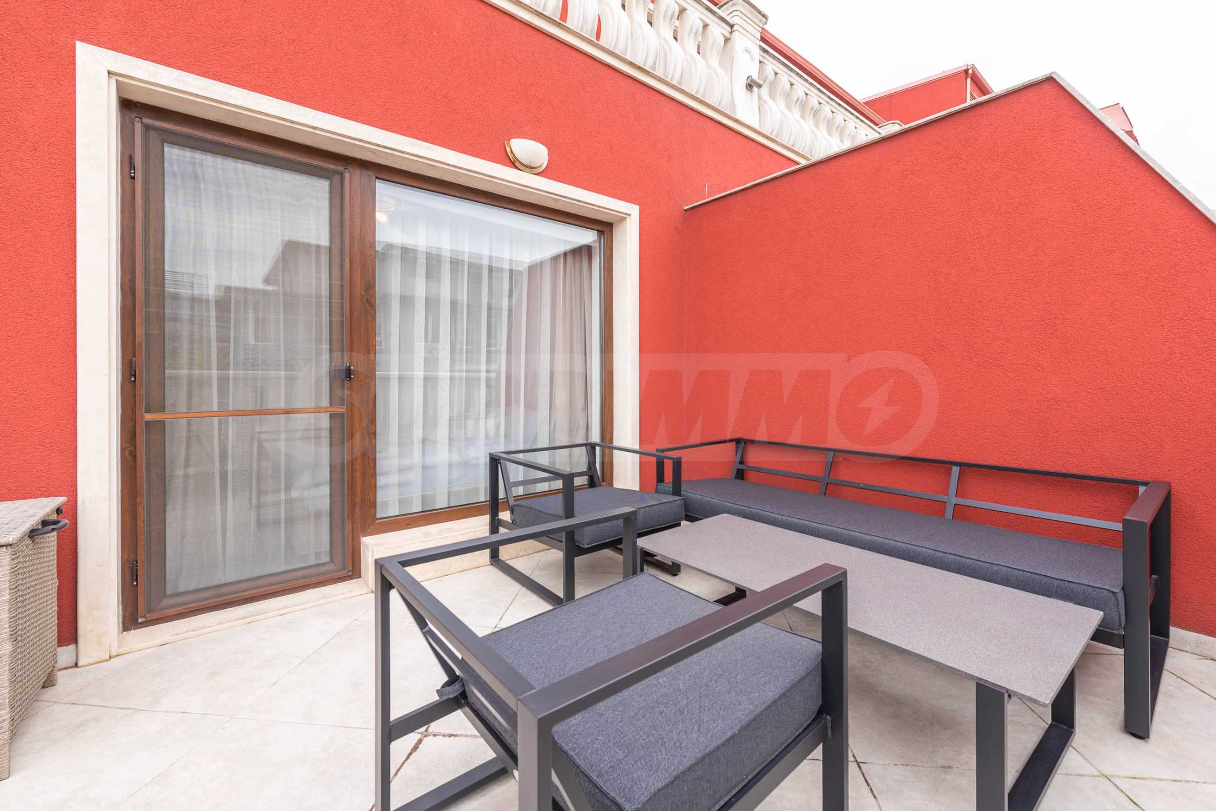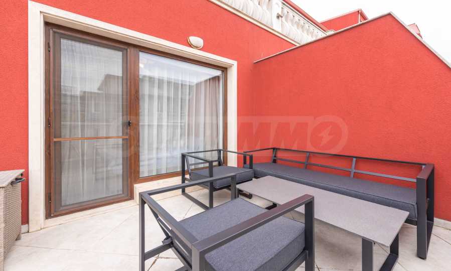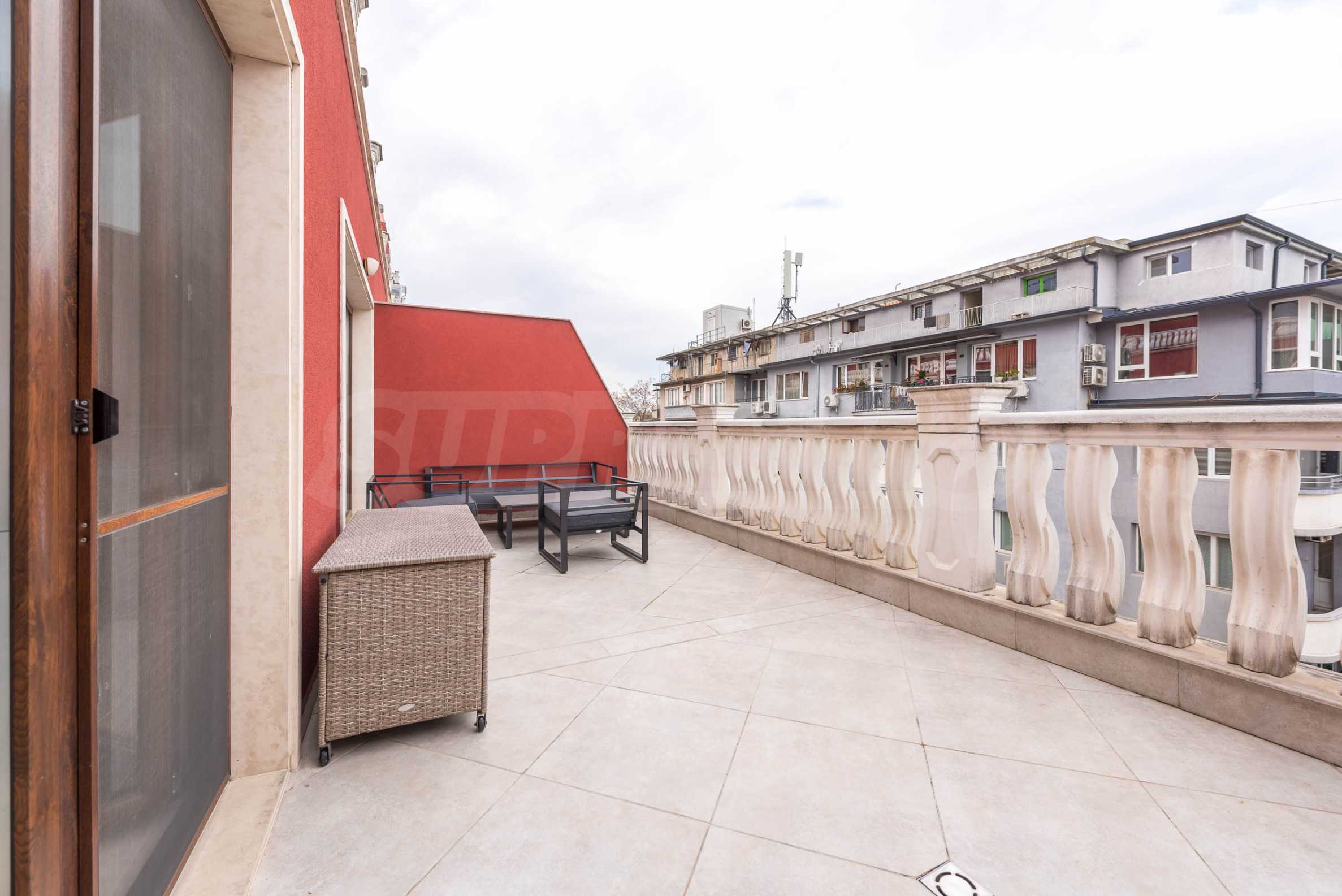 • first level - entrance hall/corridor, spacious bathroom, laundry room /with dryer/, large closet, two spacious and very bright bedrooms with access to a huge terrace with sofas. Currently the second bedroom is unfurnished. The new tenant can choose whether to use it as an office/study or as a bedroom /it will be furnished with a bed/;