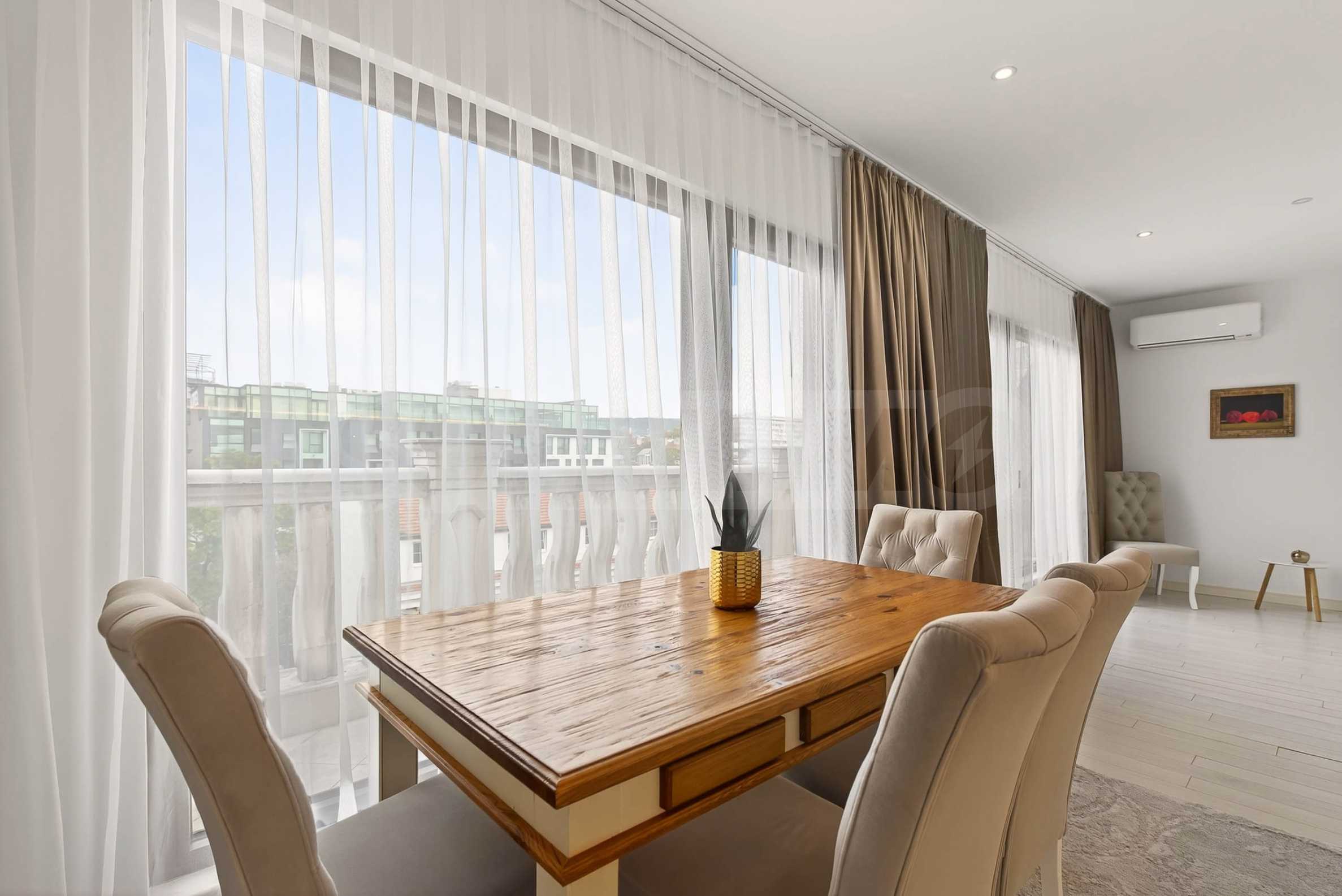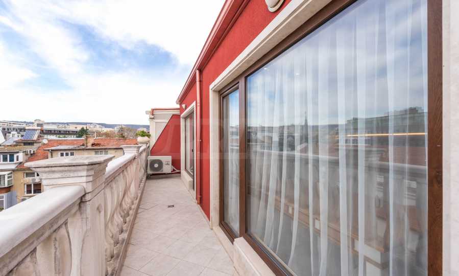 We present a three-bedroom penthouse in a luxury building, in the top center of Varna. With an excellent location just meters from the Sea Garden and the beach.
