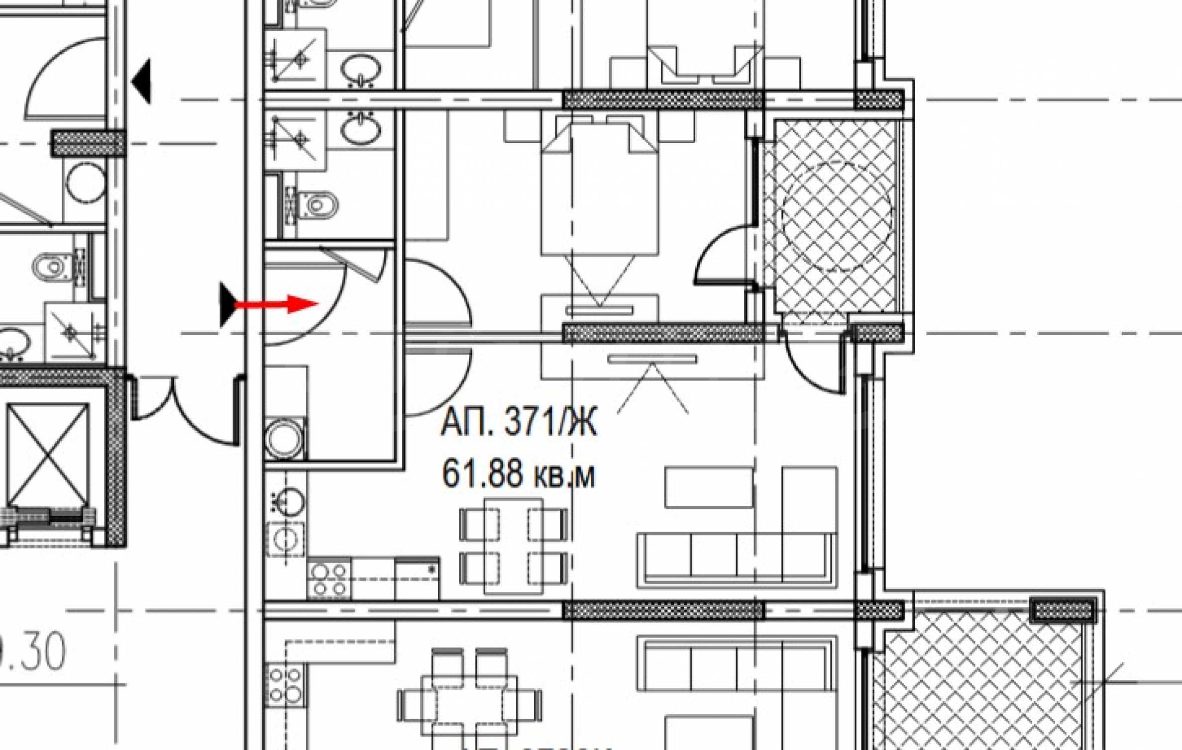 The property is located on the 4th floor and has a total area of 71.50 m2, net area - 61.88 m2, on which are distributed: entrance hall, bathroom with toilet, living room with kitchen, terrace, one bedroom. The property is being let in a degree of completion according to BDS, with five-chamber PVC joinery Rehau, with triple glazing and an armored entrance door.