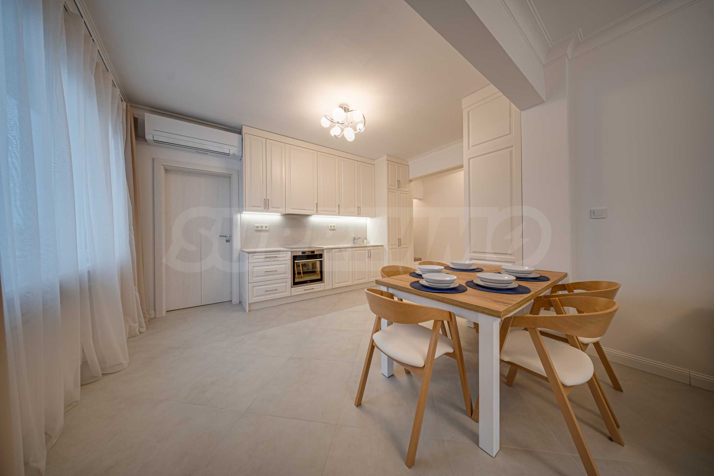 The apartment is fully renovated and furnished with high-end custom-made furniture. The equipment includes energy-efficient BOSCH appliances: stove with hotplates, washing machine, dryer and dishwasher.