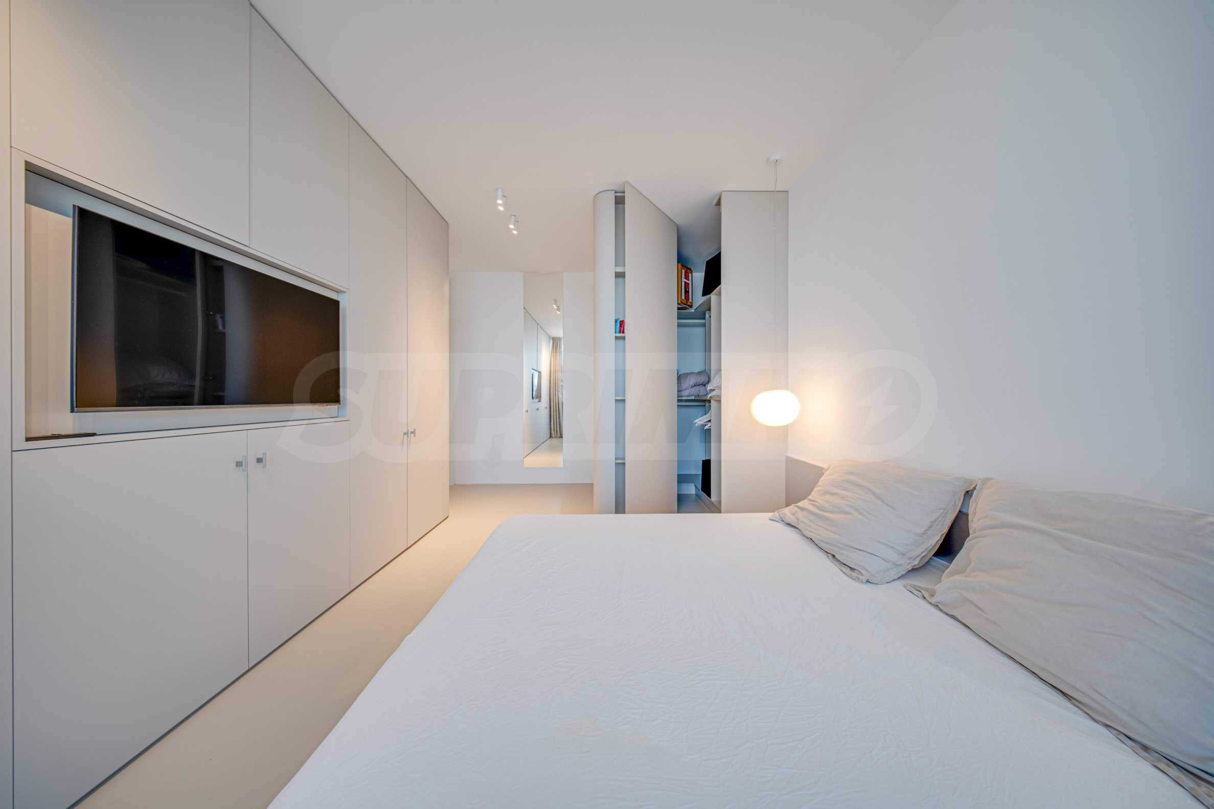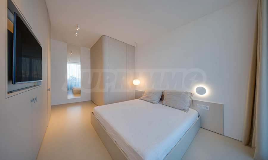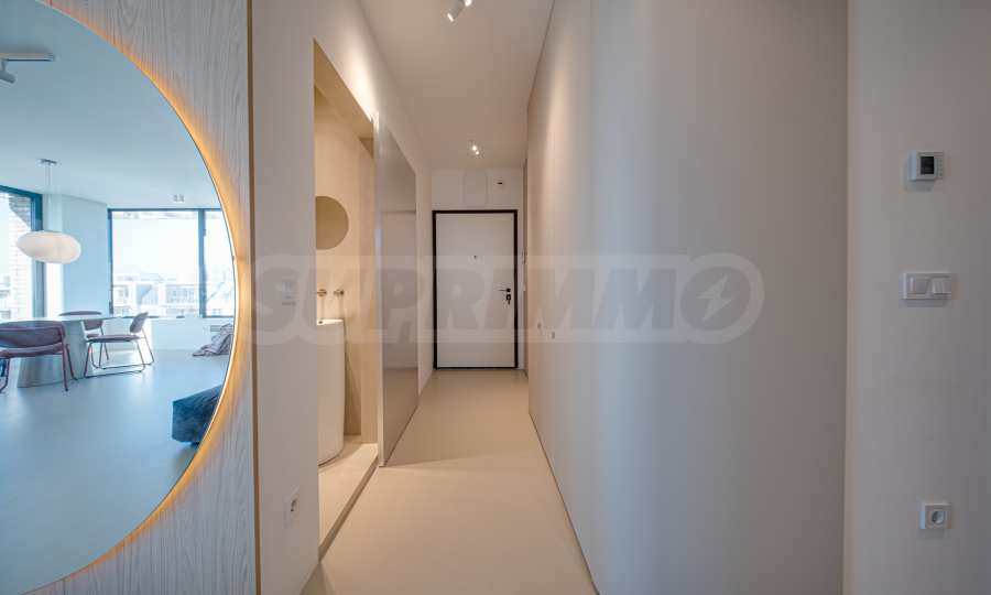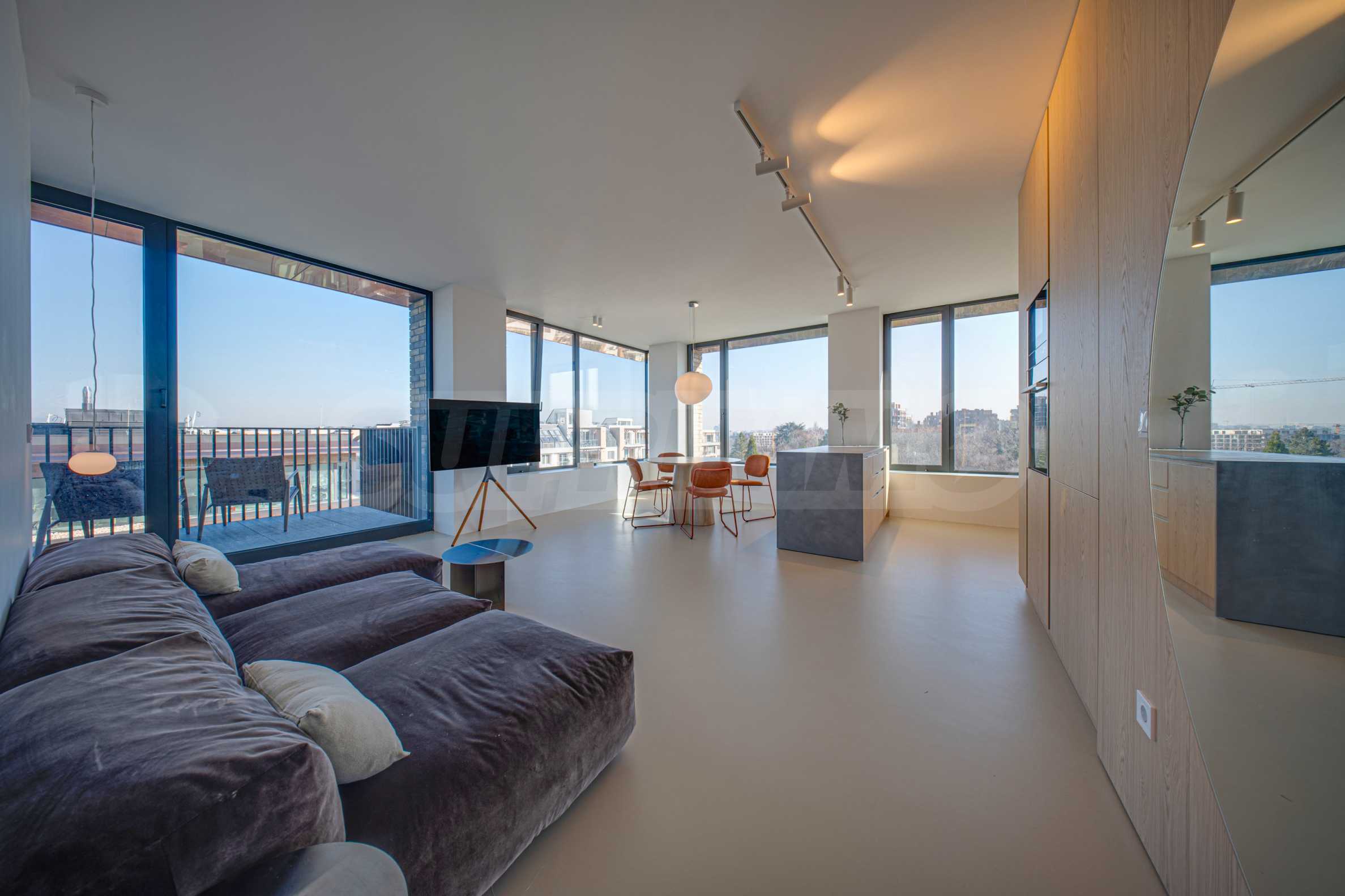 One of the main advantages of the apartment are the large French windows, which fill the rooms with natural light and create a feeling of spaciousness and air. They provide a smooth connection between the interior and the exterior, revealing beautiful views of the city and Vitosha Mountain and contributing to the feeling of living with more freedom and comfort.