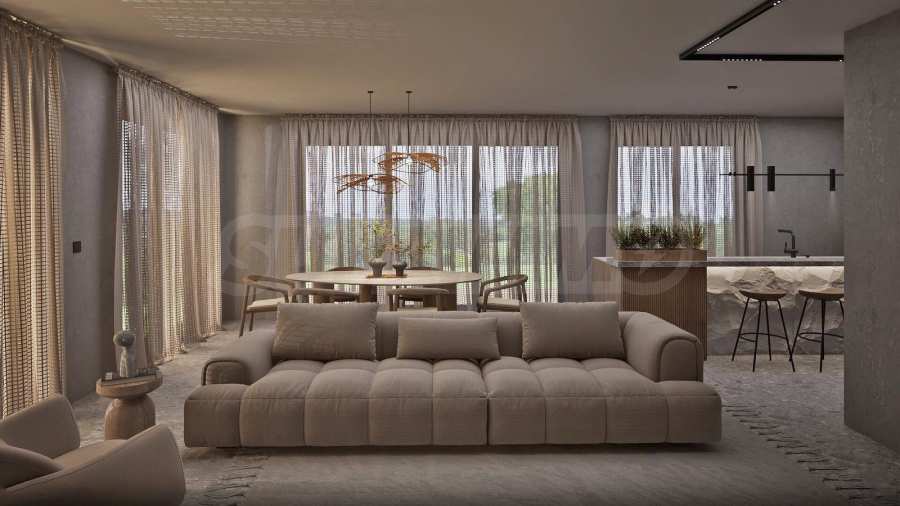 The villas are offered for sale in a "turnkey" state of completion, luxuriously furnished and equipped in a contemporary and elegant style with high-quality materials. High-class insulation, 5-chamber Rehau windows with excellent heat and sound insulation qualities, glass railings on the balconies. Heating and cooling are solved by underfloor heating and air conditioners.