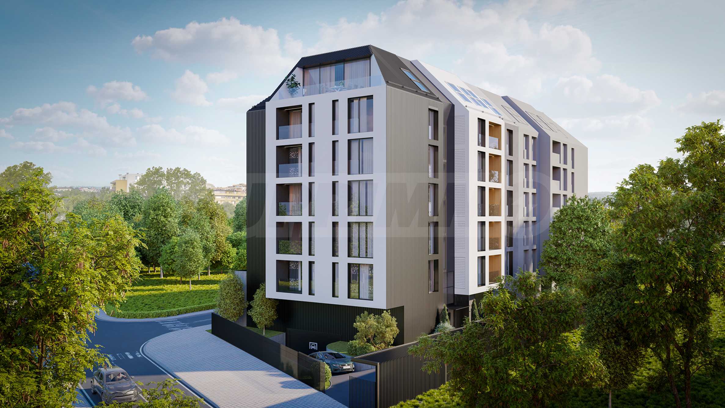 The building is distinguished by its modern architecture and high standard of performance. The construction is monolithic reinforced concrete, and the brick multi-chamber walls provide excellent heat and noise insulation. The facade is ventilated, built with natural materials and high-class Baumit thermal insulation (12 cm). Five-chamber PVC windows with triple glazing are installed, and the entrance doors are armored and fire-resistant.