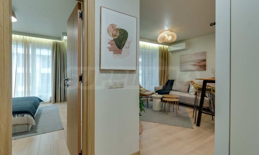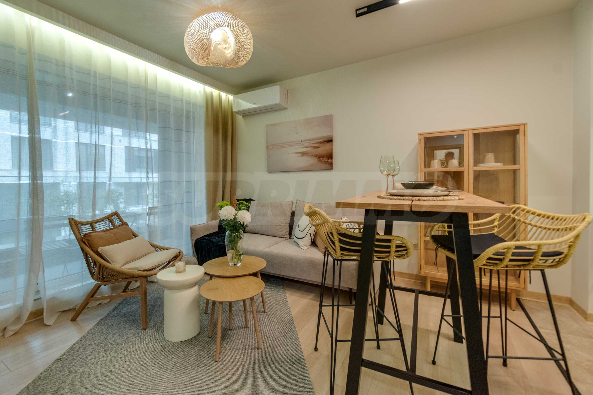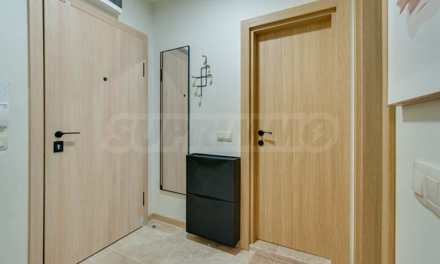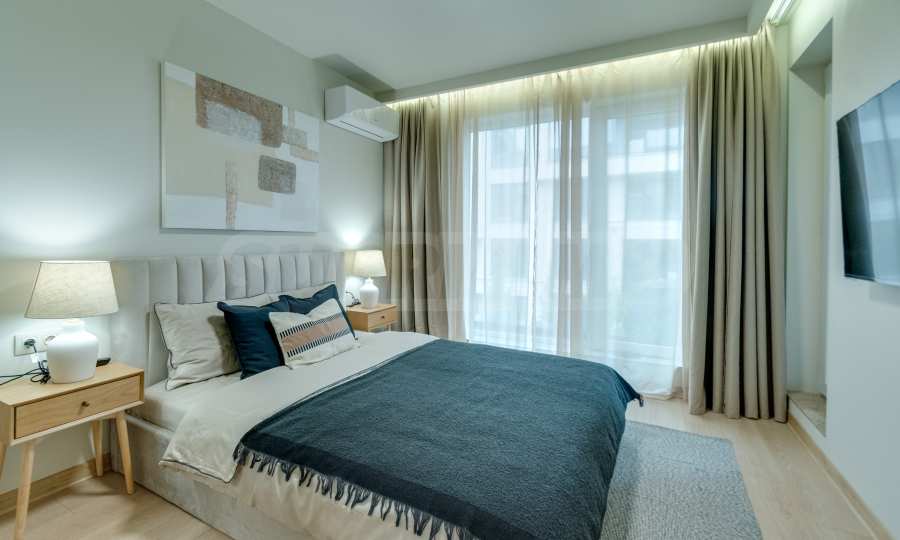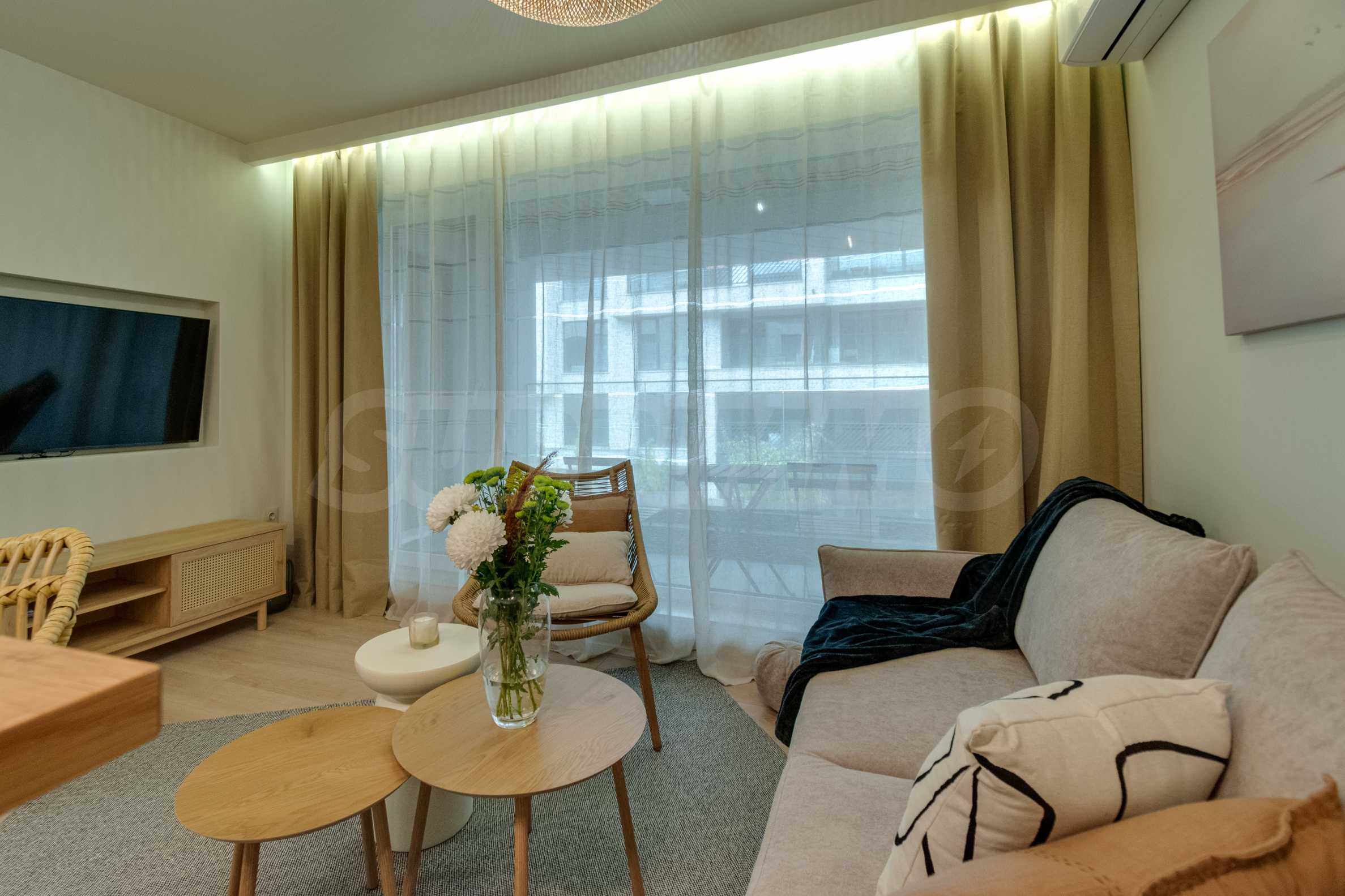 The apartment is fully finished and furnished with high-quality furniture and appliances, selected with attention to every detail.