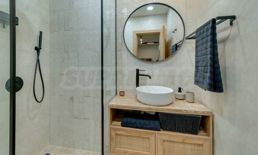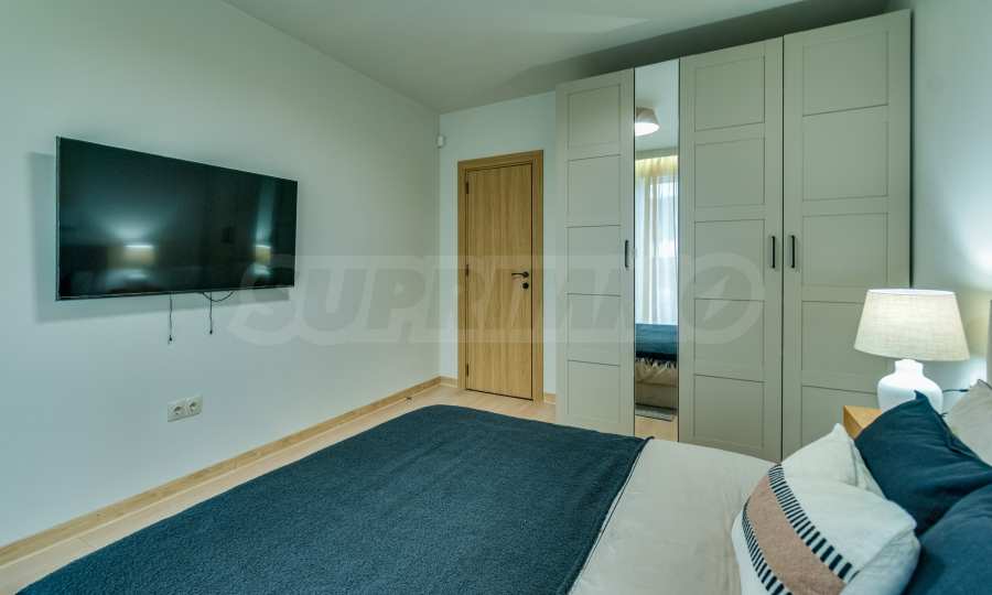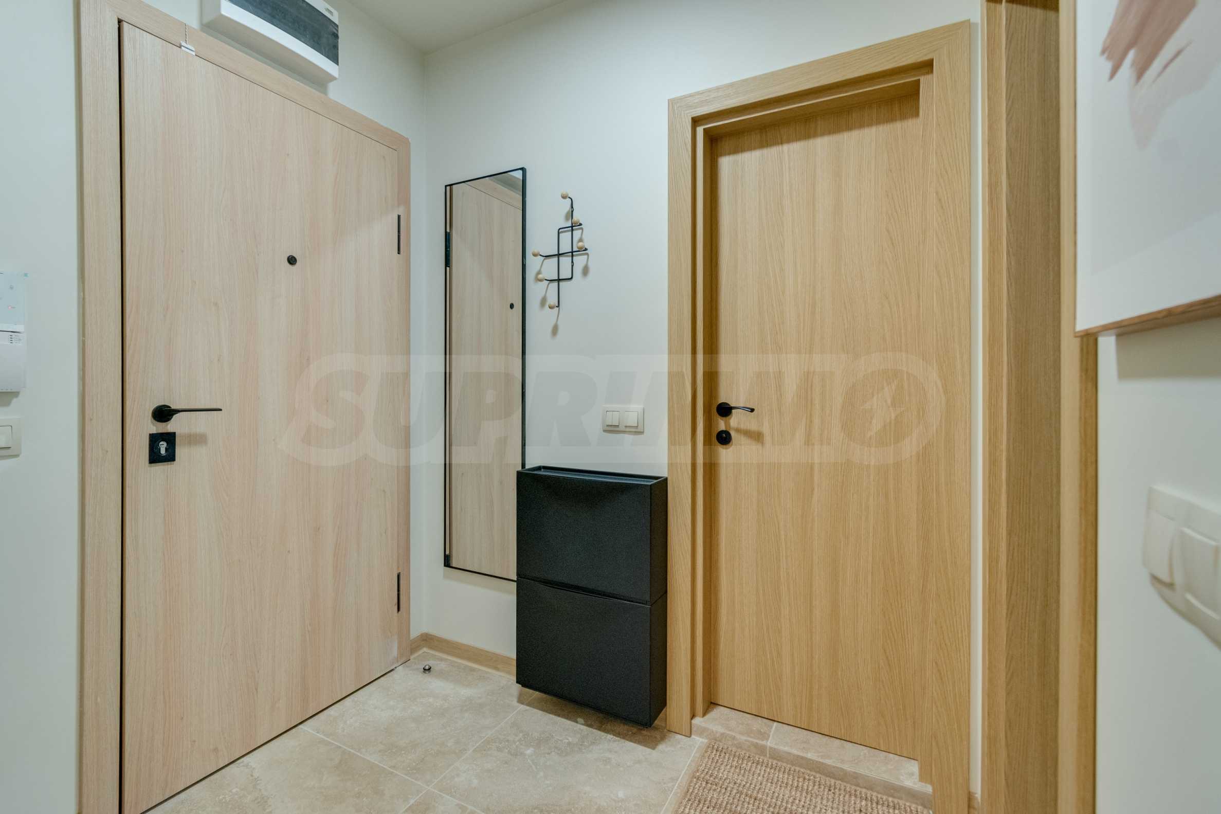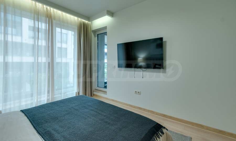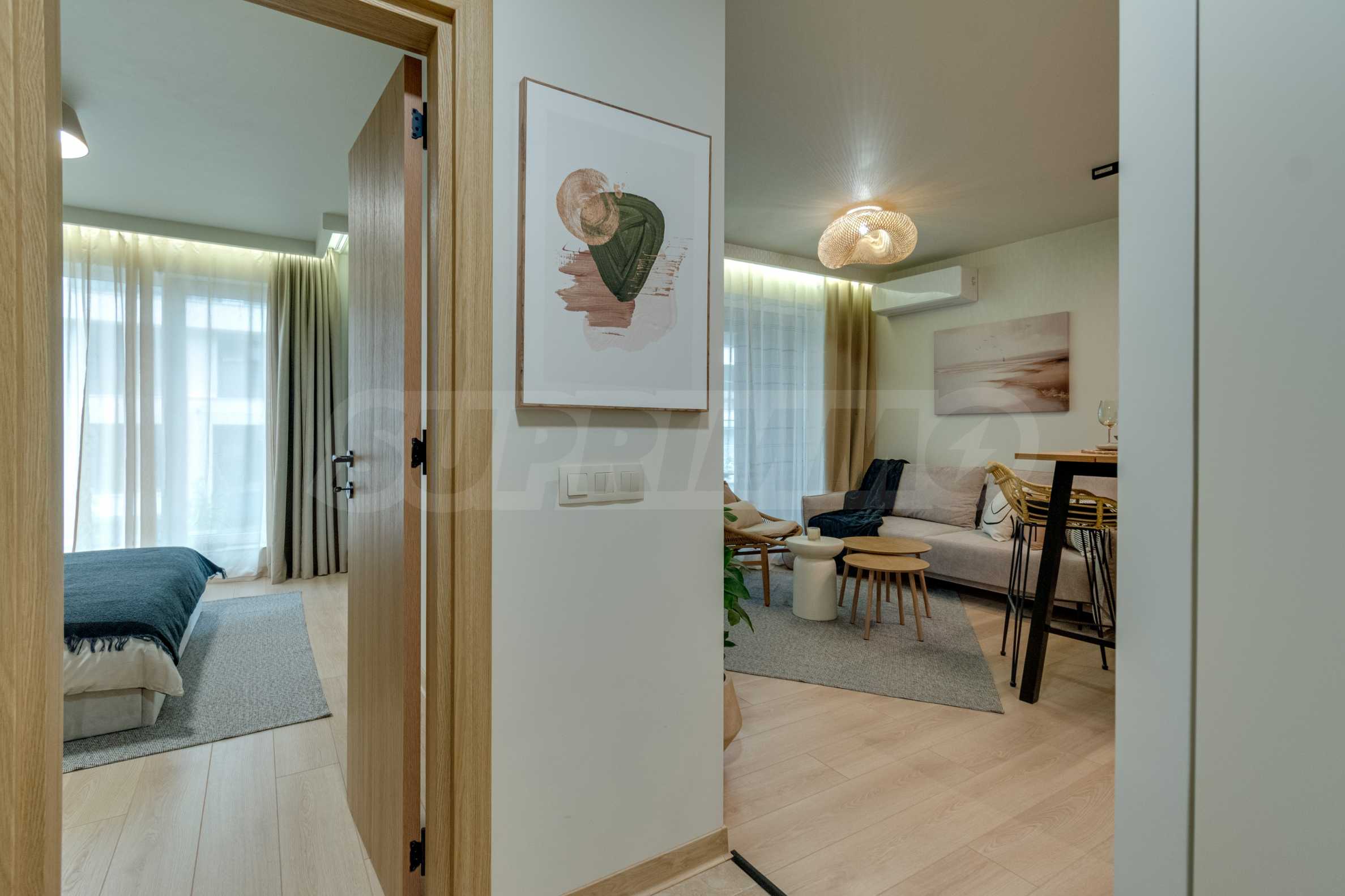 The apartment is fully finished and furnished with high-quality furniture and appliances, selected with attention to every detail.