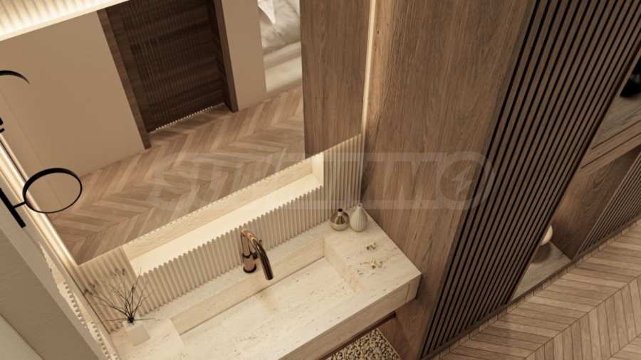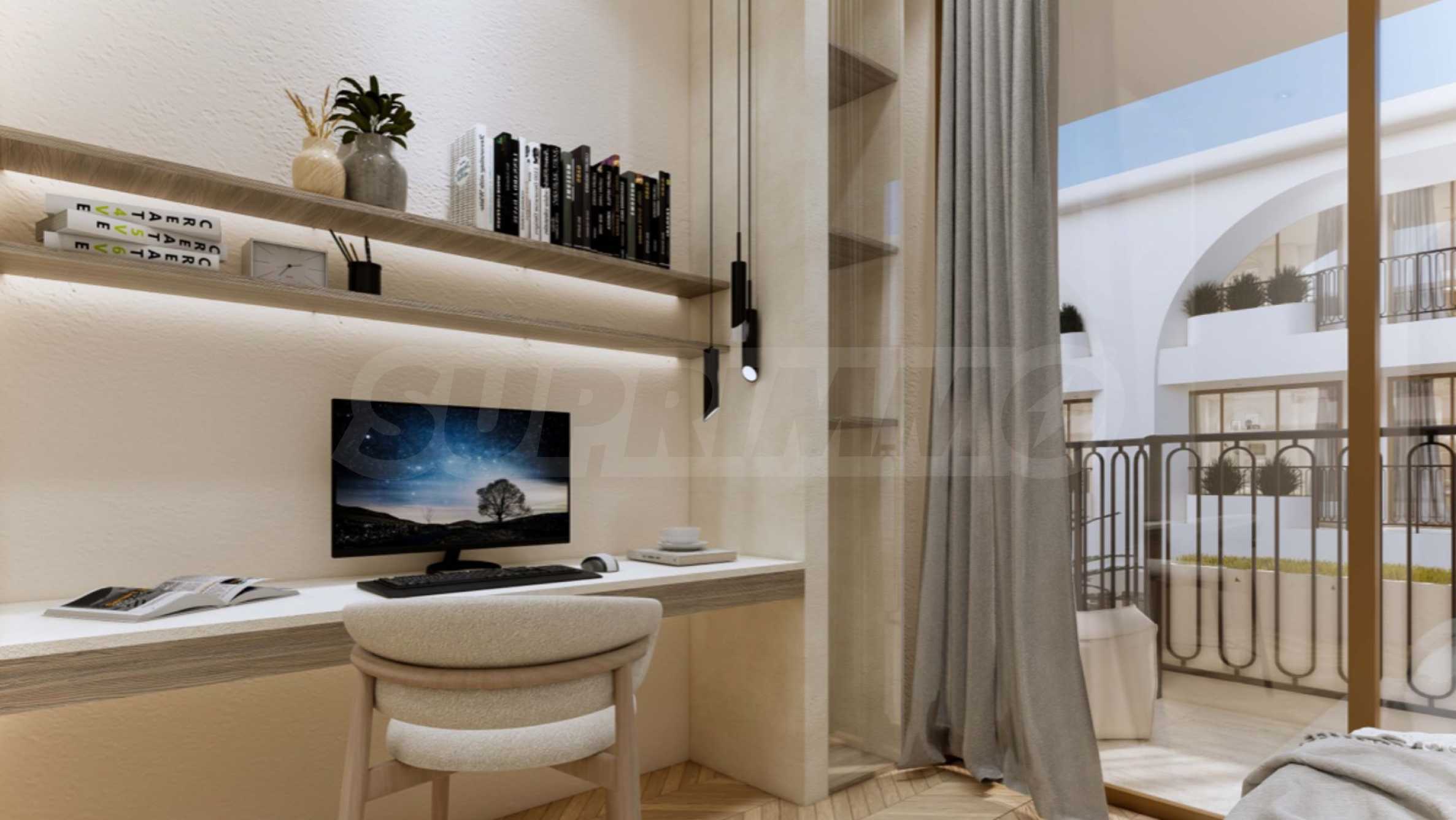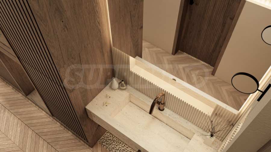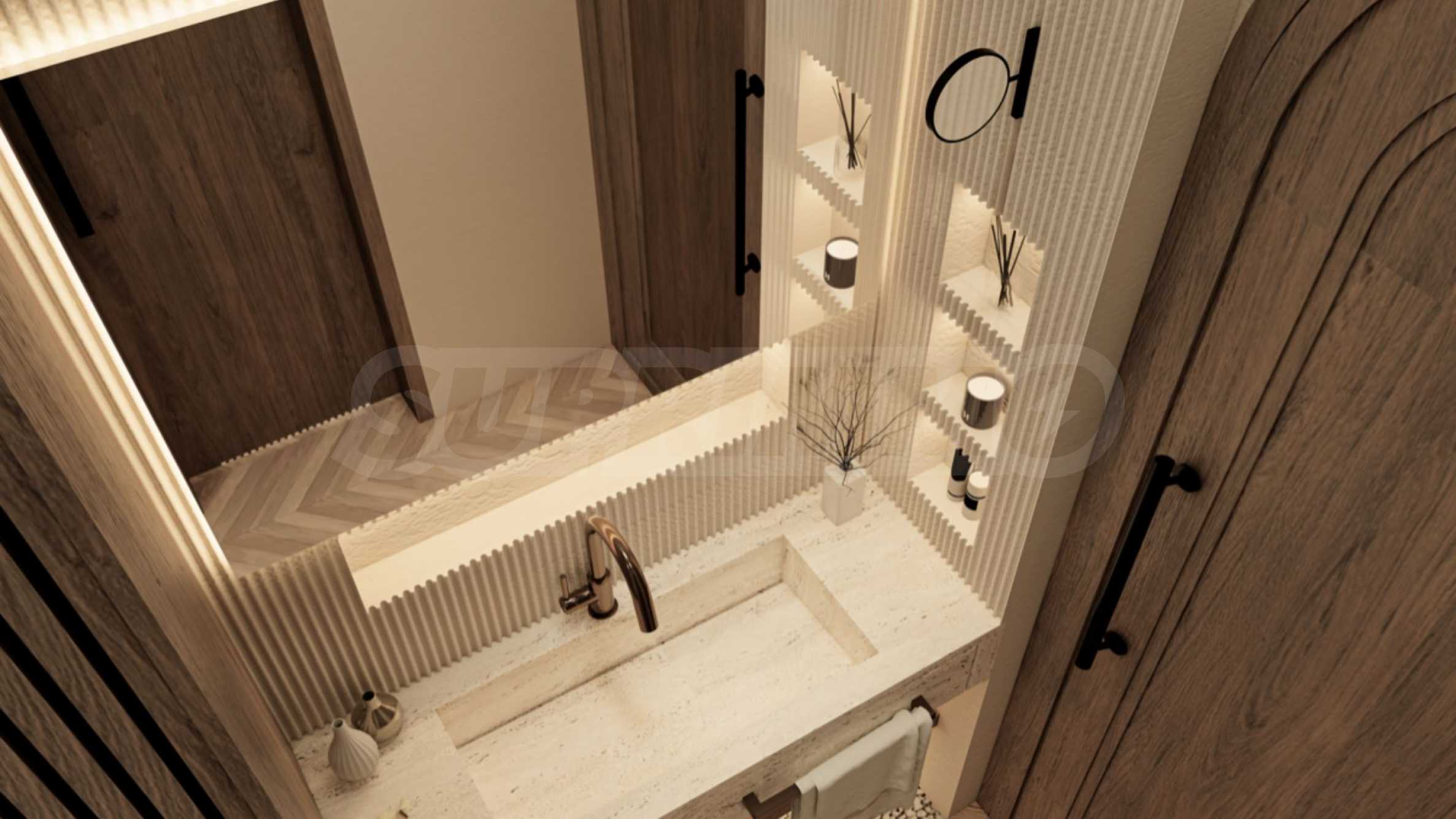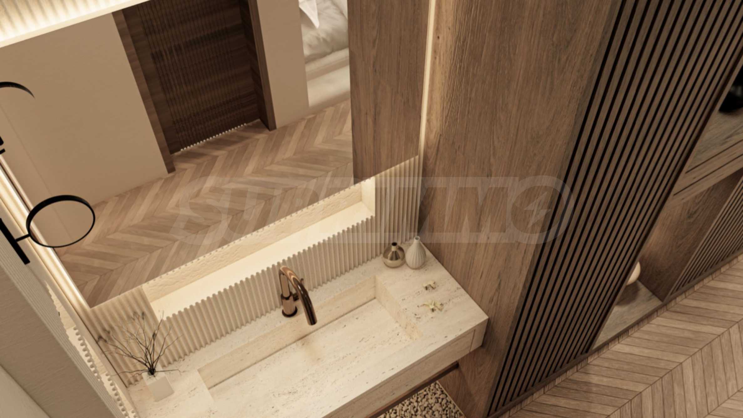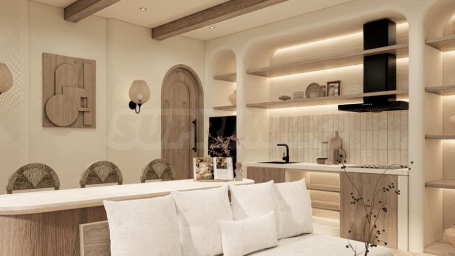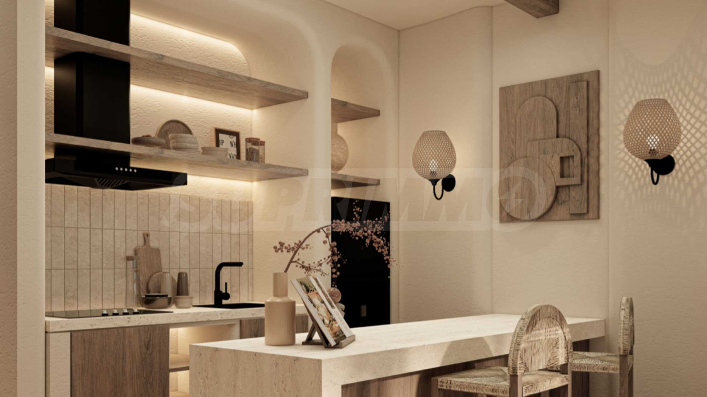The apartments are offered fully furnished and equipped, featuring natural materials for flooring, high-quality appliances, and stylish furniture that together create a harmonious and elegant living environment. The layouts are comfortable and functional, while floor-to-ceiling windows and high ceilings enhance the sense of openness and space. Each residential unit includes a sun-drenched terrace, with the one- and two-bedroom apartments also featuring private swimming pools.