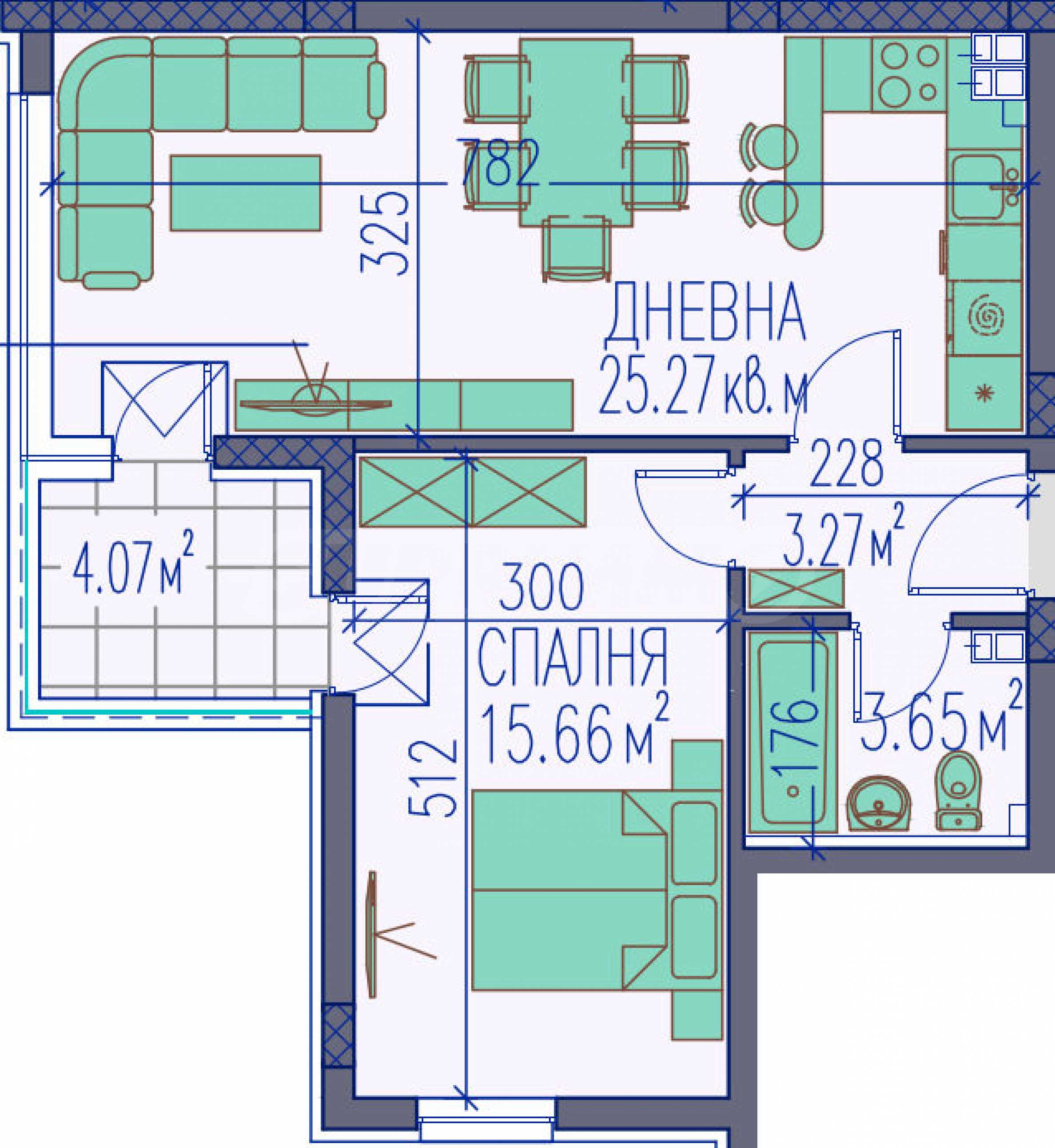 The complex will be luxuriously designed, which guarantees your relaxation and peace of mind. It consists of 4 residential buildings with 7 entrances and will have an elegant courtyard with lots of greenery, which will be used only by the residents. On the ground floor there are commercial premises and underground and outdoor parking spaces are provided, which can be purchased additionally. The apartments are spacious and with one or two bedrooms, providing comfortable and modern housing for you and your family.