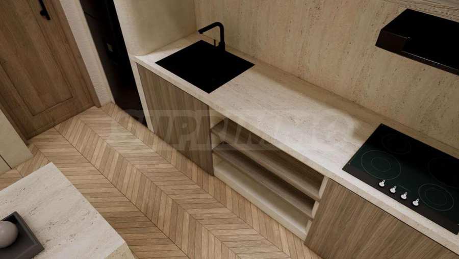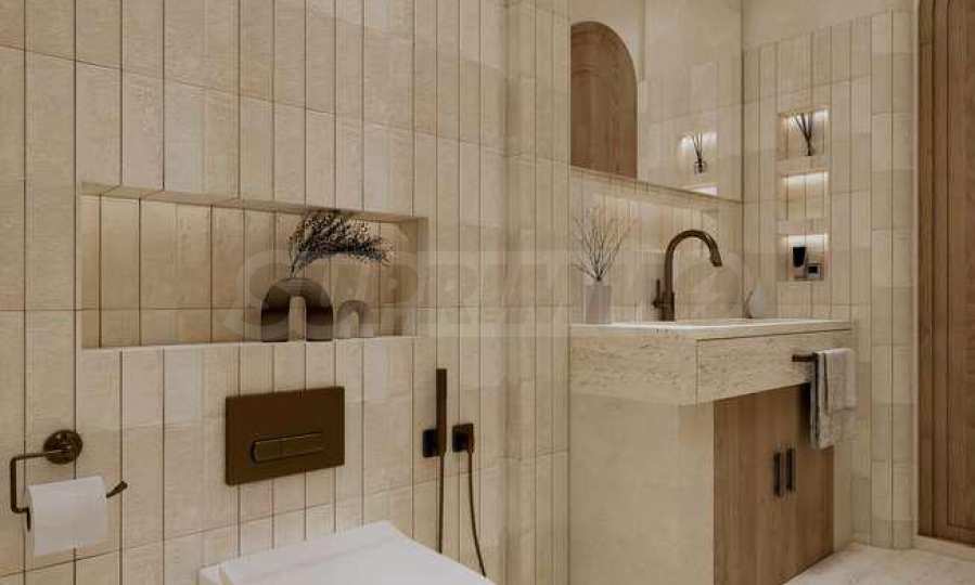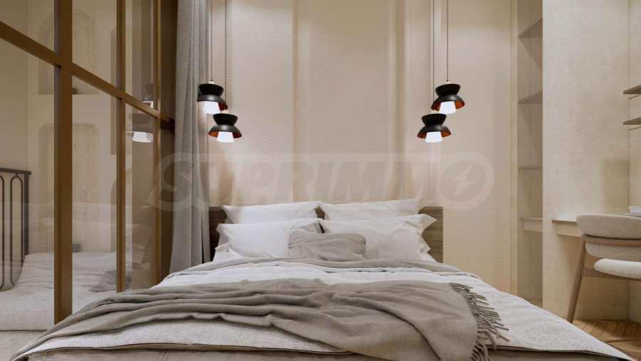 The apartment is offered fully furnished and equipped, using natural materials for the flooring, high-quality electrical appliances and stylish furniture, which create a sense of harmony and elegance. The floor-to-ceiling windows and high ceilings contribute to the feeling of light, space and freedom.