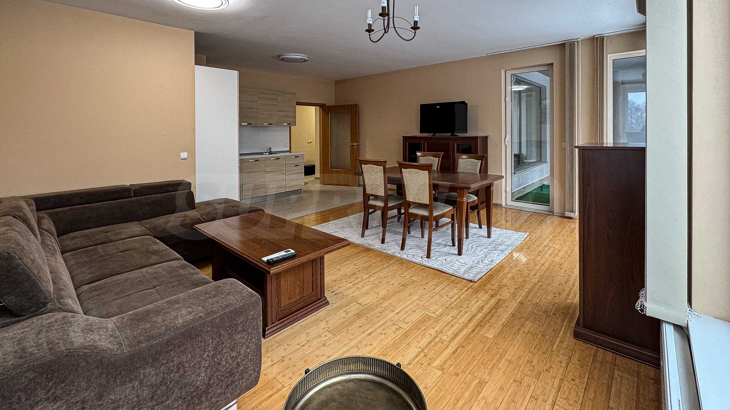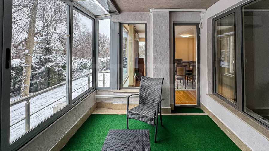 We present for rent a spacious two-bedroom apartment with an area of 115 sq m, located in a gated complex with luxurious common areas in one of the most preferred areas of the capital - Dragalevtsi district.