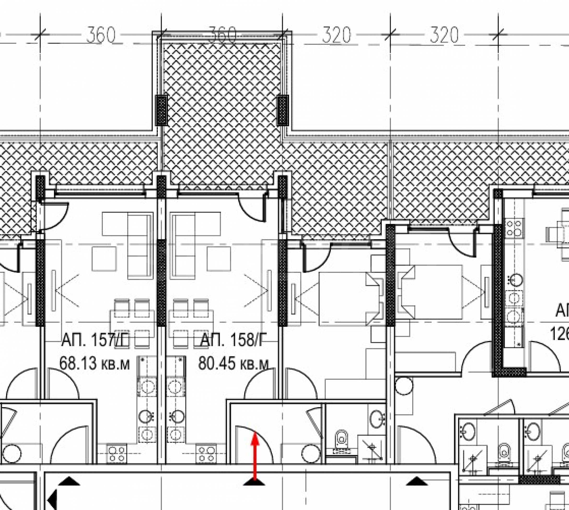 The property is located on the 2nd floor and has a total area of 92.95 m2, net area - 80.45 m2, on which are distributed: entrance hall, bathroom with toilet, living room with kitchen, one bedroom, terrace with access from both rooms. The apartment is being let in a degree of completion according to BDS, with five-chamber PVC joinery Rehau, with triple glazing and an armored entrance door.