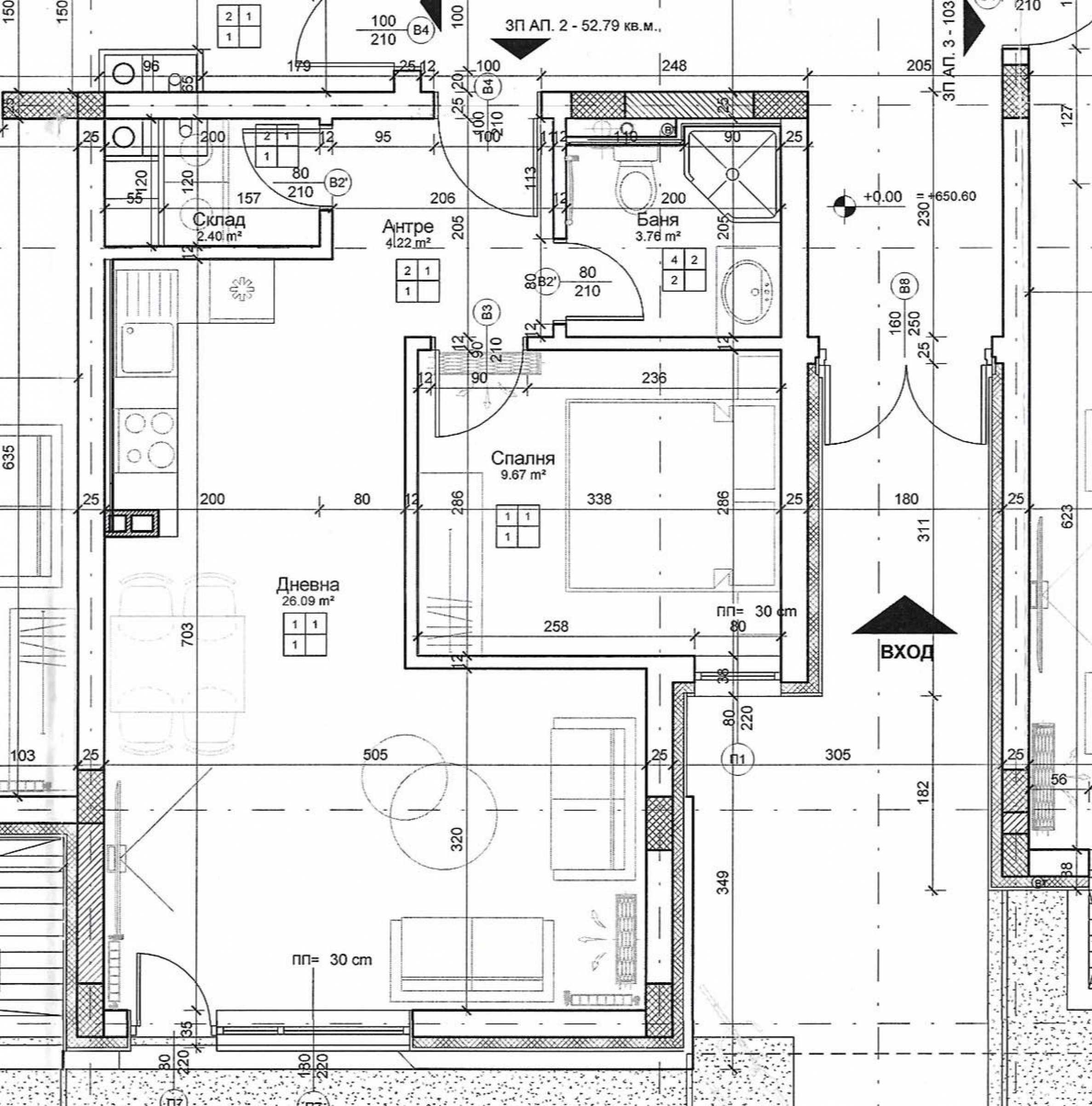 • Net area: 52.79 m2.