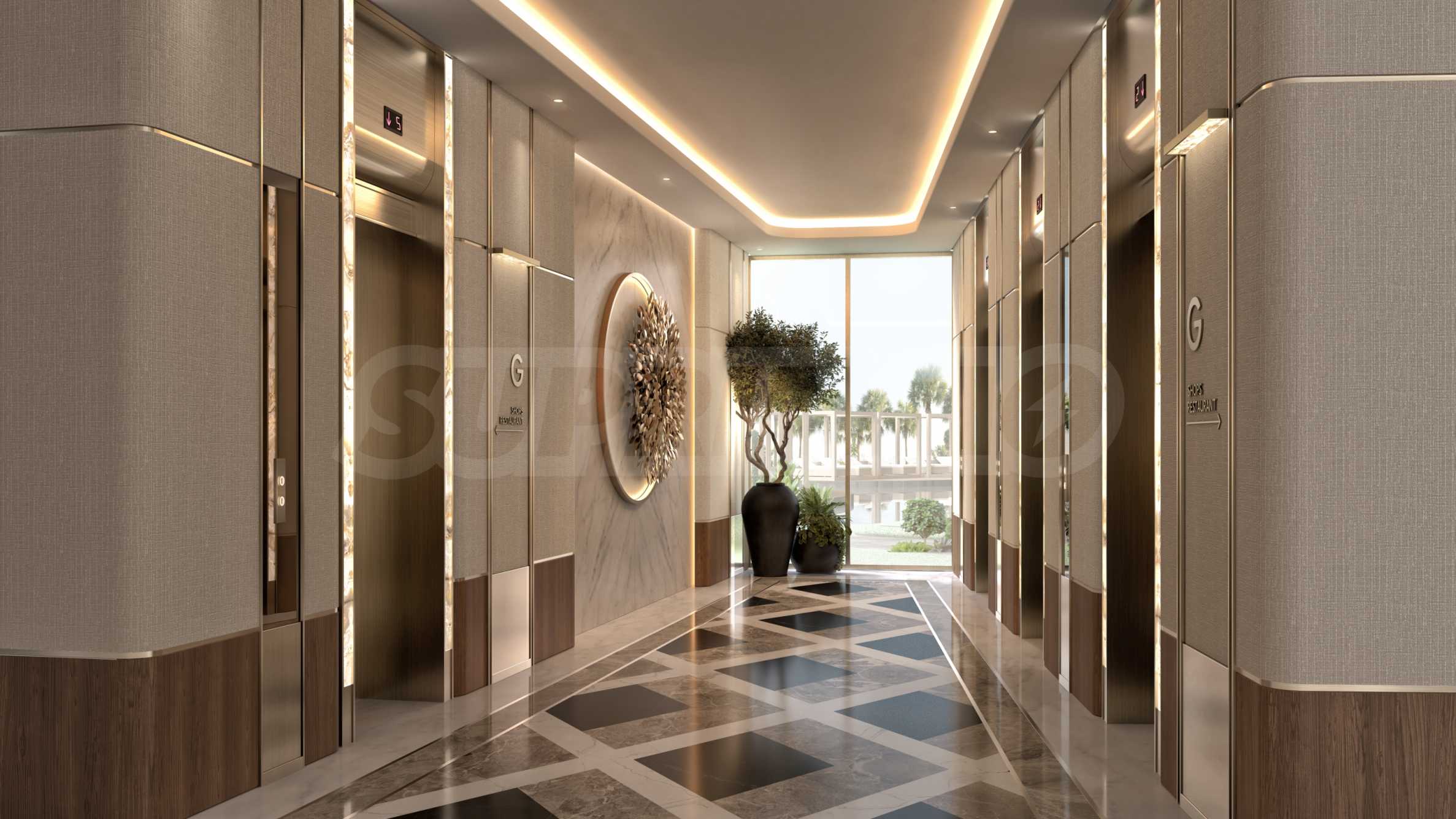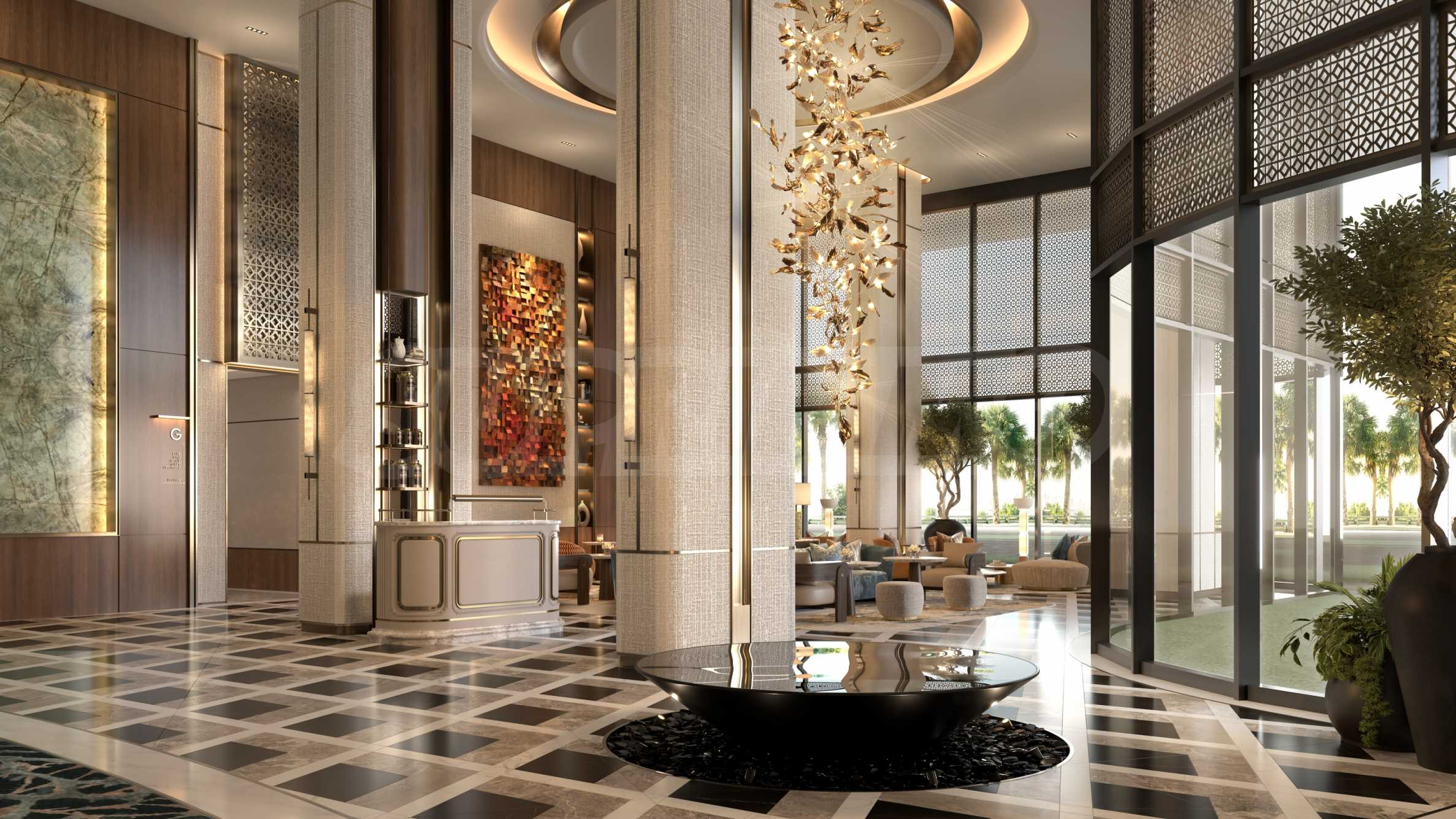 Taj Wellington Mews will be an extension of the values of the Taj hotel brand and will offer its residents excellent treatment and a high level of service even before you enter the building. Valet parking will take care of your car, and you can enjoy the beautifully designed spaces in front of the building, which combine greenery, small water pools and decorative elements. The lobby is luxuriously furnished and has double-height ceilings, which enhances the feeling of elegant luxury that the building brings.