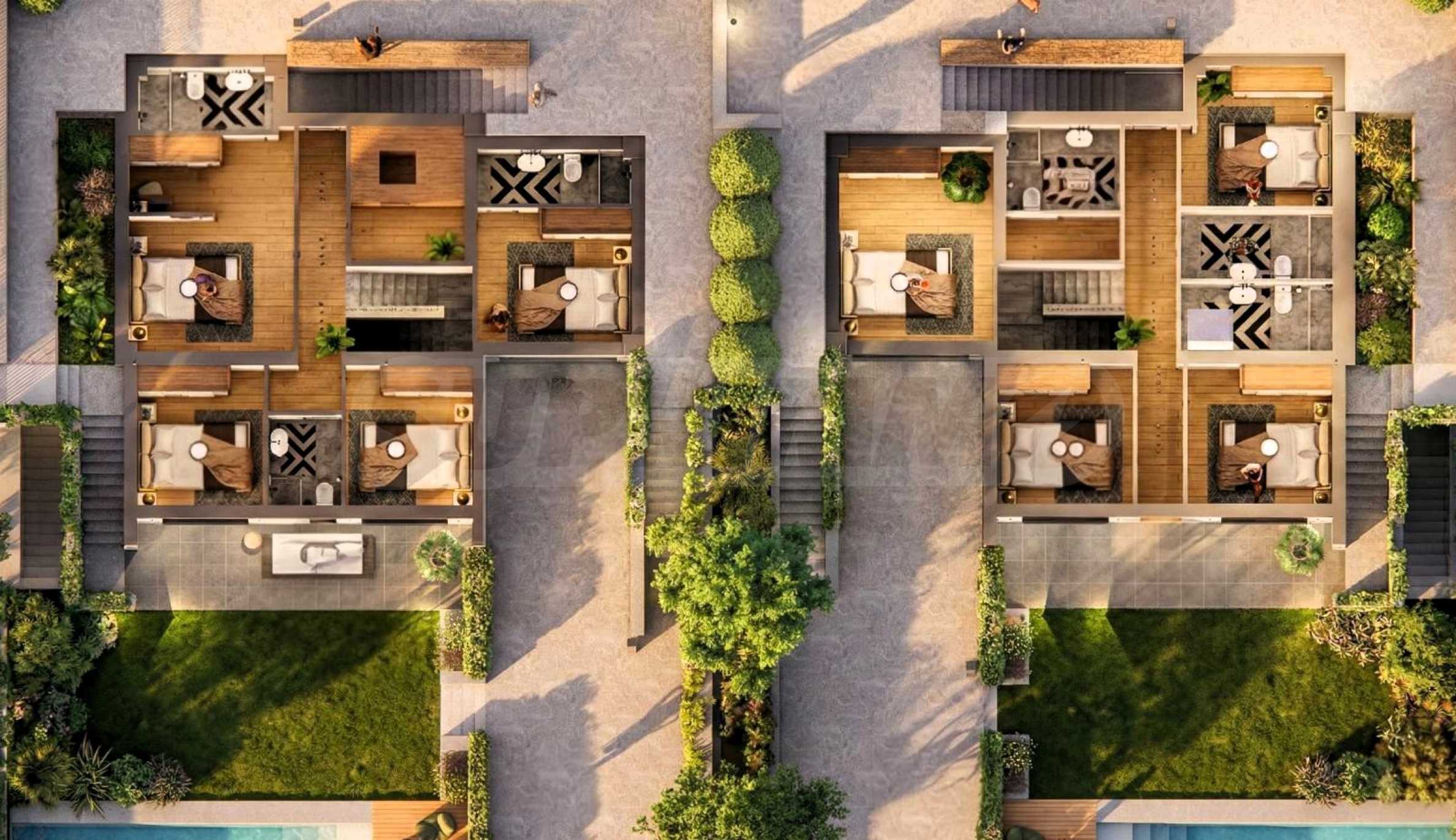 Level 1 (Night Area) : Four comfortable bedrooms and three modern bathrooms, providing maximum privacy and access to the garden.