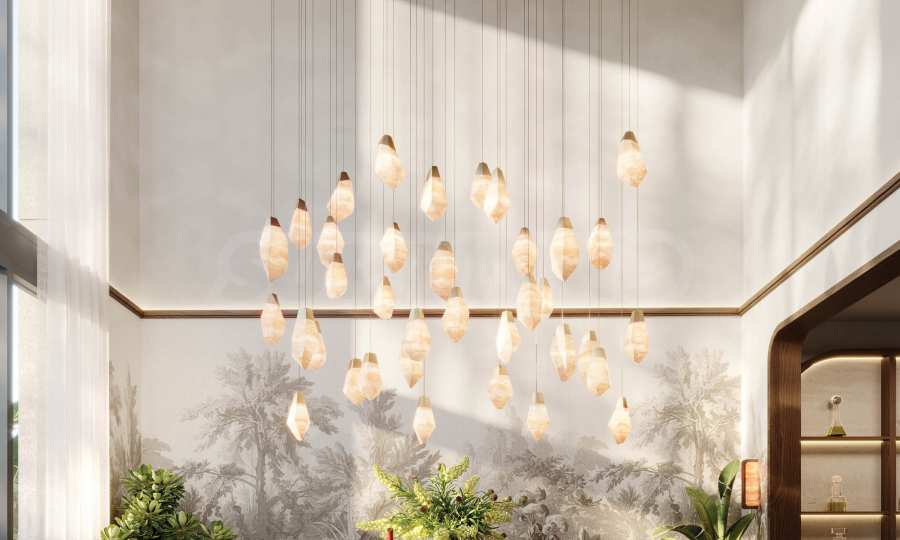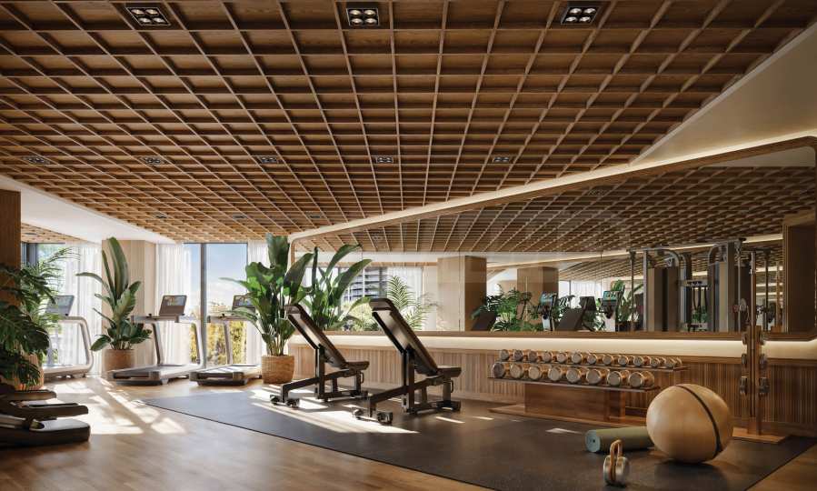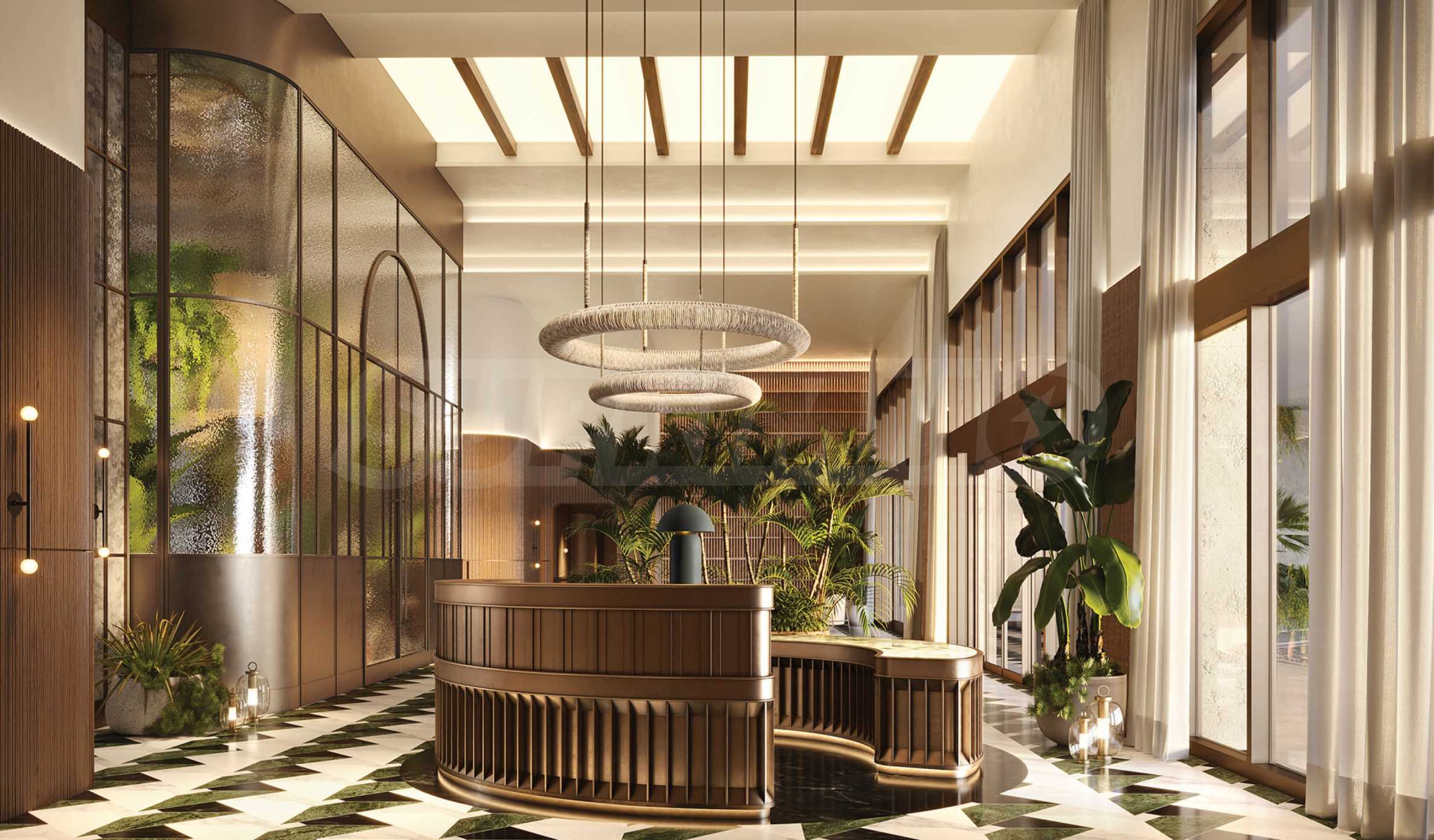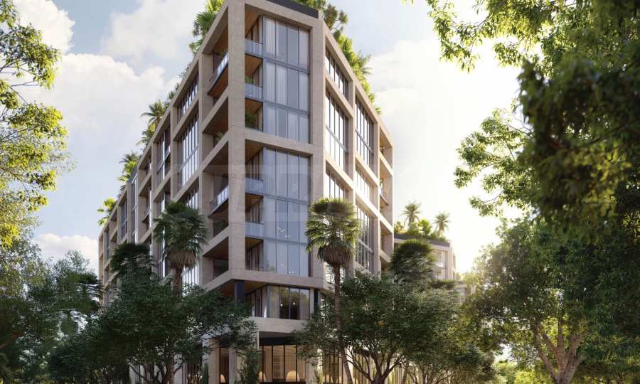 The project includes 194 residences spread over 8 floors, with a spacious entrance lobby filled with natural light. The architectural concept follows an open indoor-outdoor design that seamlessly connects the interior with nature. Restorative interior gardens and subtle aromatherapy accents contribute to the feeling of harmony.