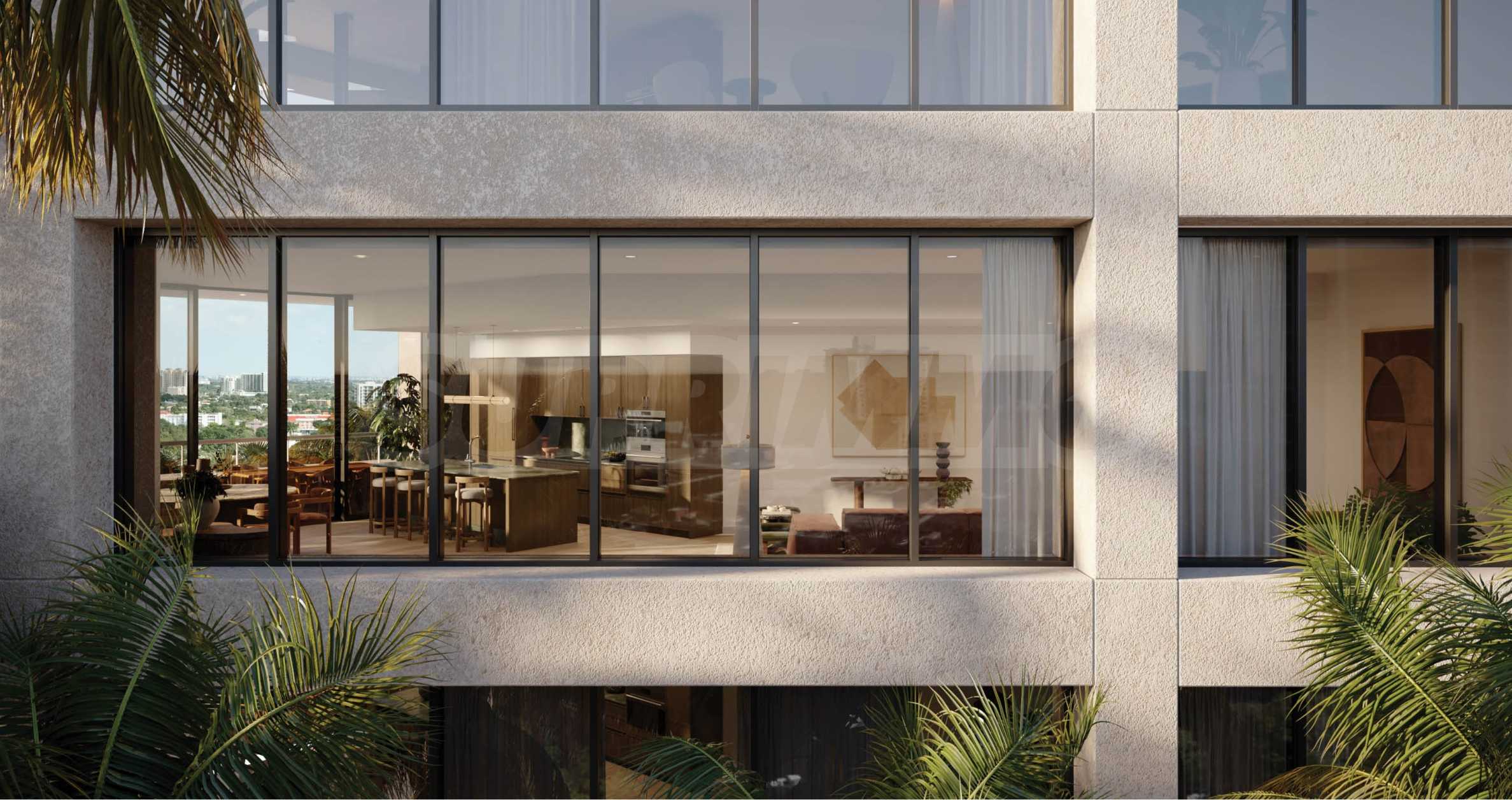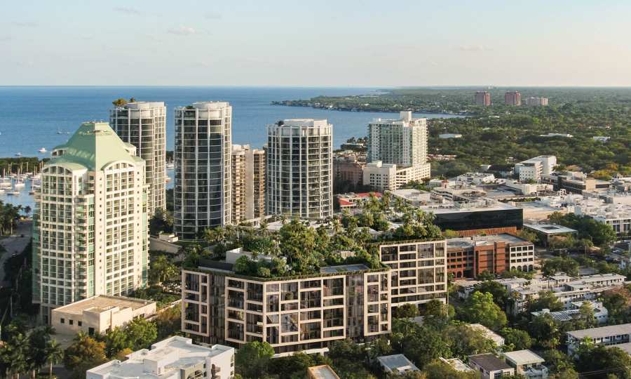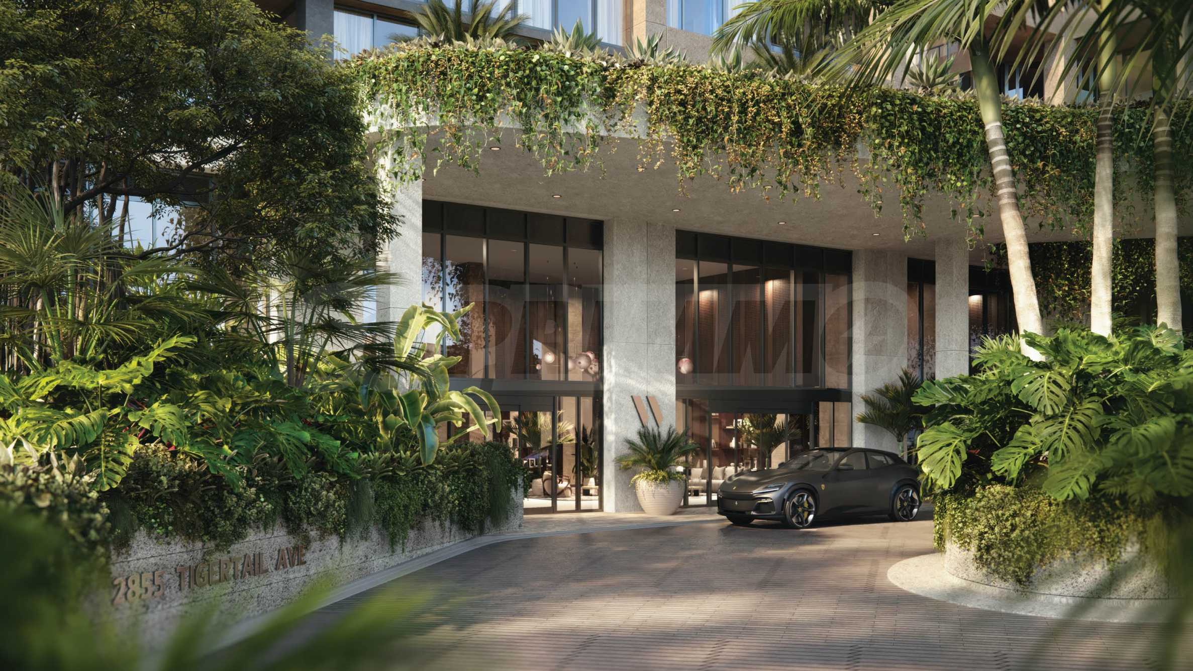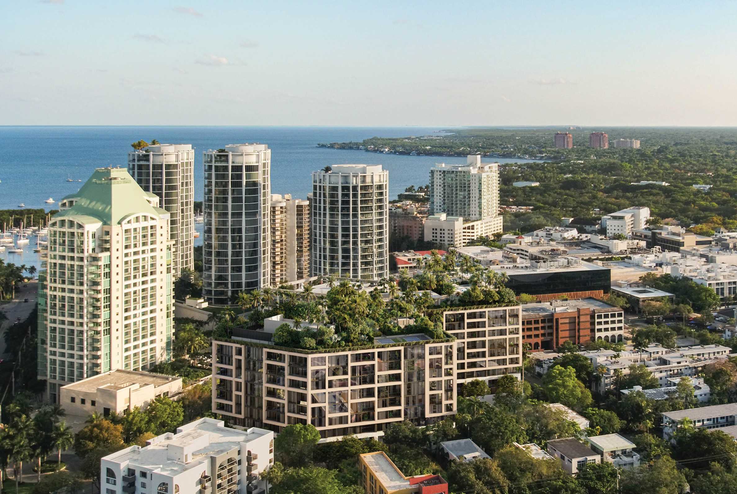 The building is designed with a sustainable focus and holds Florida Green Building Design Silver certification, with natural light optimized throughout. Some of the residences are townhouses with separate entrances and private gardens for added privacy.