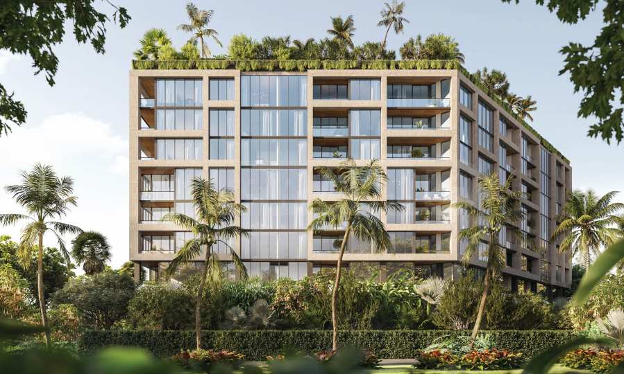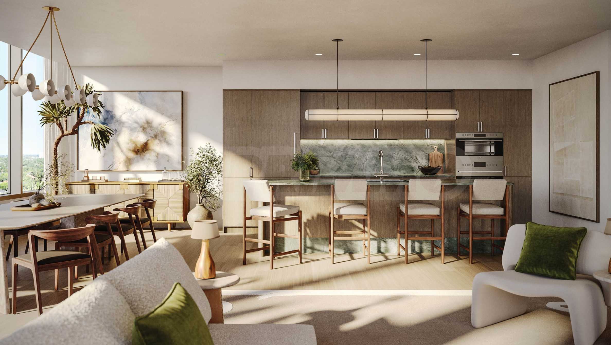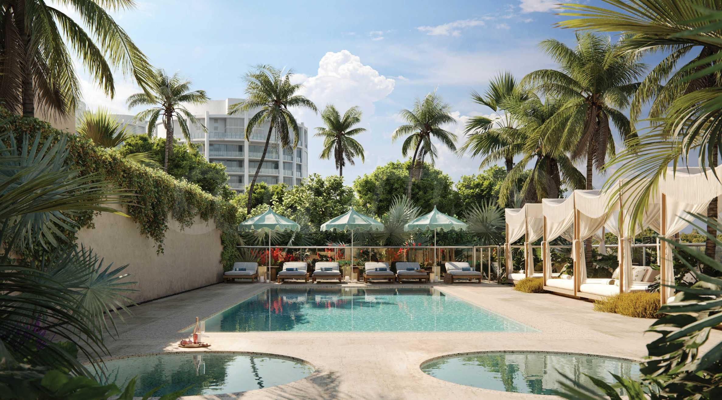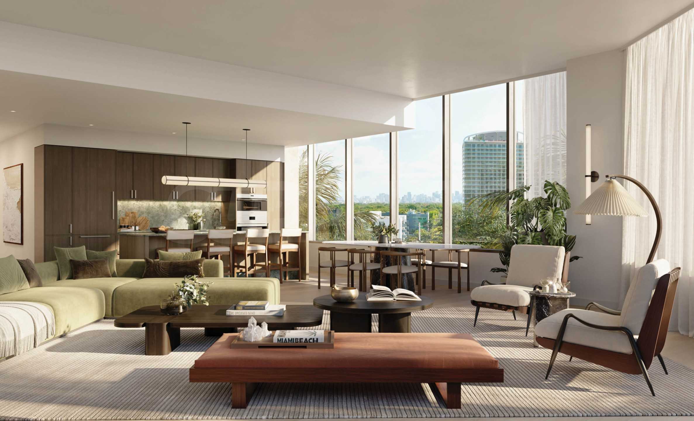 The building is designed with a sustainable focus and holds Florida Green Building Design Silver certification, with natural light optimized throughout. Some of the residences are townhouses with separate entrances and private gardens for added privacy.