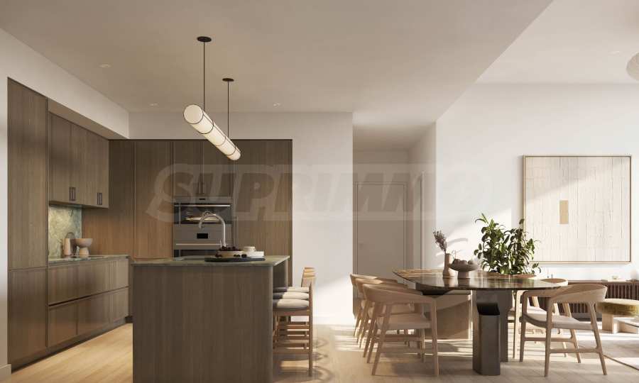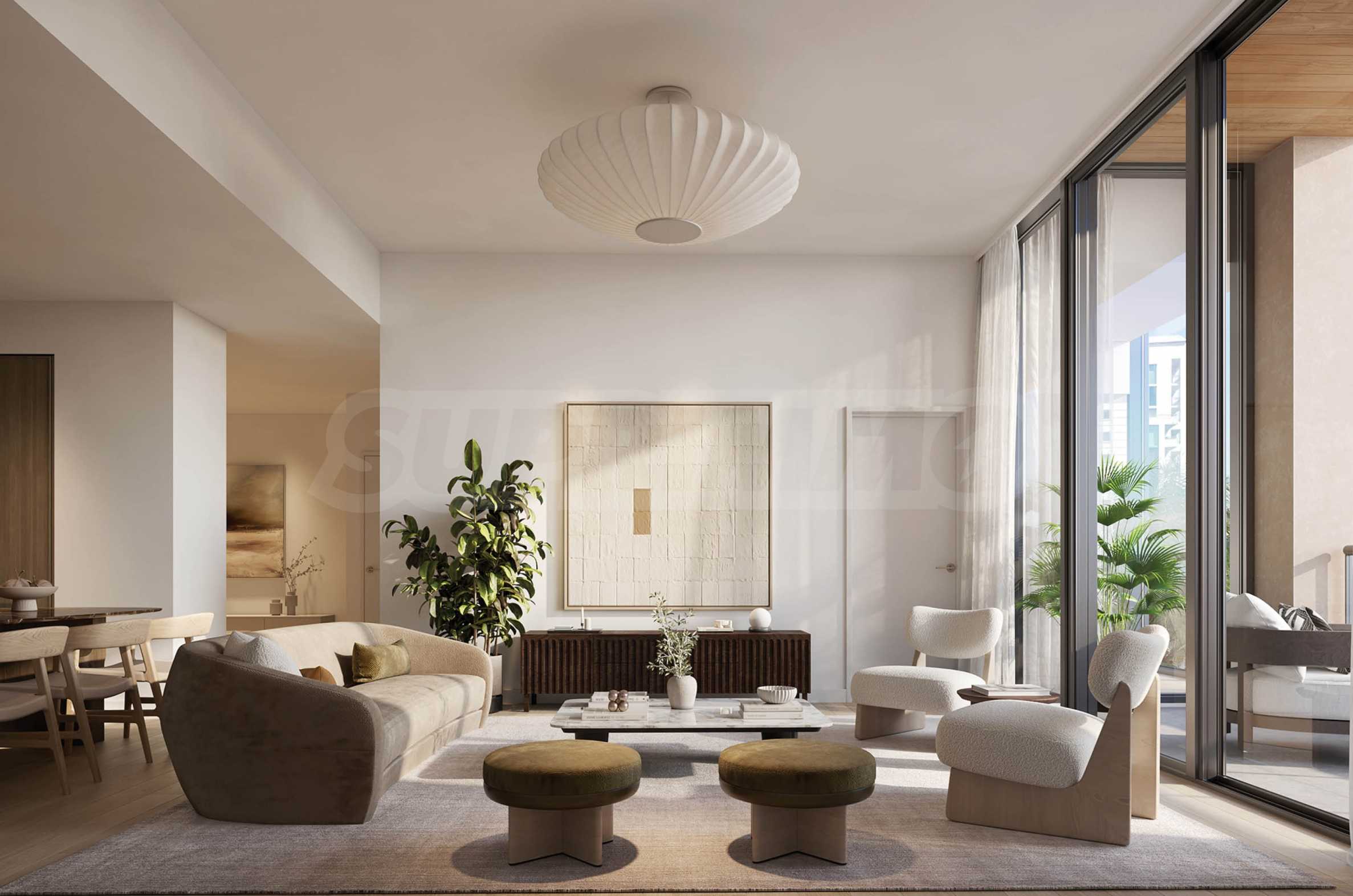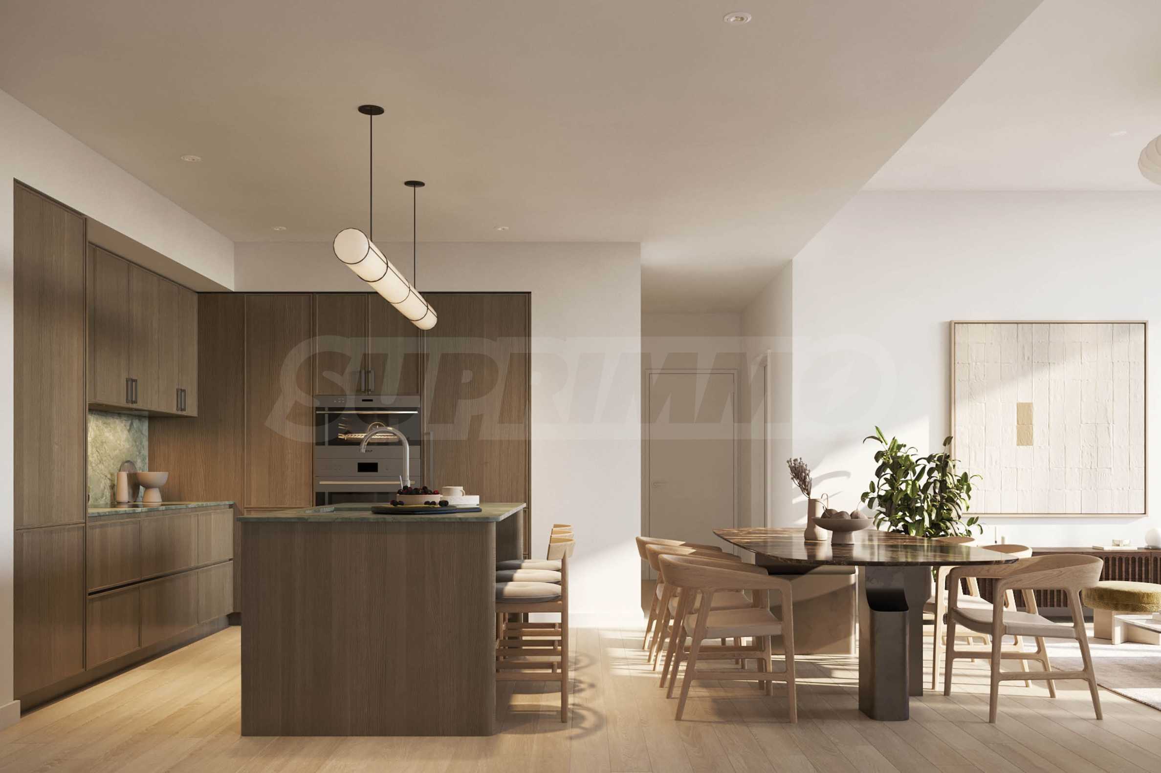 This exceptional 412.21 sq m apartment is located on the top floor and offers impressive views of the green spaces and the city panorama. The layout is spacious and functional: a living room with a kitchen and dining area, four bedrooms with en-suite bathrooms, a separate guest toilet and a sunny terrace.