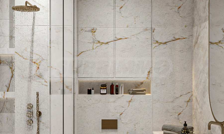 The apartment we have chosen to present to you is located on the first residential floor of the building and has a total area of 90.97 sq m. Thanks to the panoramic floor-to-ceiling windows and the impressive height of the ceilings, the apartment is distinguished by an abundance of natural light and a spacious, airy atmosphere.