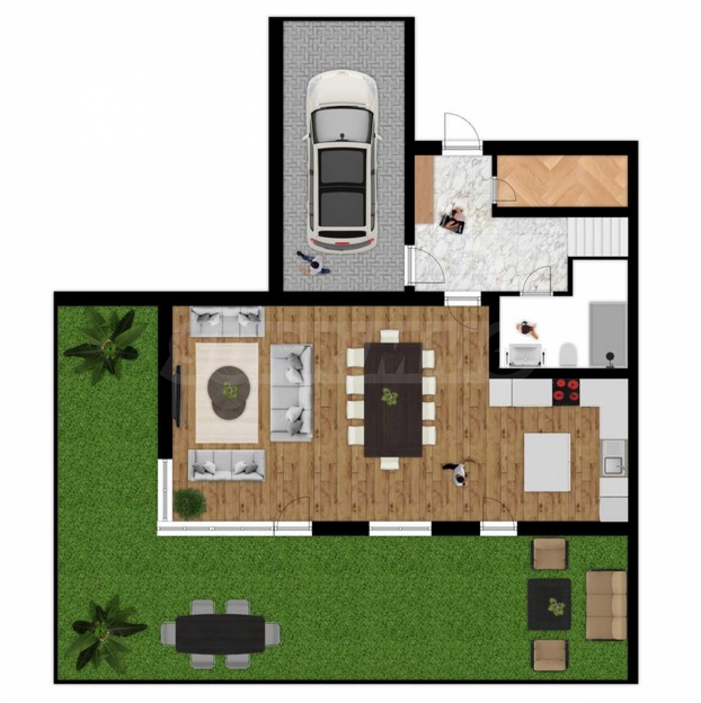 The complex will be gated with controlled access, guaranteeing security, tranquility and a high standard of living. The maintenance of the common areas is organized, with a monthly fee of 35.28 euros (69 leva) excluding VAT. A recreation area is also planned in the common areas.