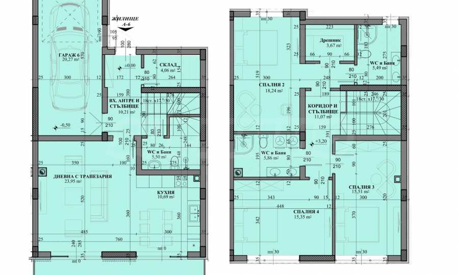 The house with a total area of 190.49 sq.m is on two levels and has the following distribution: