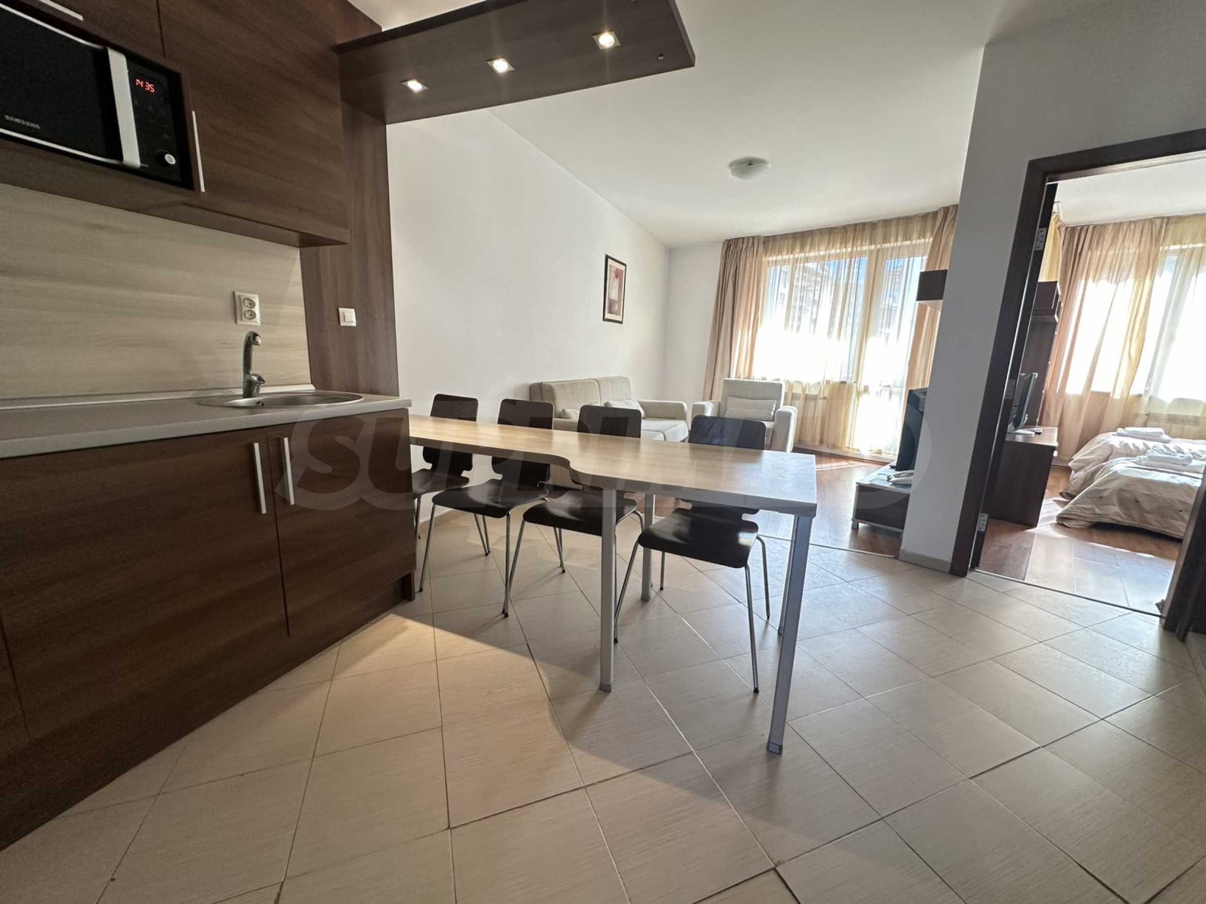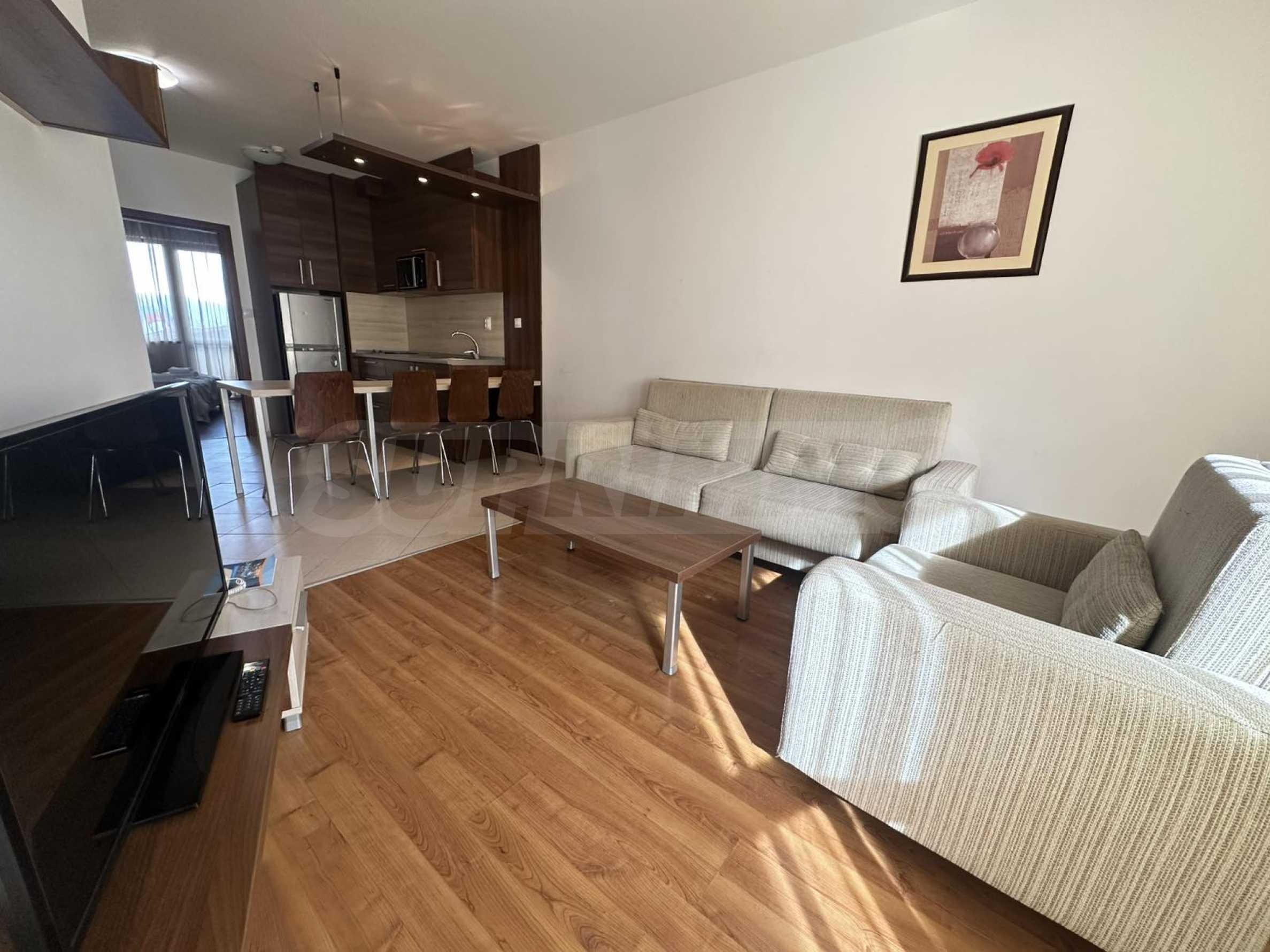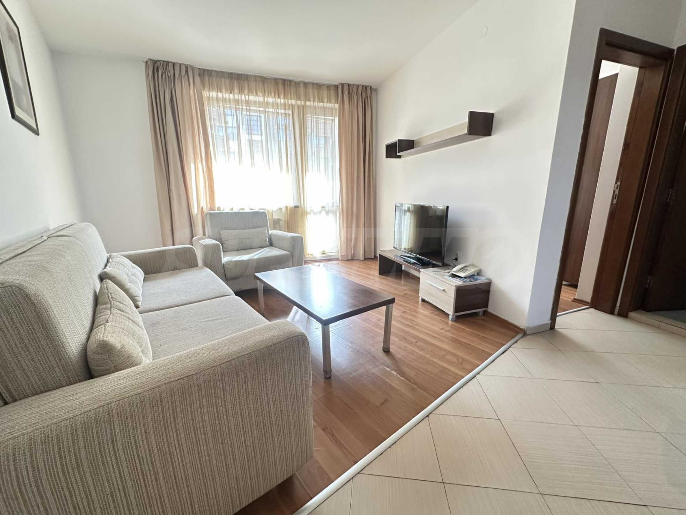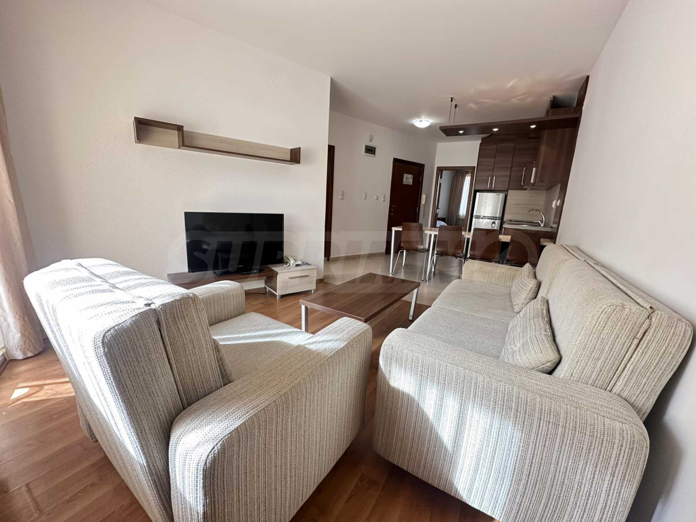 The maintenance fee is 15 euros per sq m per year and includes cleaning and lighting of the common areas, elevator, cable TV, reception, SPA center with indoor and outdoor swimming pools.