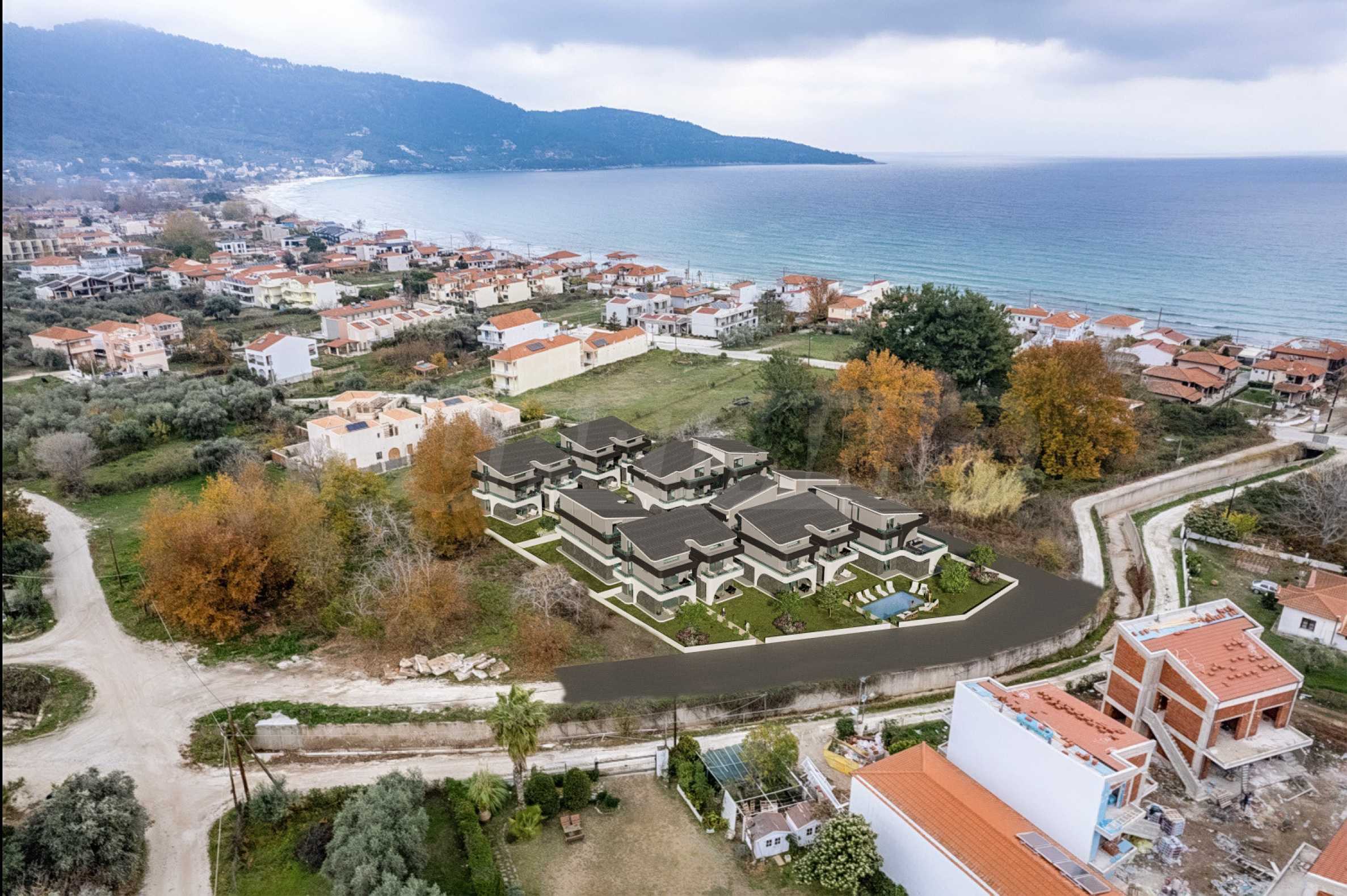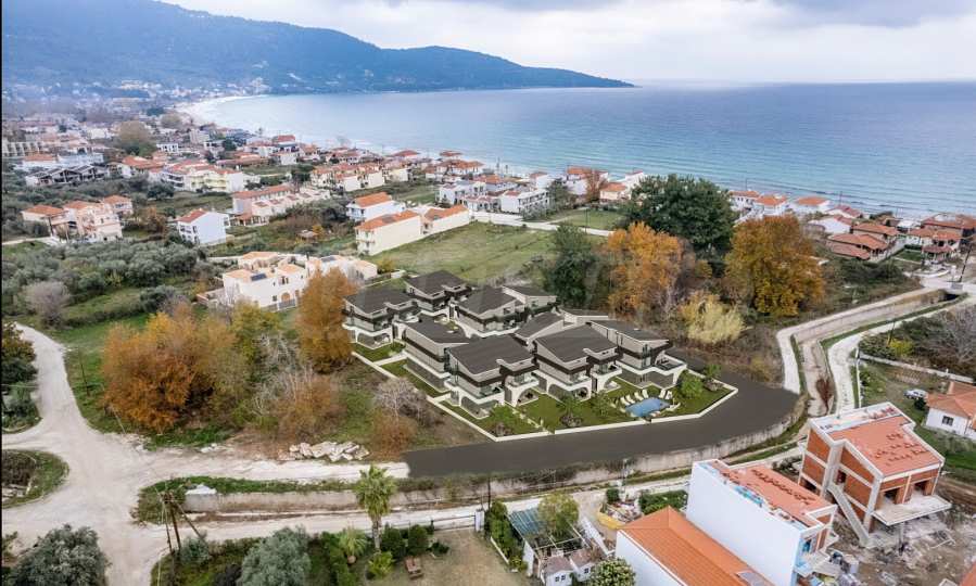 We present a two-bedroom apartment in Callisto - a residential complex located 150 meters from the seashore in the picturesque resort village of Skala Potamia. The project skillfully combines the comfort and tranquility of island life with a modern living concept, including two-bedroom and three-bedroom apartments, landscaped areas and a swimming pool - a natural extension of everyday life by the sea.