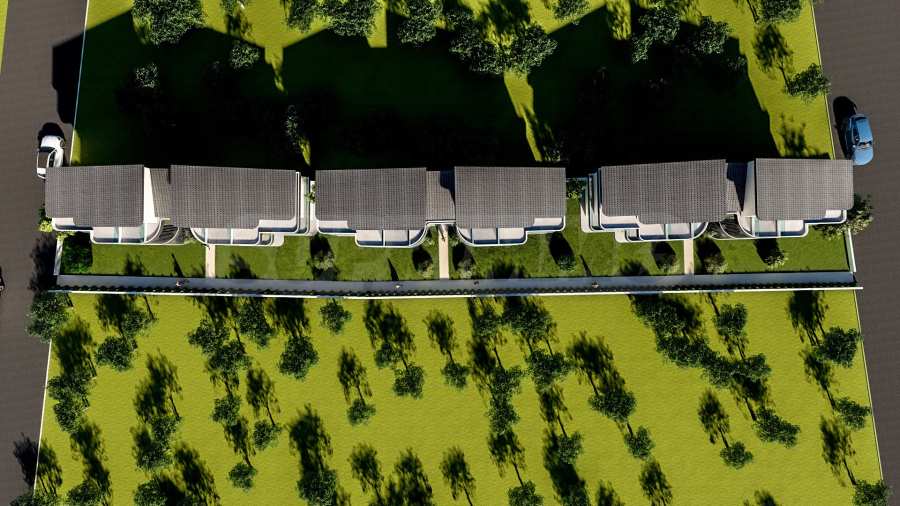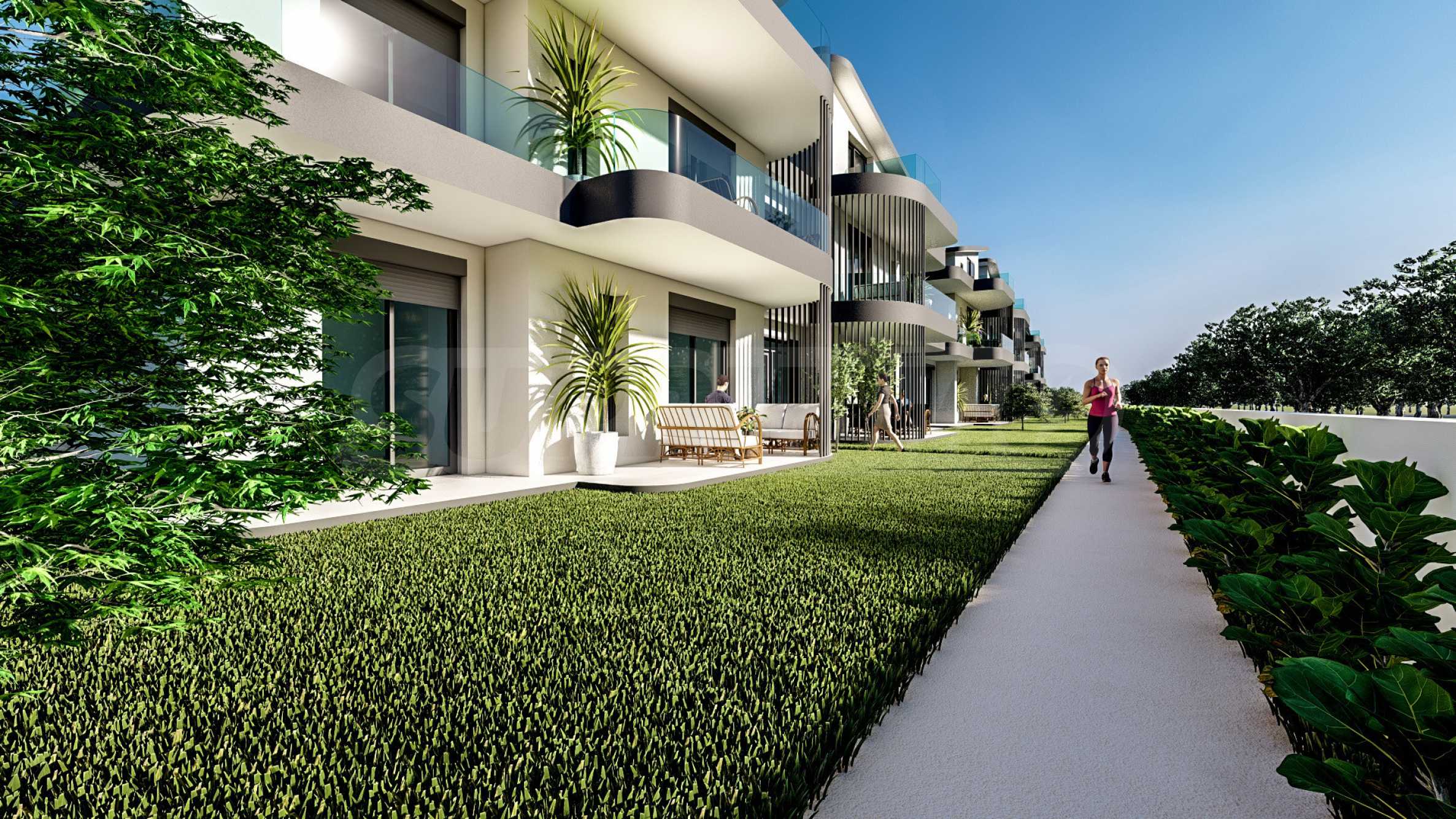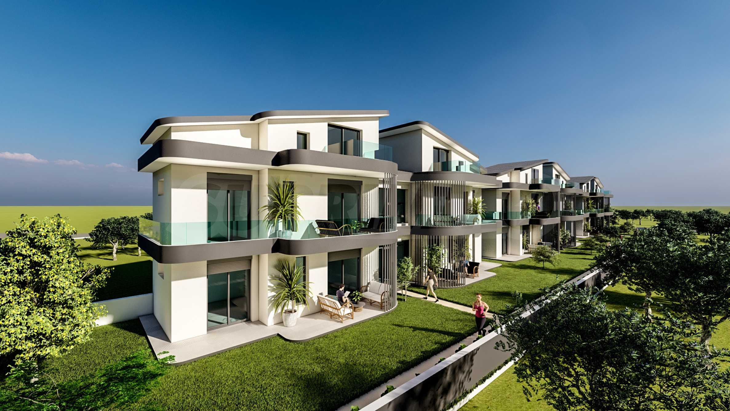 The project consists of three boutique buildings, each comprising just four apartments, thoughtfully designed to ensure maximum comfort and a sense of privacy. The ground level facilities functional one-bedroom apartments with spacious verandas, while the second and third floors offer modern two-bedroom duplexes with sunny balconies. All residences are delivered fully finished “turnkey,” including installed entrance and interior doors, flooring, lighting, fitted kitchens, and fully equipped bathrooms—allowing for immediate move-in or rental. The space between the buildings is designed as a richly landscaped garden, creating a harmonious and tranquil environment that naturally complements the surrounding scenery.