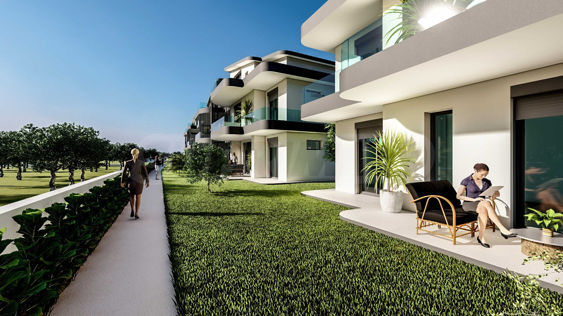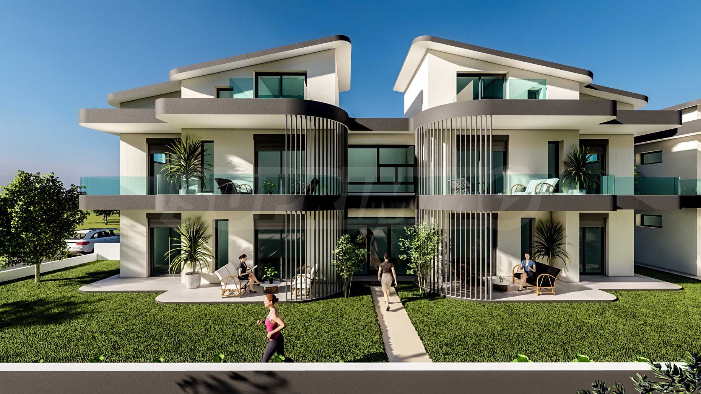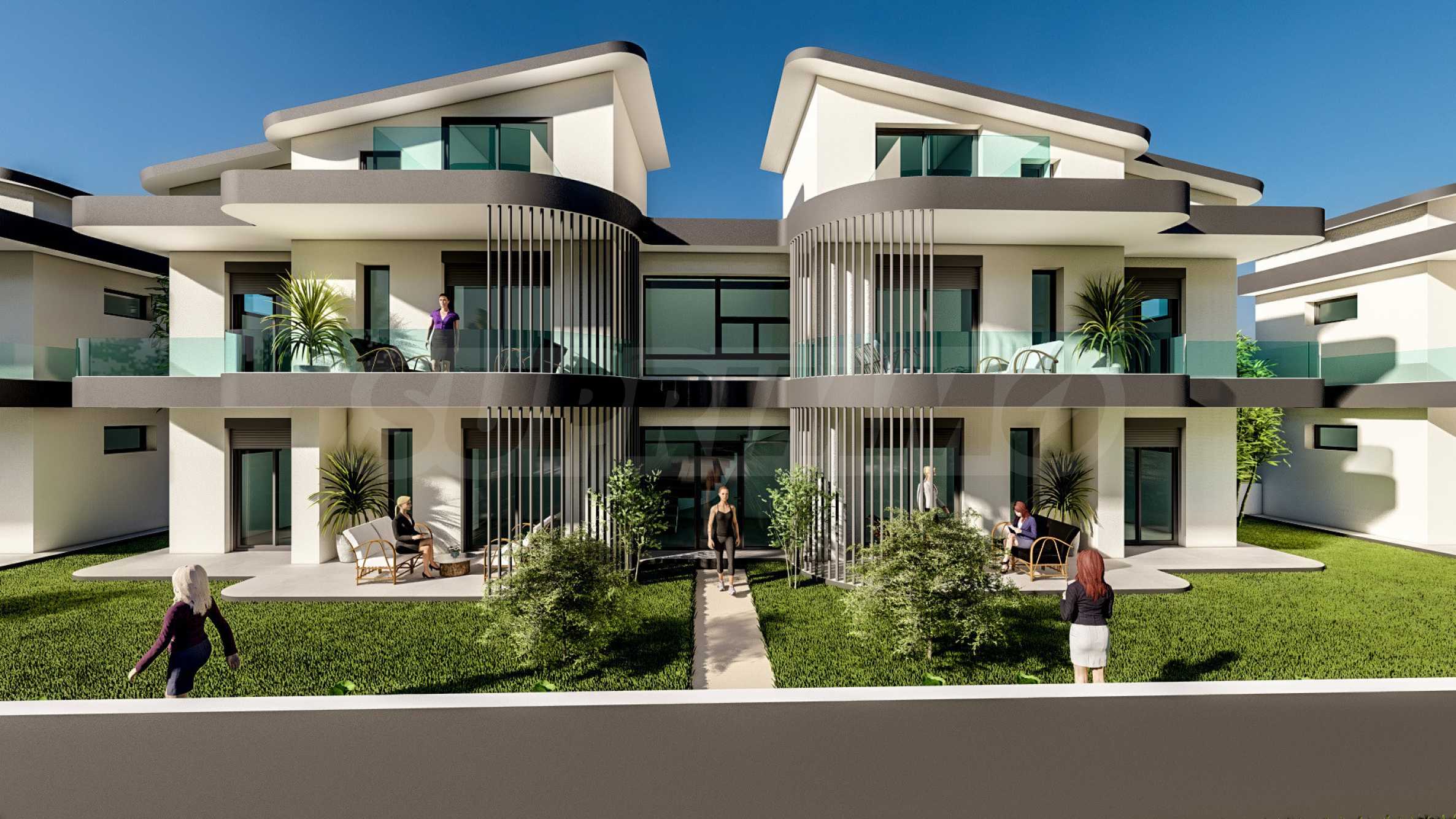 The project consists of three boutique buildings, each with four apartments, providing privacy and comfort to its residents. All apartments are sold fully completed "turnkey" - with installed entrance and interior doors, flooring, lighting, equipped kitchens and fully finished bathrooms, which allows for immediate move-in or rental. The space around the buildings is designed with rich landscaping, contributing to a harmonious and relaxing environment.