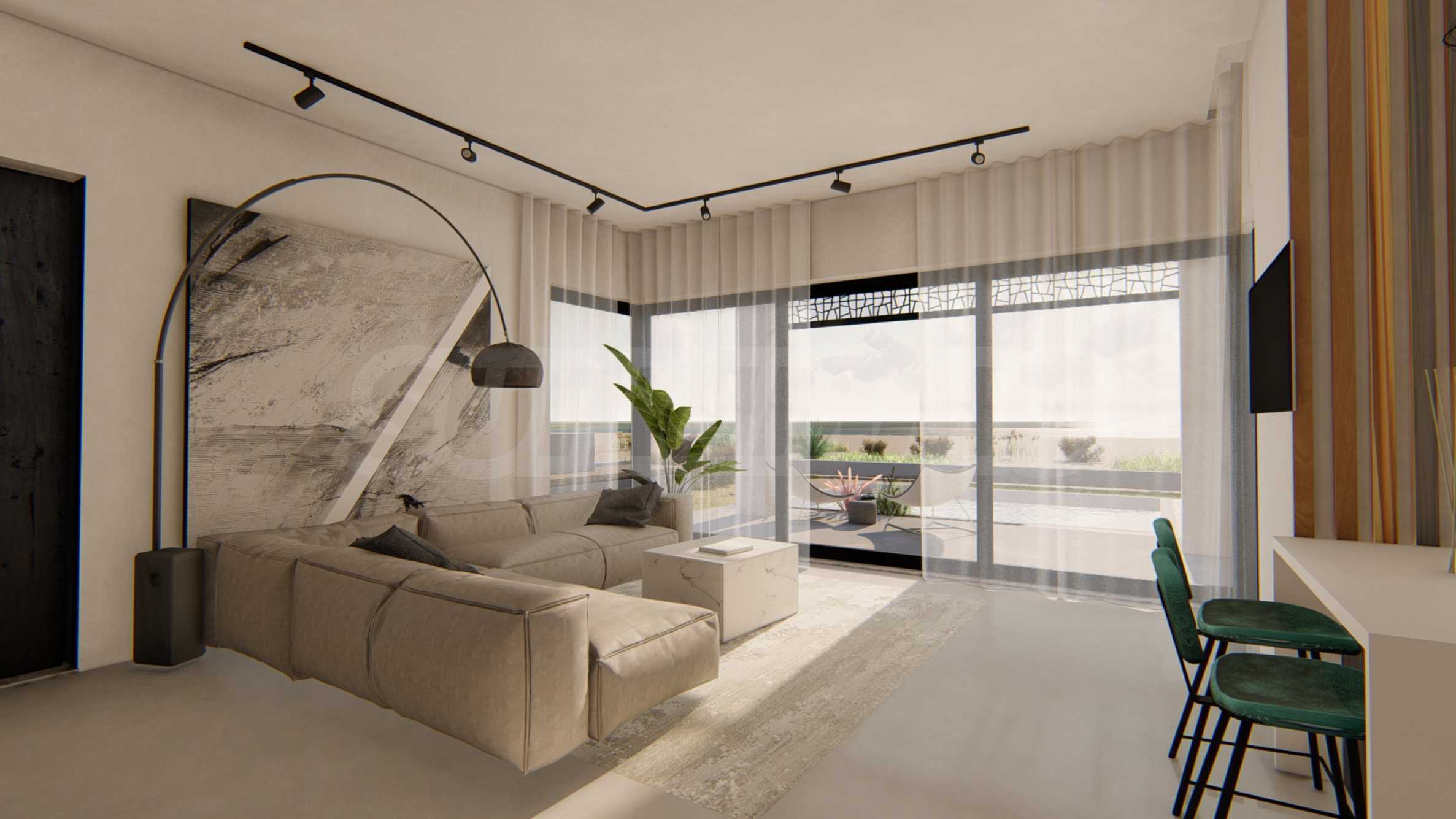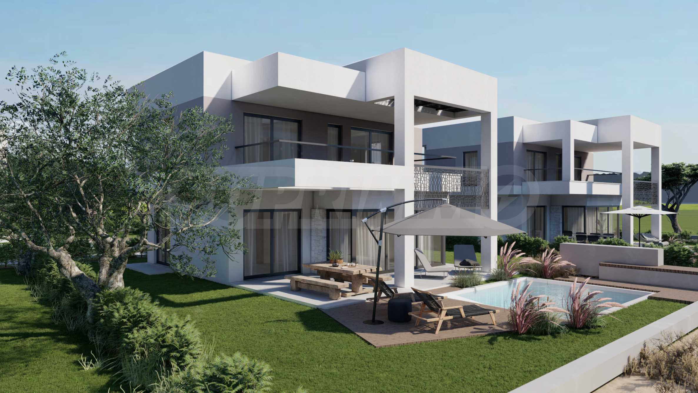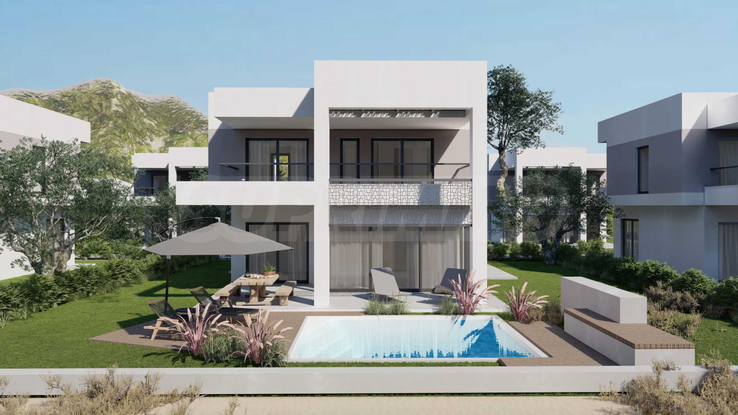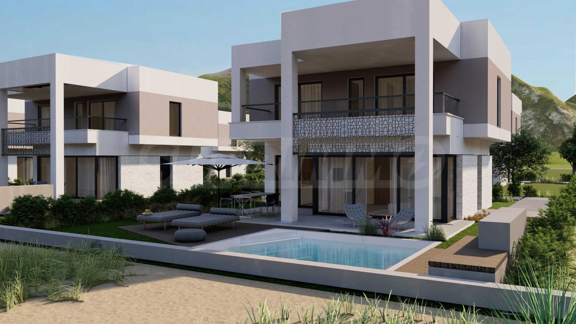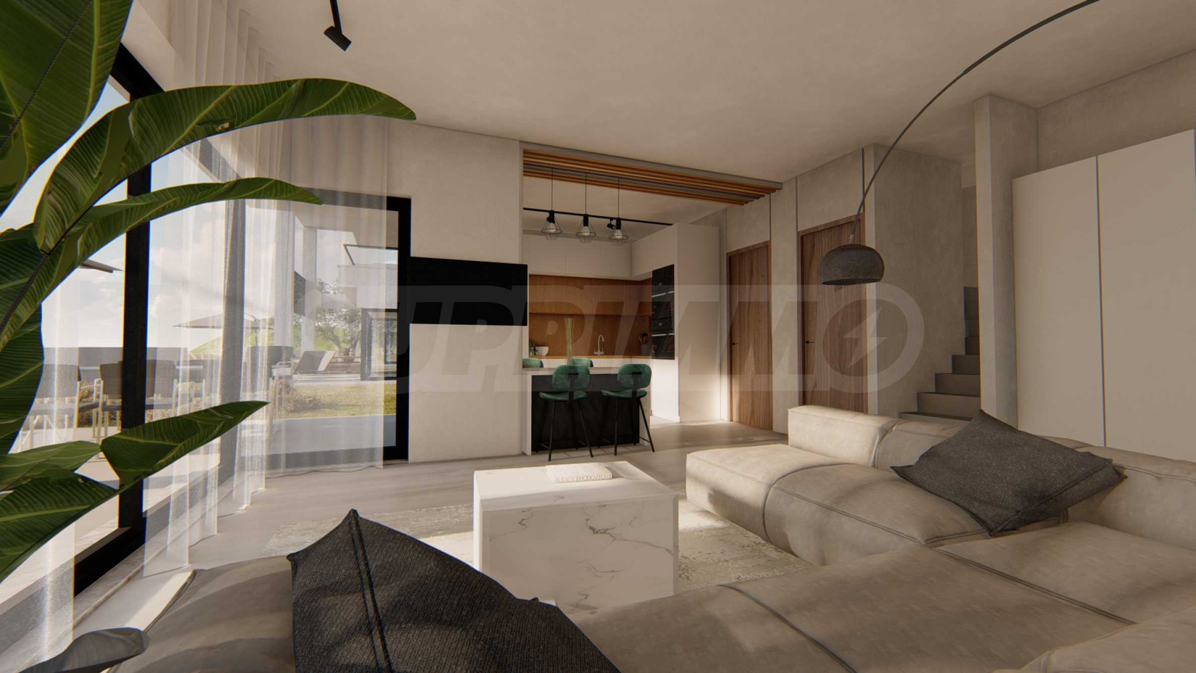 The complex consists of 20 detached villas on 2 levels with areas from 85.93 m2 to 121.17 m2. The facade is carefully designed, with straight lines and decorative elements, giving a modern and at the same time timeless look to the entire complex. The layouts include spacious and bright living rooms, two or three bedrooms and three bathrooms, guaranteeing the necessary peace and privacy for all residents. All homes are sold "turnkey", with entrance and interior doors, flooring, lighting, fitted kitchens and fitted bathrooms. In addition, the investors offer the option of adding a private outdoor pool.