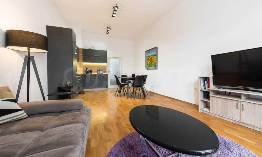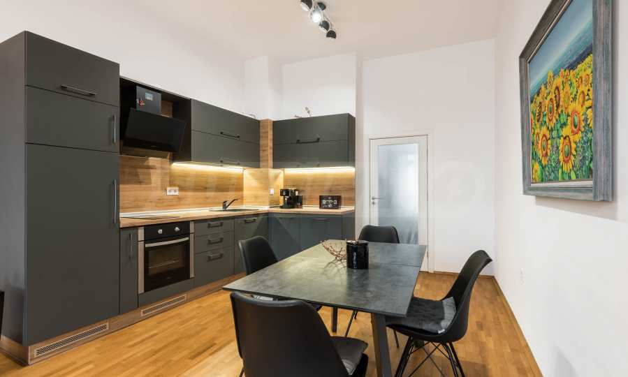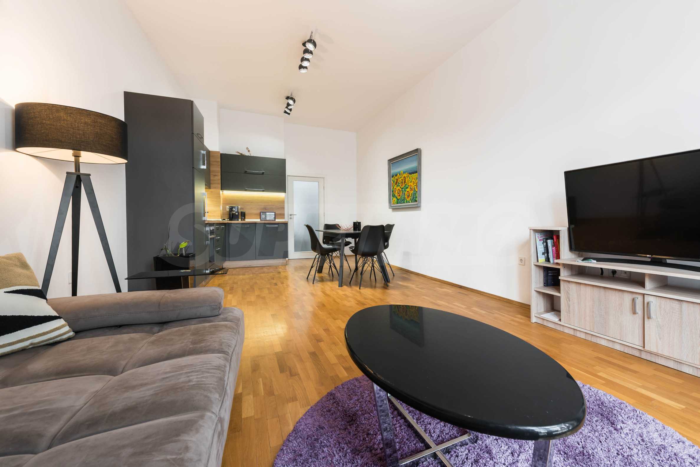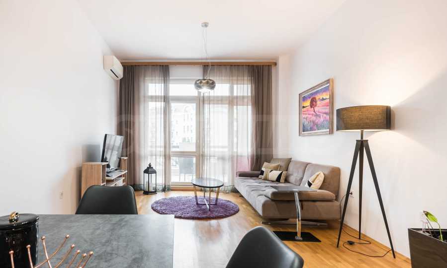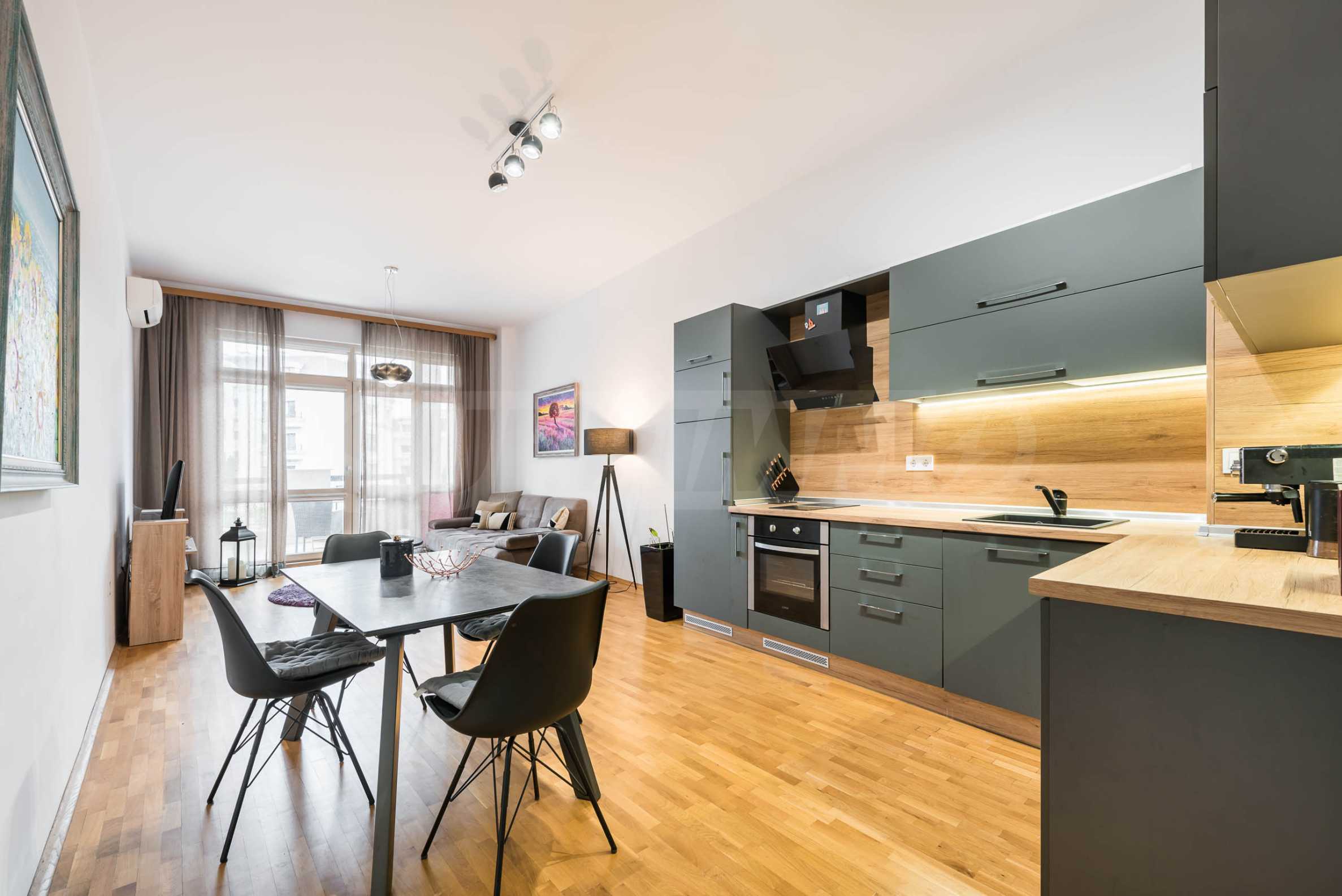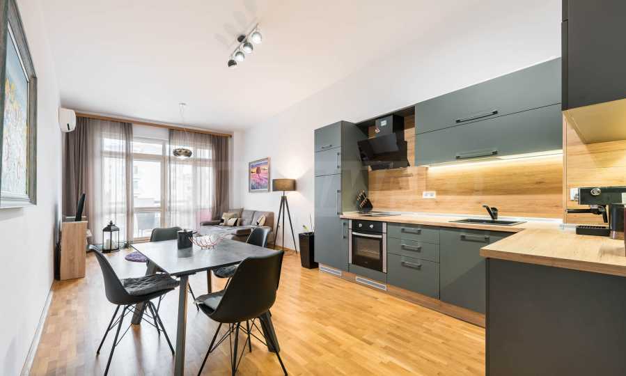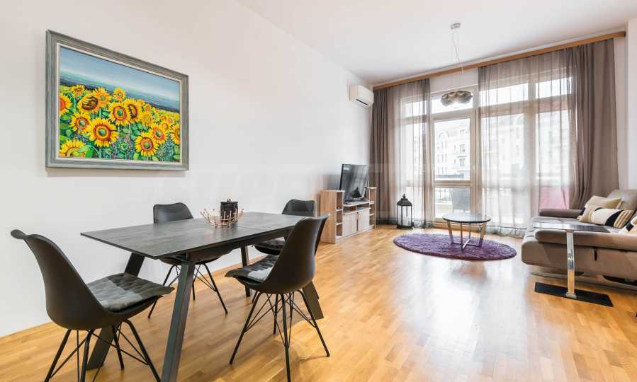 The apartment is fully furnished and equipped with attention to detail - natural parquet, modern furniture and high-end appliances, creating a feeling of a cozy and complete home.