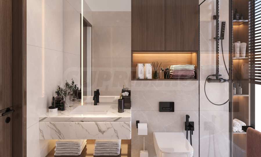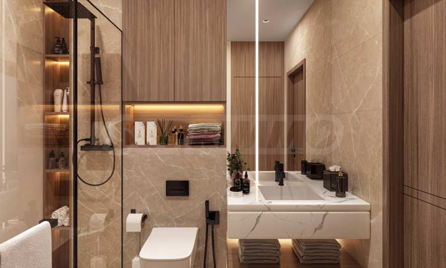 In most apartments, the kitchens are separated from the living areas – a design choice that enhances both comfort and functionality. Bedrooms are conceived as private retreats, complete with en-suite bathrooms and walk-in closets, while an additional guest powder room is conveniently positioned near the living space.