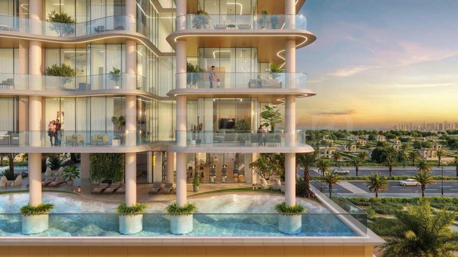 Orvessa’s architecture draws inspiration from the fluid motion of ocean waves, expressed through a bold, sculptural façade that stands out in the Al Furjan skyline. The building is designed across two basement levels, a ground floor, two podium levels, 14 residential floors, and a rooftop, with a form that is both intentional and highly functional.