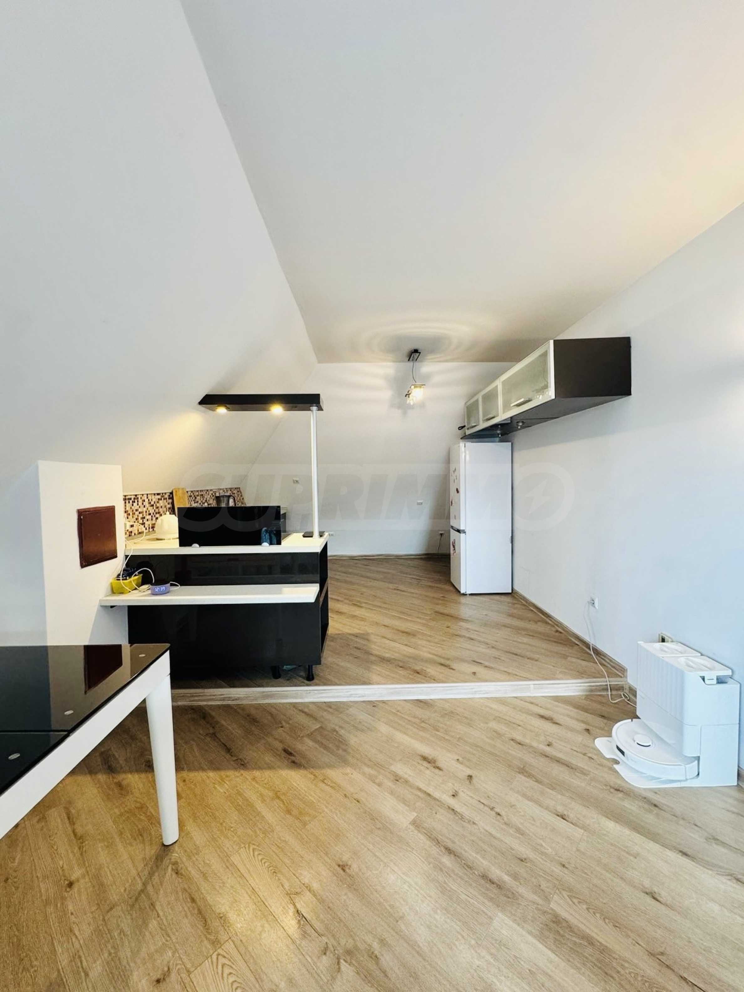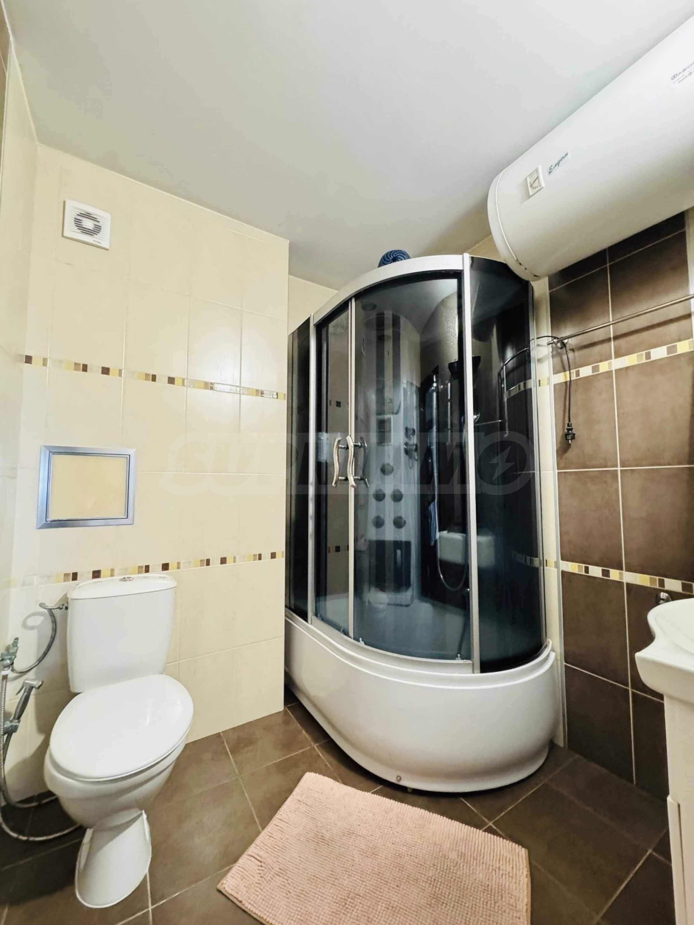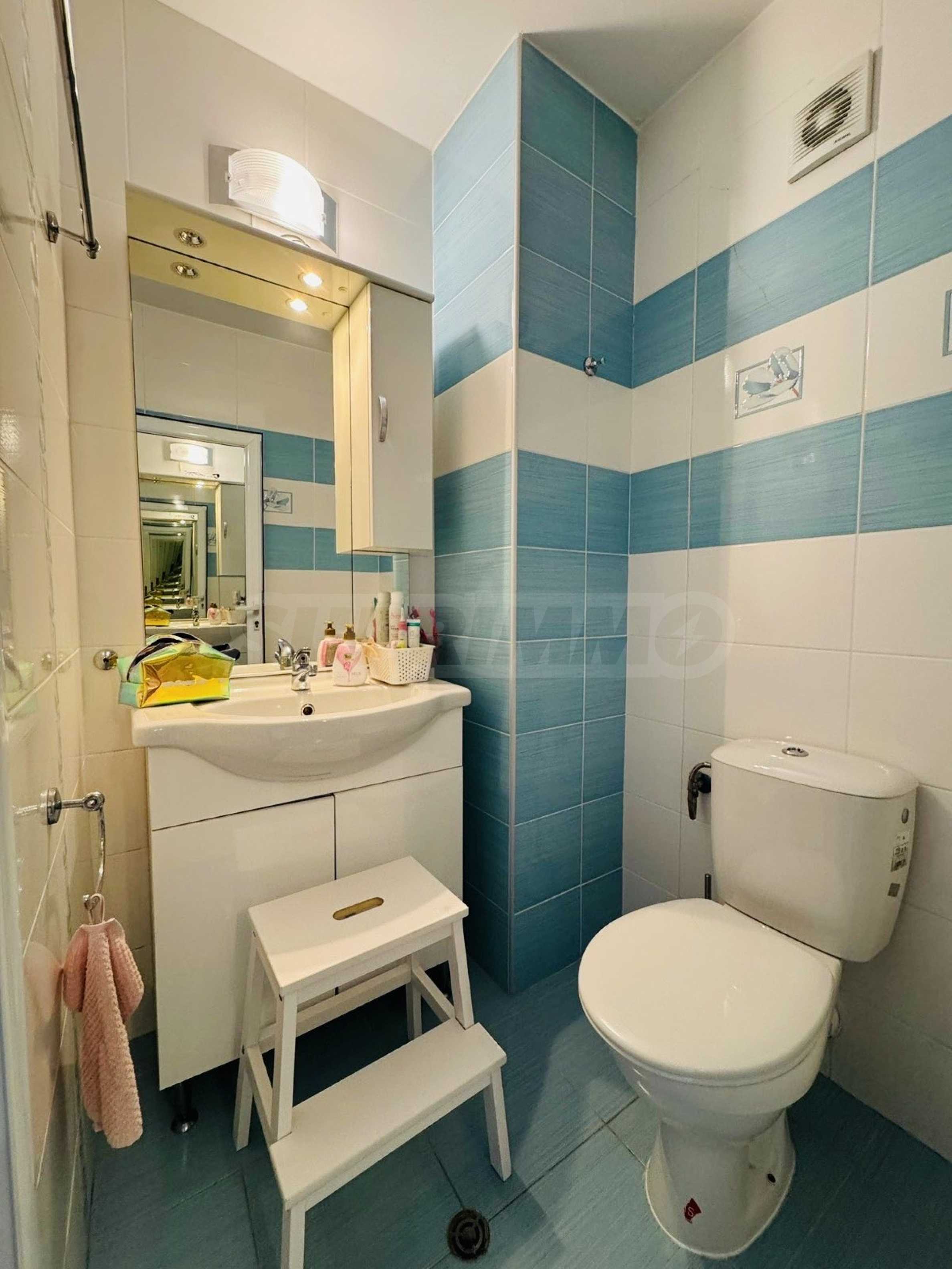 We present for sale a furnished two-bedroom apartment in a gated complex with a swimming pool and amenities, near the Sea Garden, in the Zornitsa district, Burgas. Close to Ezero Park, the Sea Garden, kindergartens, schools, hospitals, shops, restaurants, sports field, bus stop and everything necessary for a comfortable life.